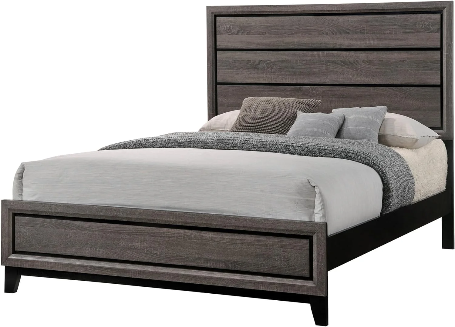 Contemporary 1Pc King Size Panel Bed Wooden Home Bedroom Furniture Gray Finish