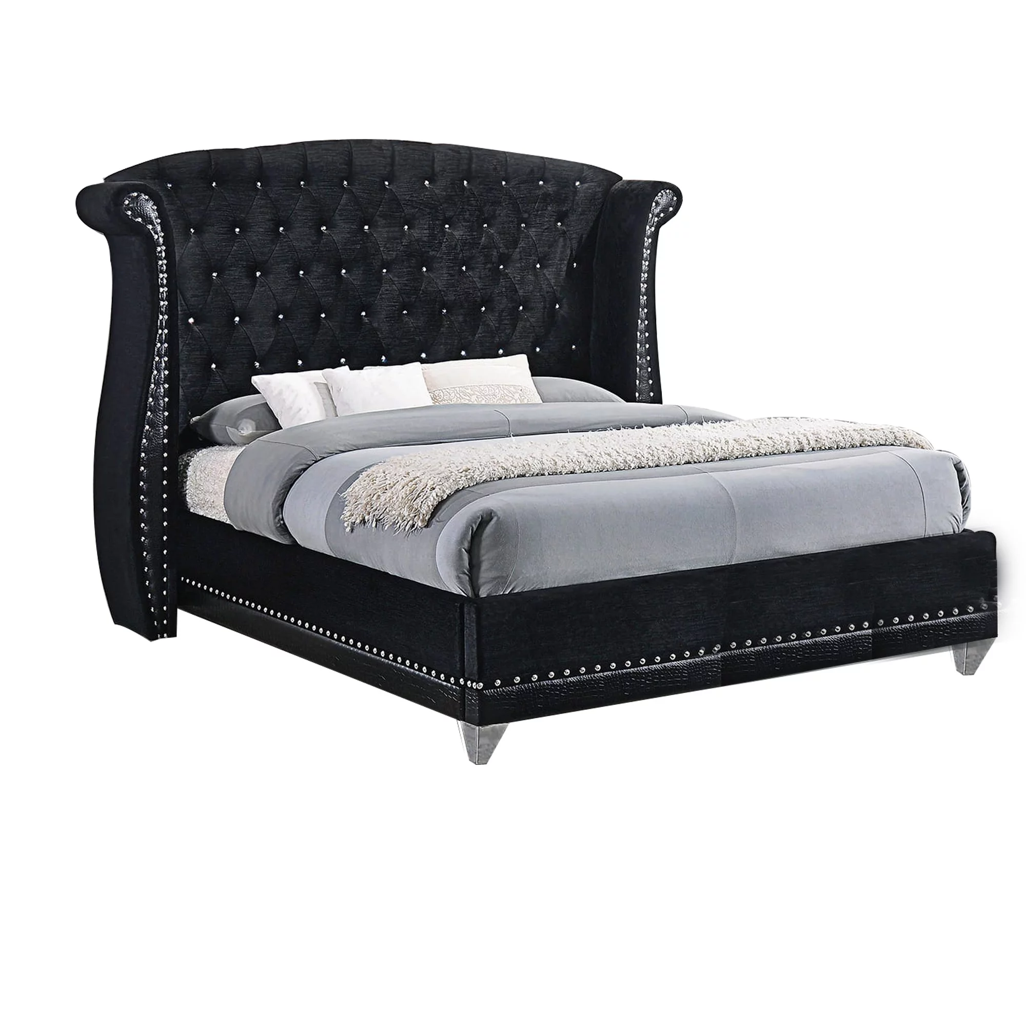 Coaster Hamden Transitional Upholstered Fabric Queen Panel Bed in Beige