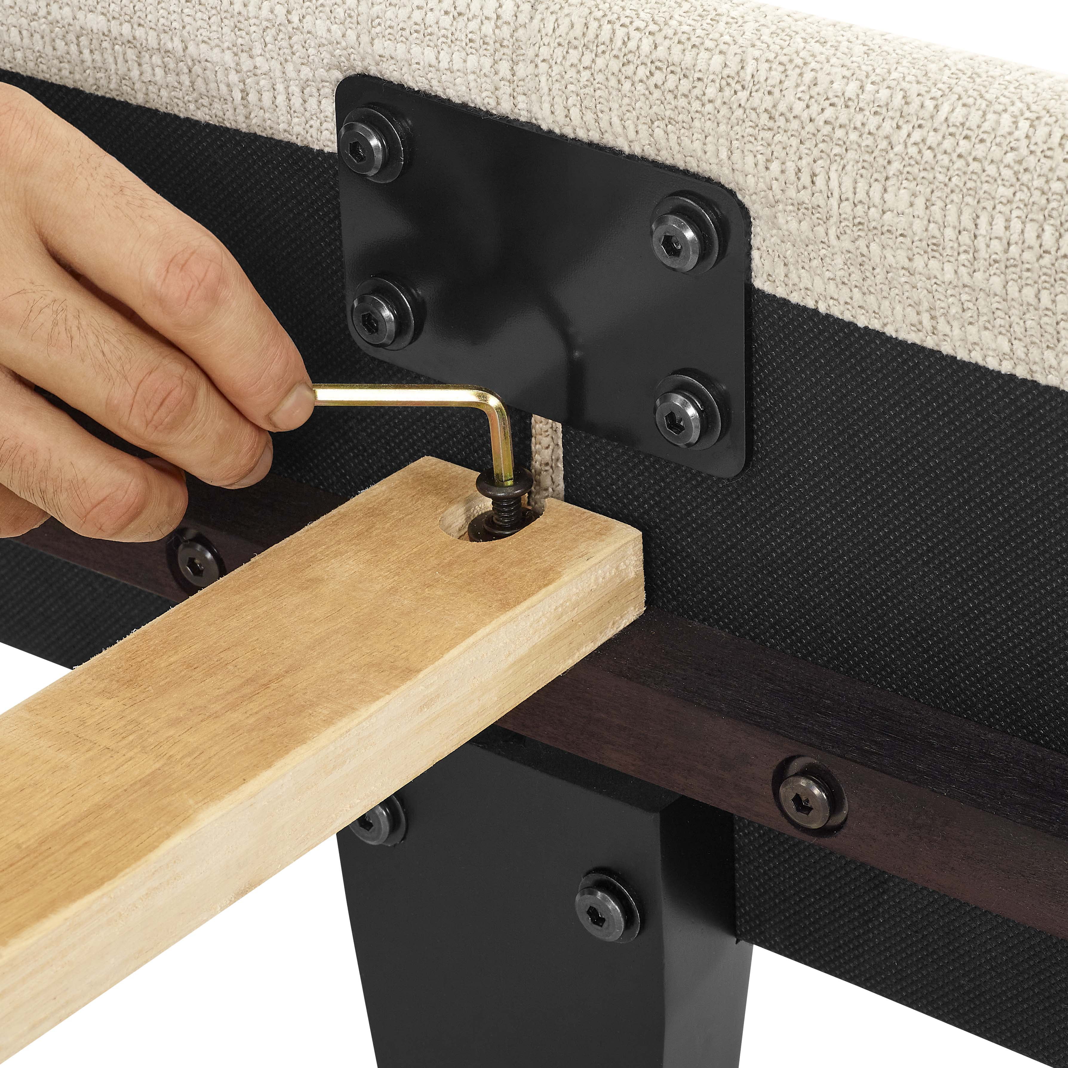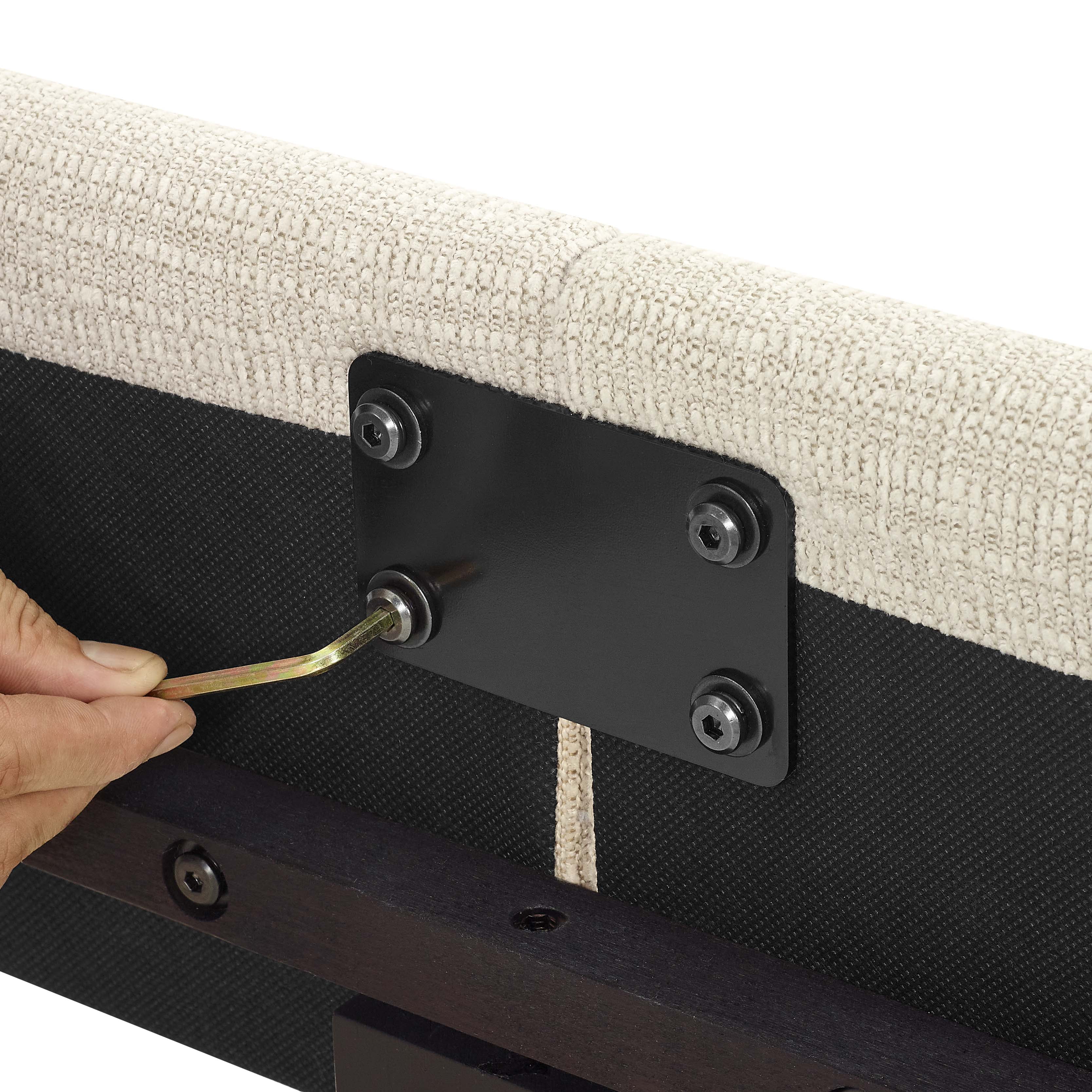 Mino Kesper Queen Size Upholstered Platform Bed with Trundle,2 Drawers,Beige