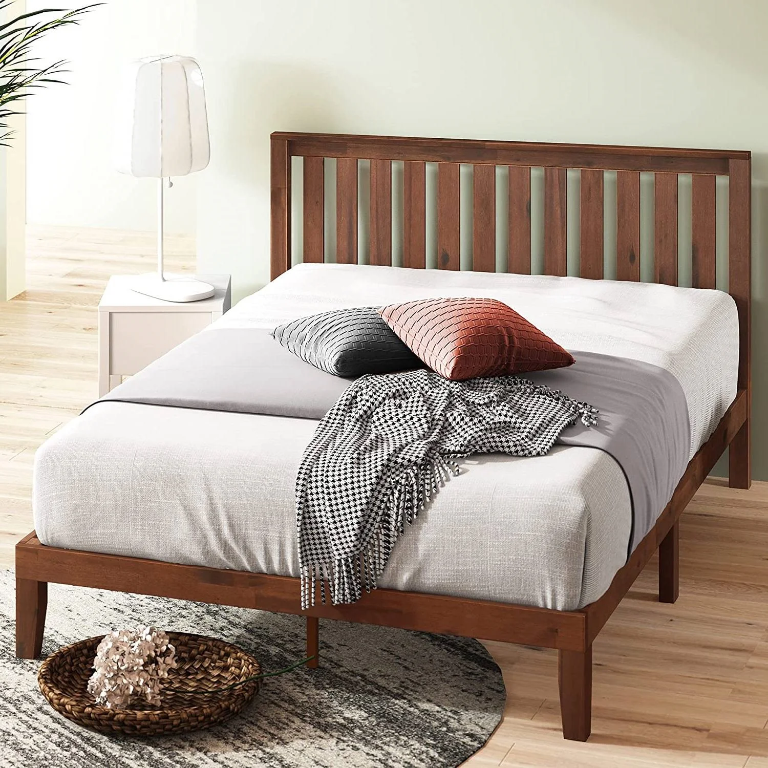 King size Solid Wood Platform Bed Frame with Headboard in Espresso Finish