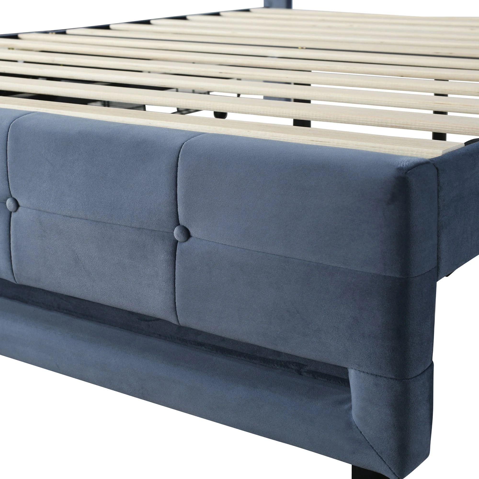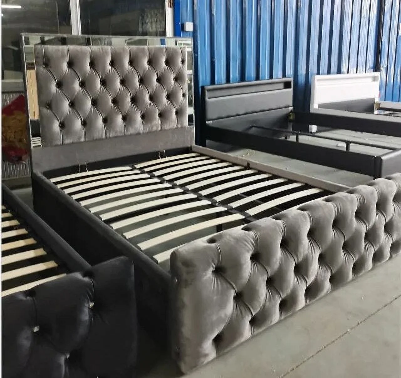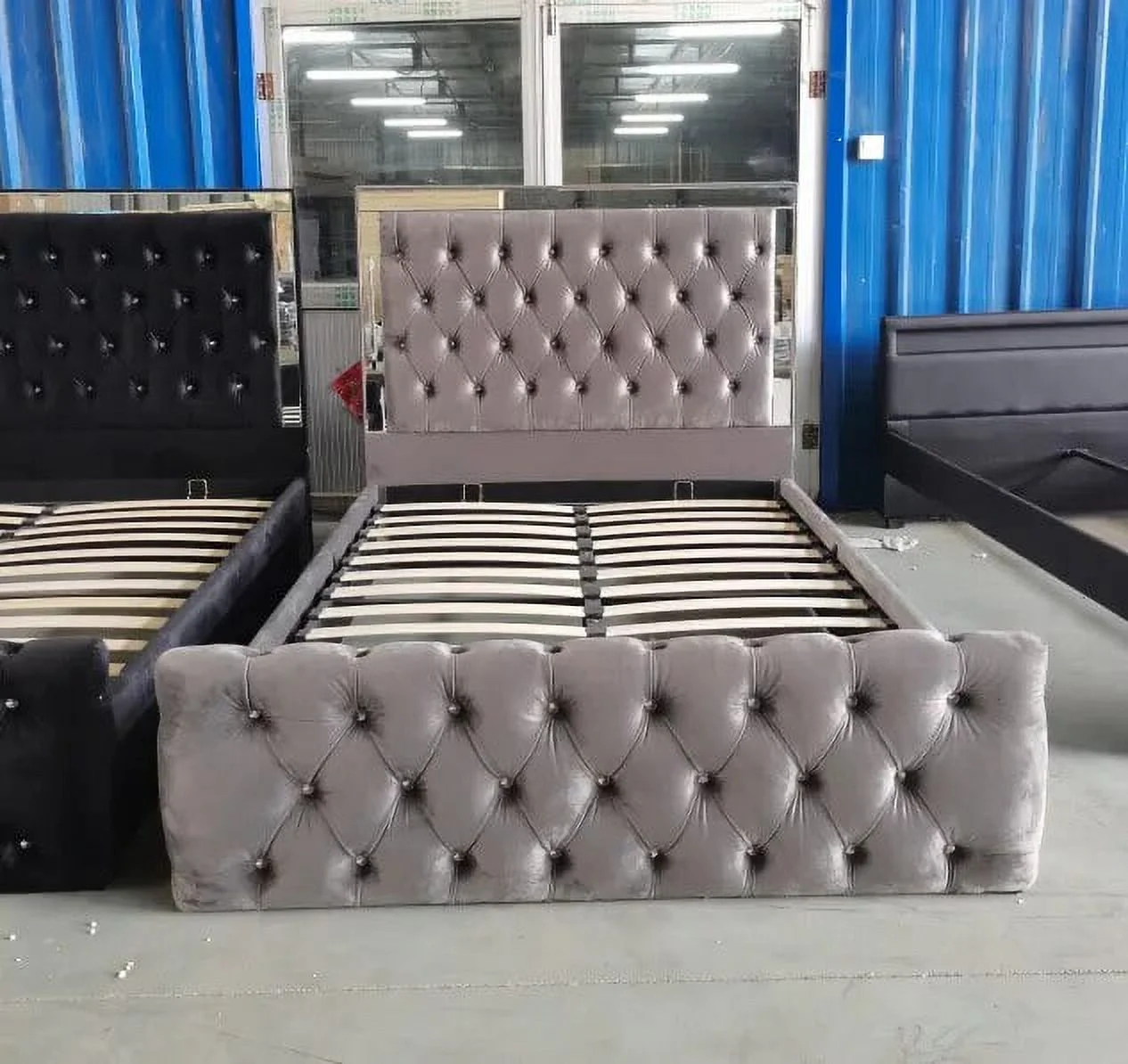 Headboard with Mirror Crystal Luxury Double Queen King Ottoman Gas Lift Velvet Fabric Upholstered Bedroom Furniture
