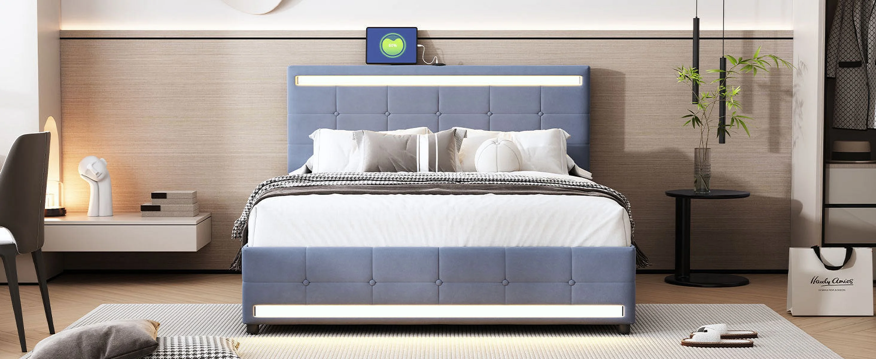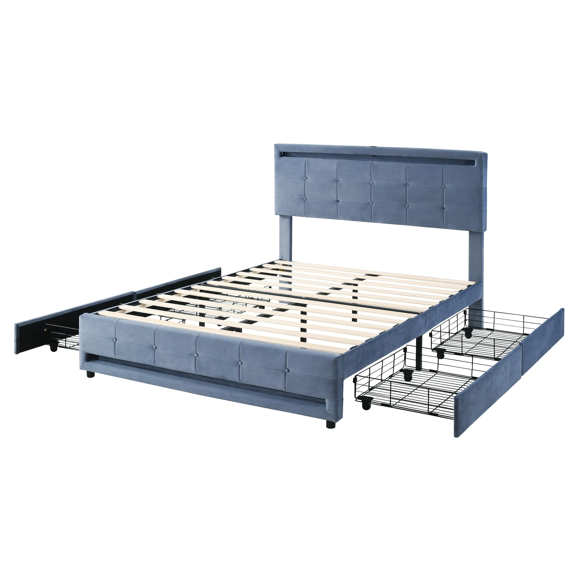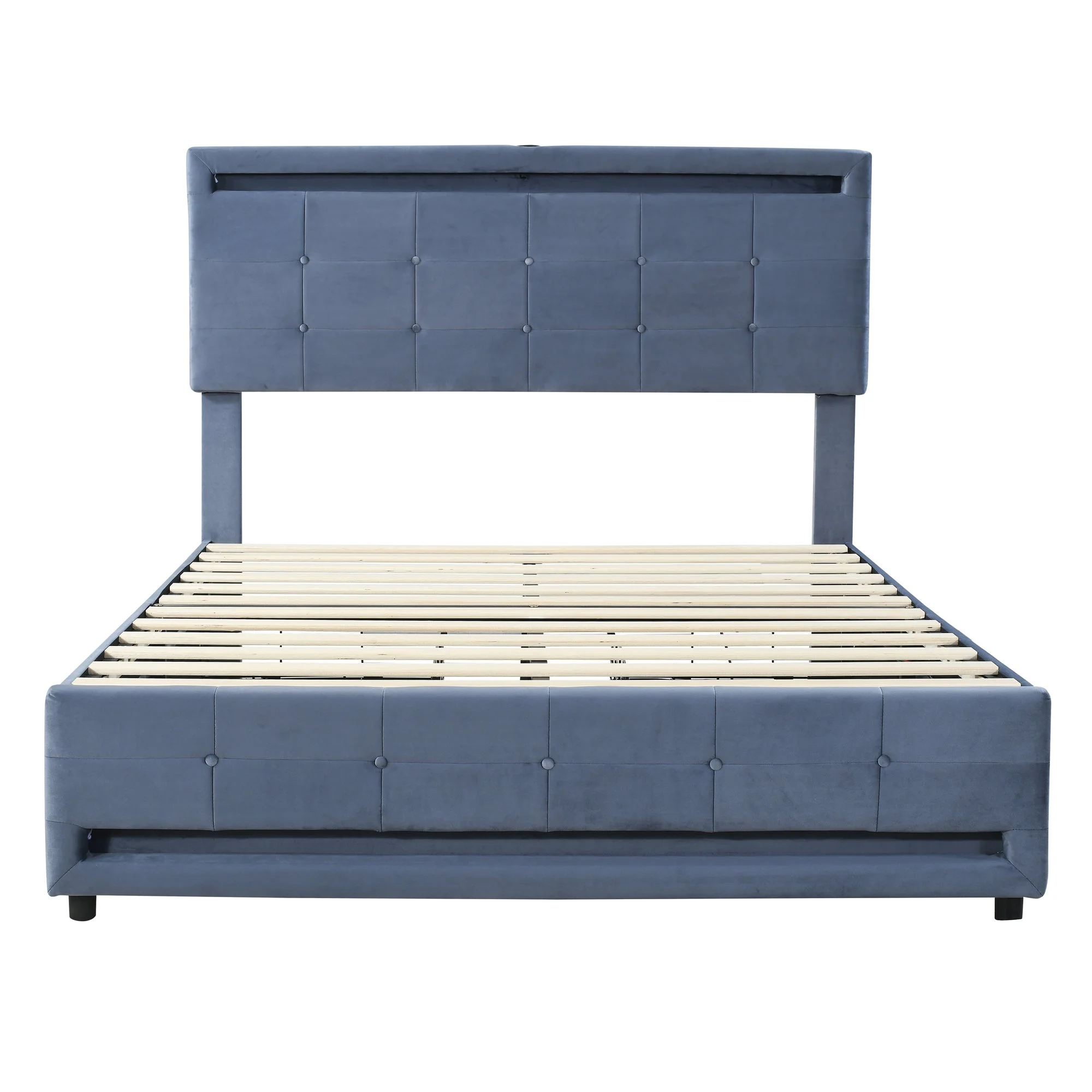 Headboard with Mirror Crystal Luxury Double Queen King Ottoman Gas Lift Velvet Fabric Upholstered Bedroom Furniture