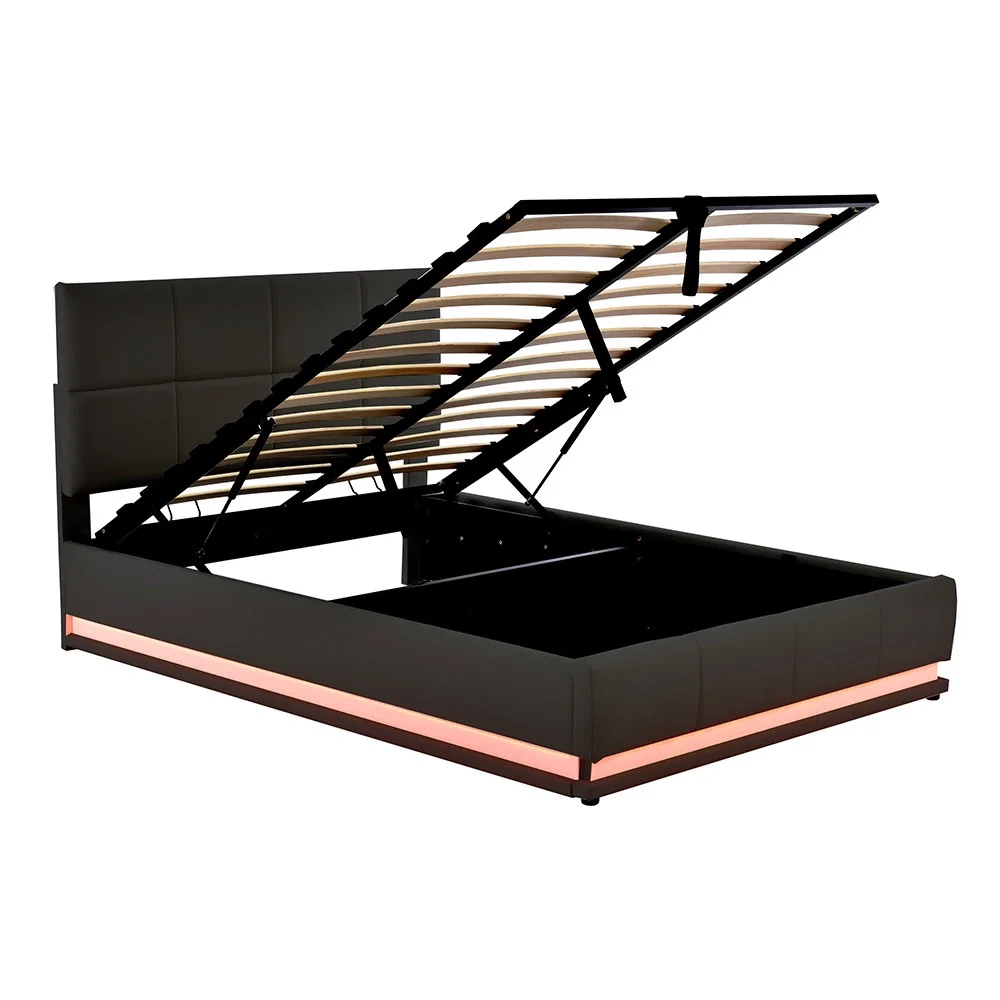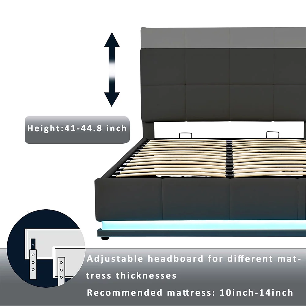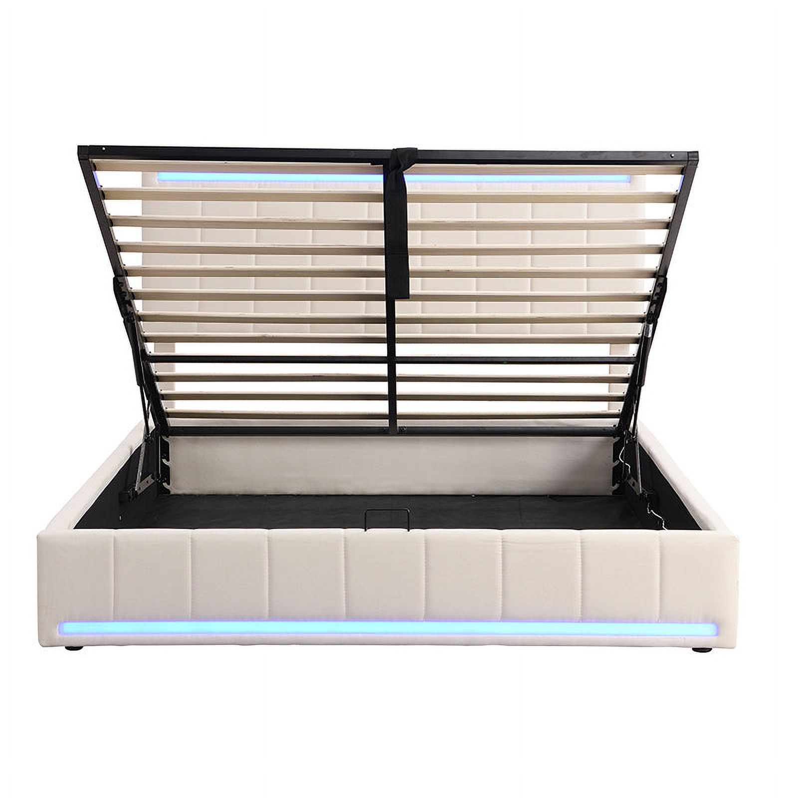 Vesper II Queen Size Platform Bed with Hydraulic Storage System - Beige