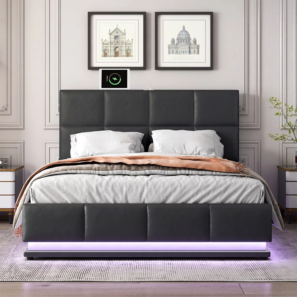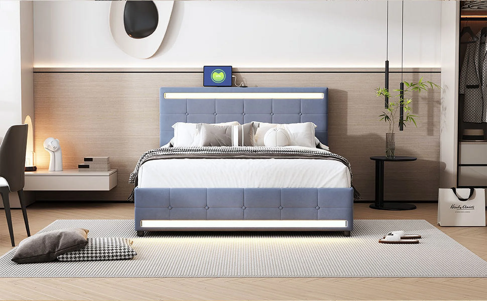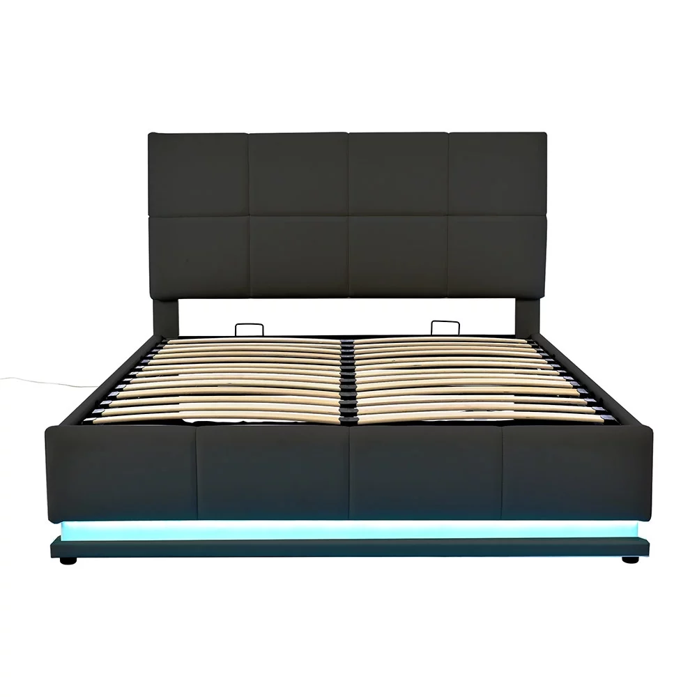 Vesper II Queen Size Platform Bed with Hydraulic Storage System - Beige