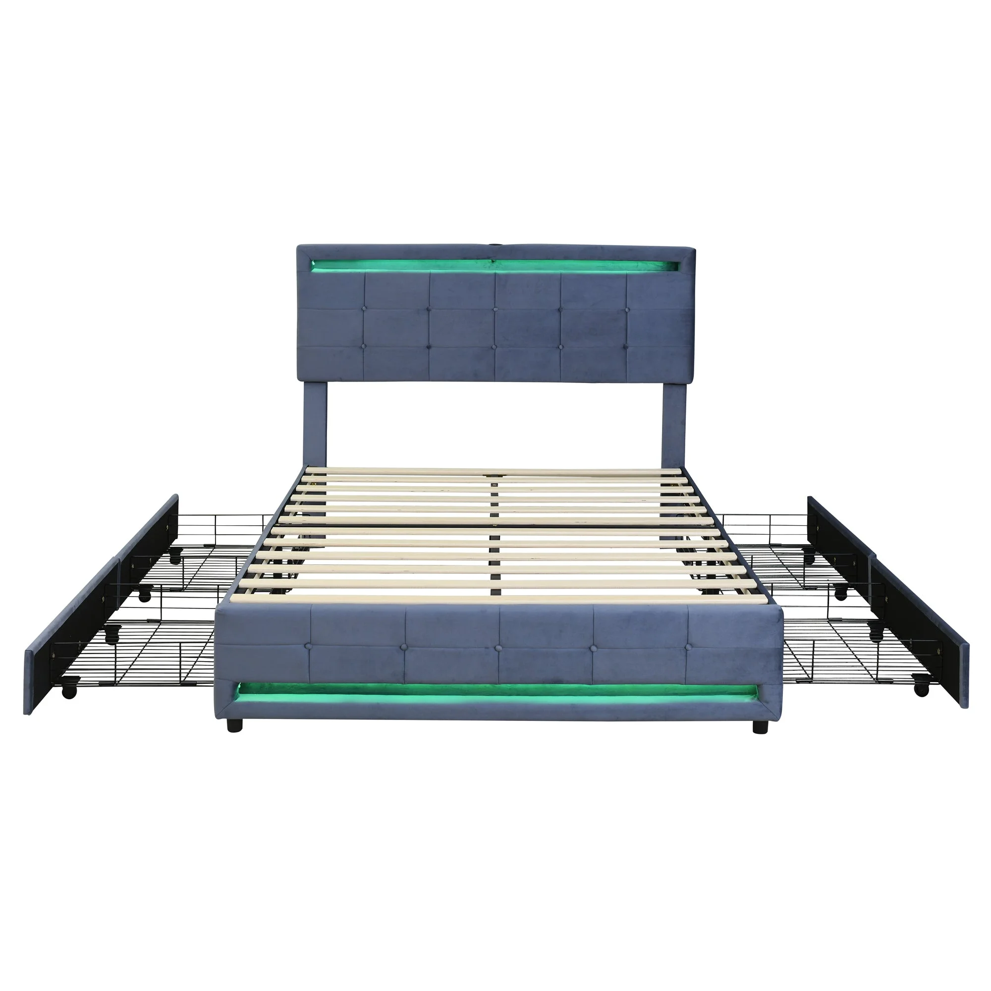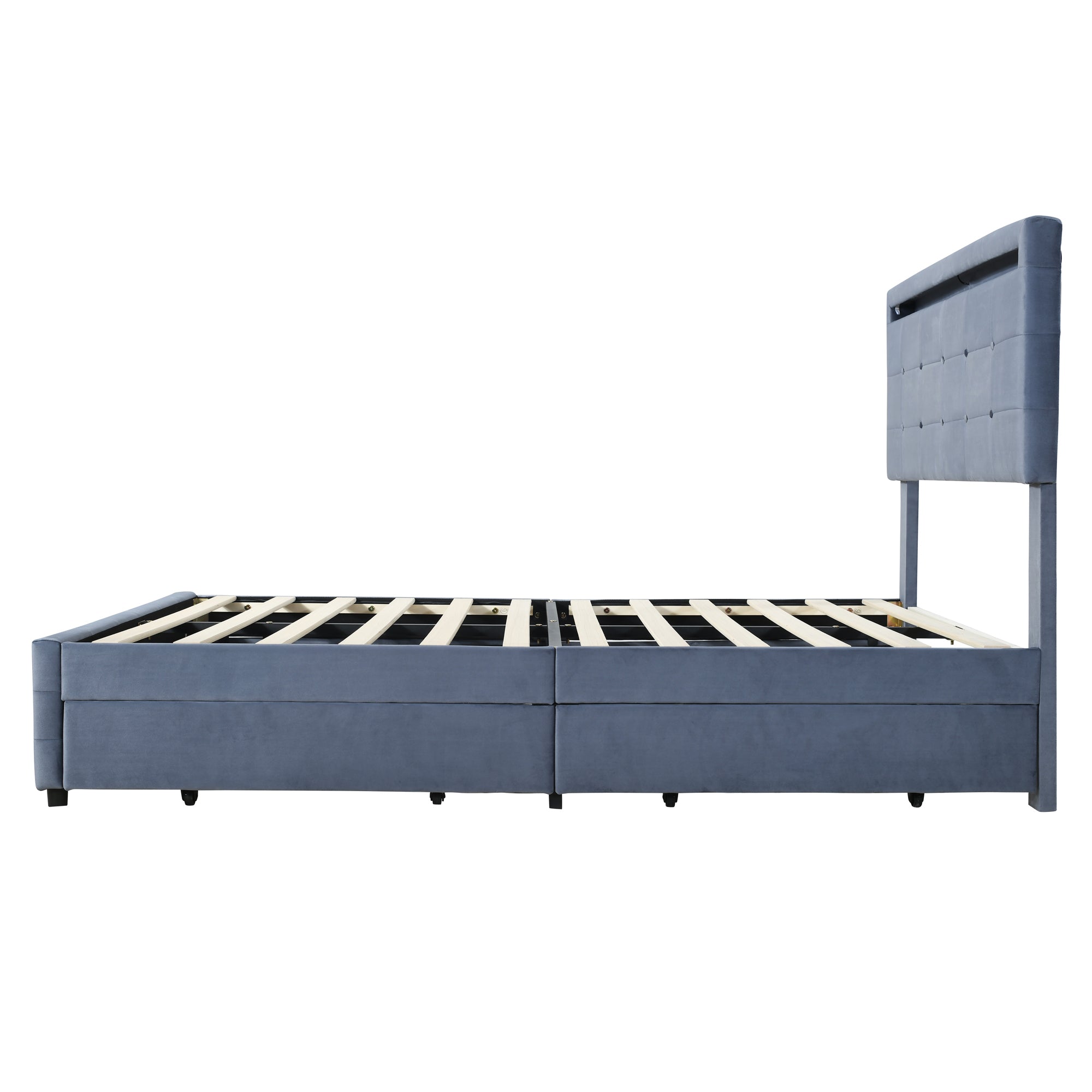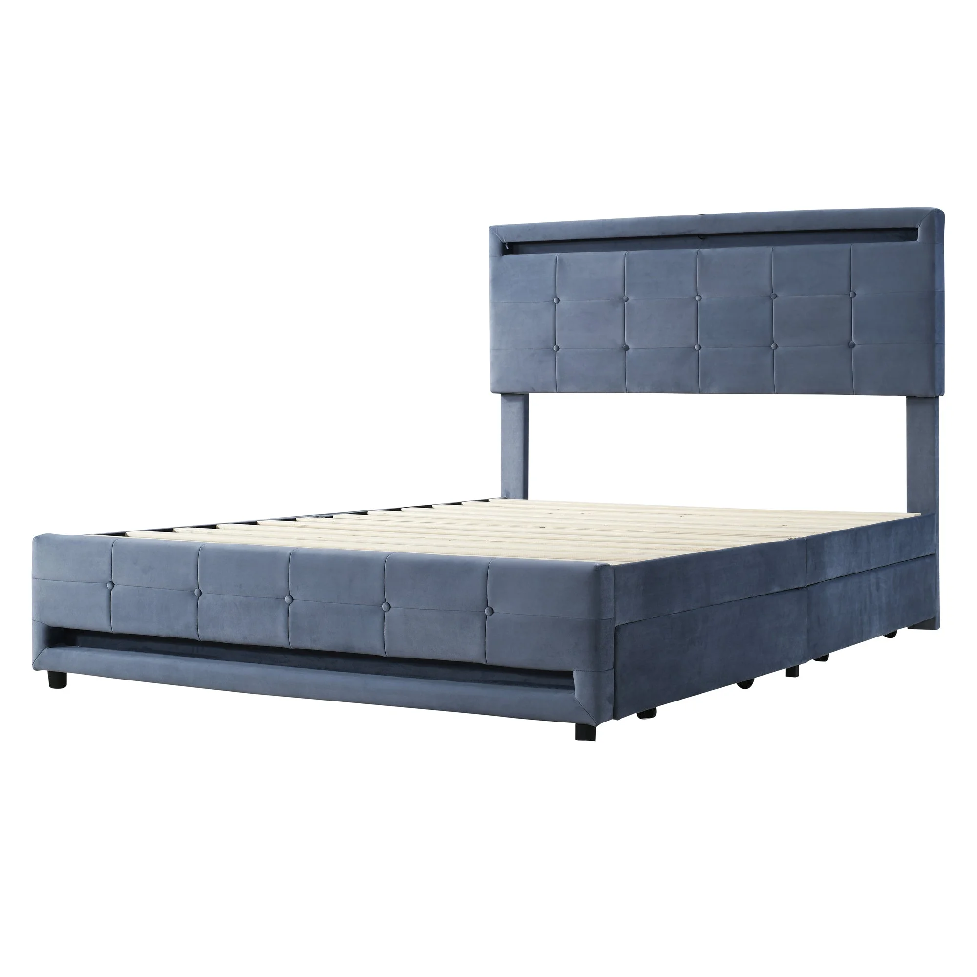 Natural Grey Finish 1pc Eastern King Size Bed Wooden Bedroom Furniture Drawers Footboard Upholstered Bedframe HB