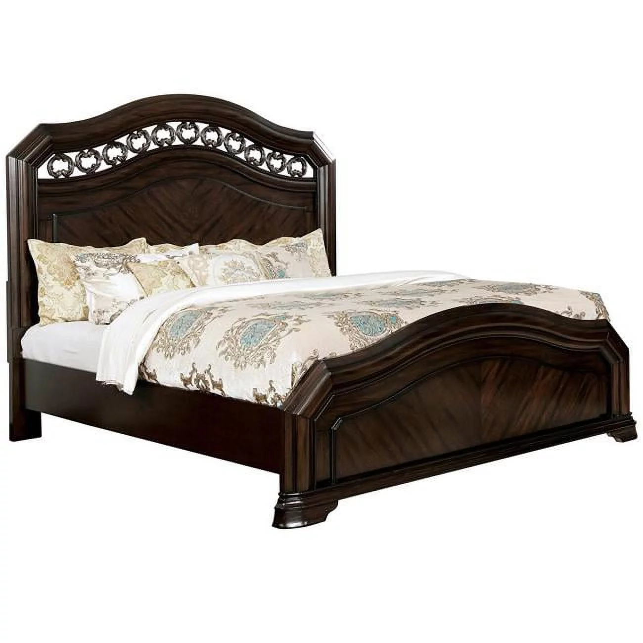 Traditional Style Classic 1pc Louis Philip King Size Panel Bed Cherry Brown Finish Wooden Bedroom Furniture