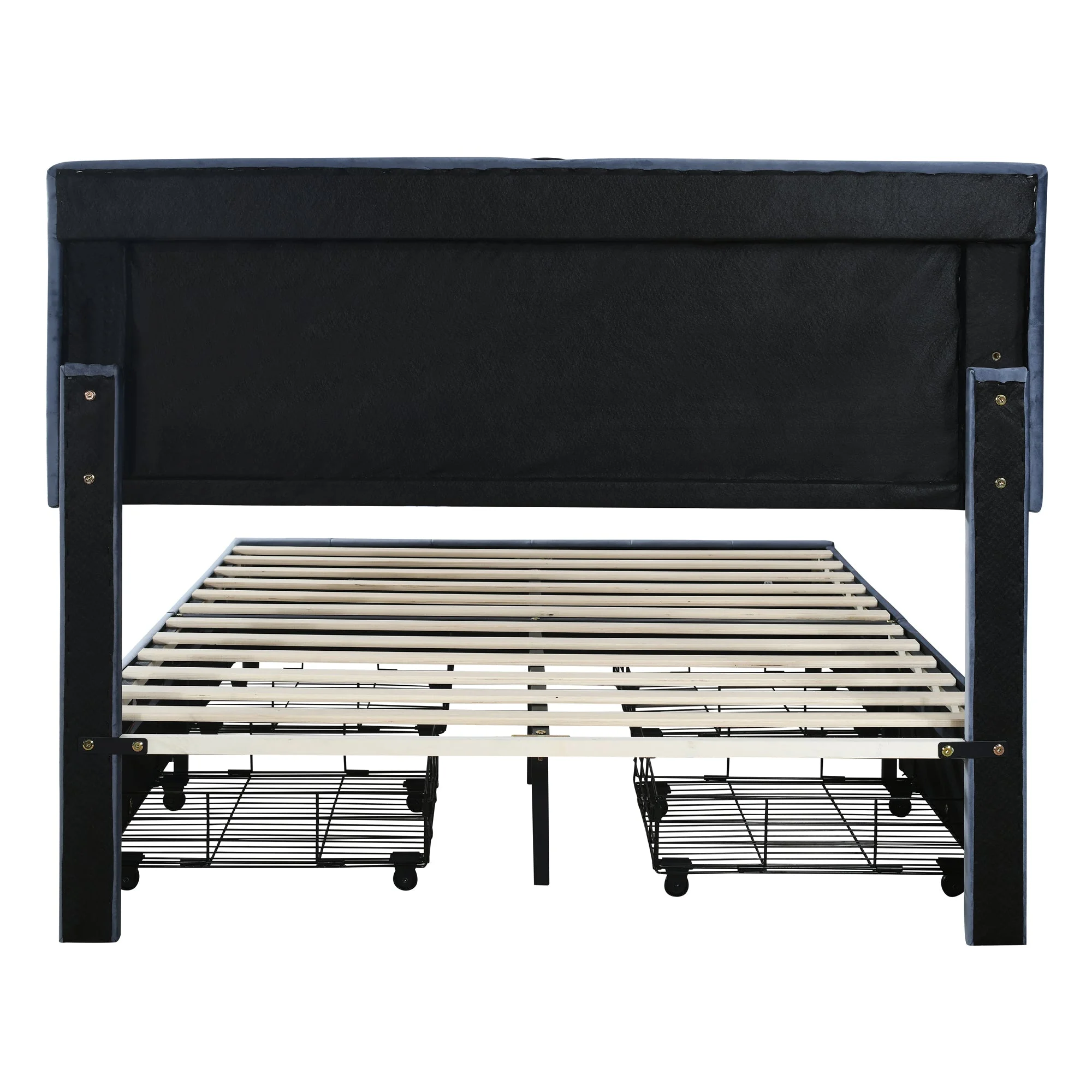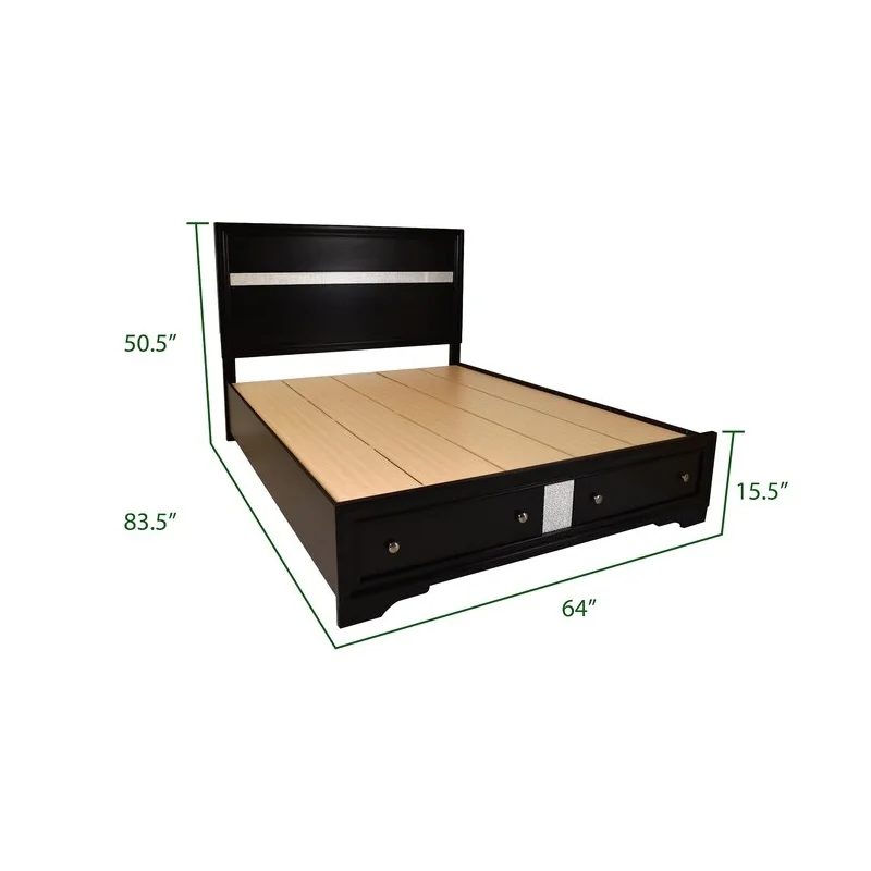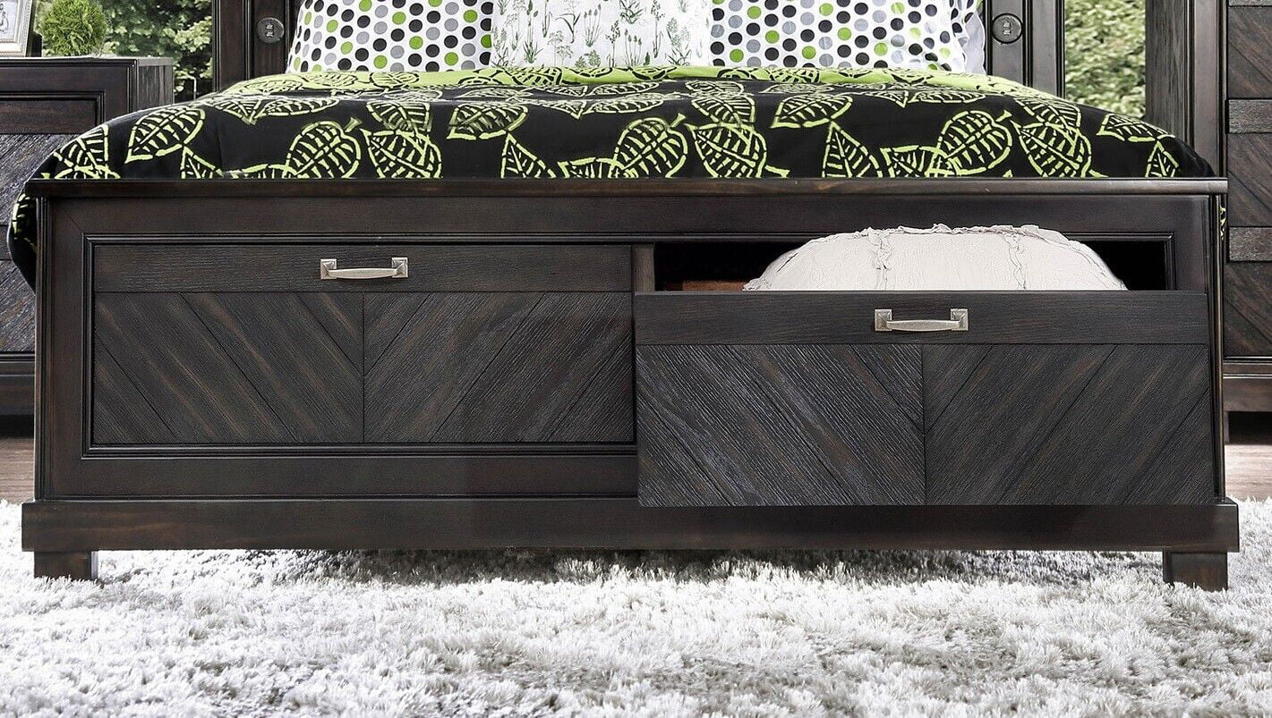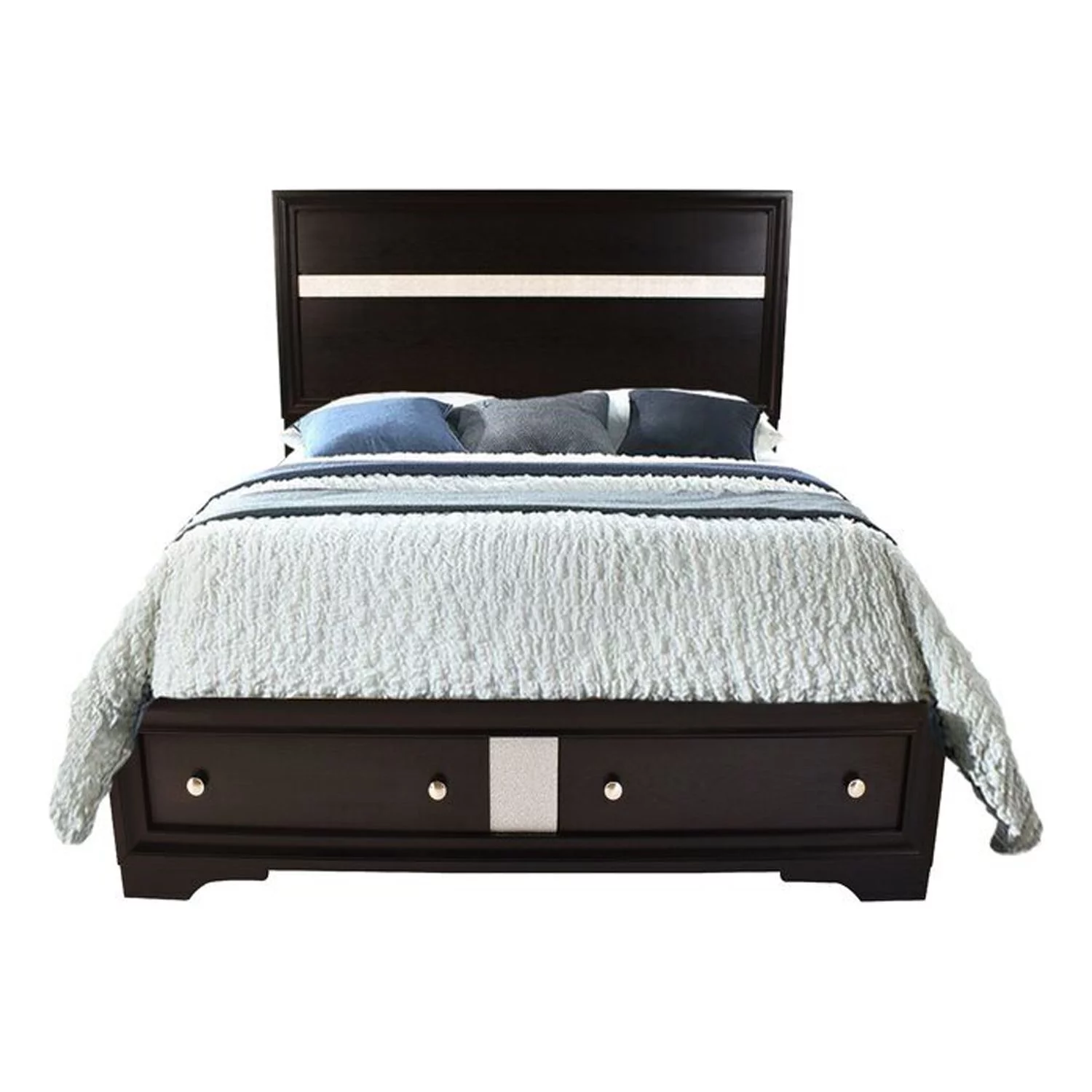 Matrix Traditional Style Queen Size Storage Bed in Black made with Wood