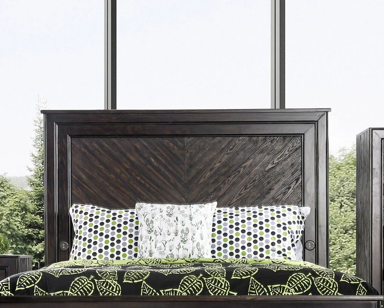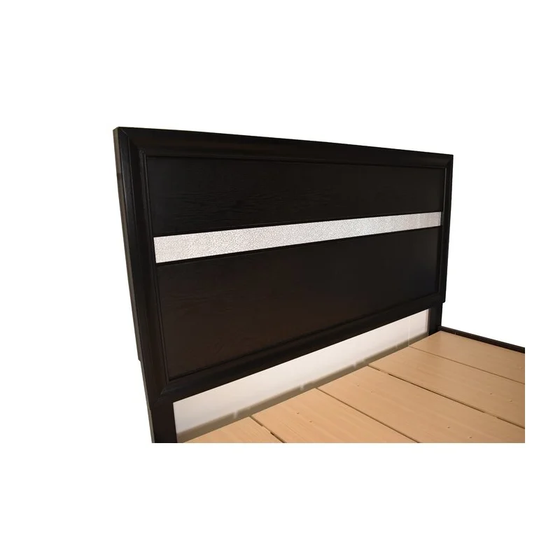 Traditional Black Finish Panel Bed 1pc Est King Size Bed Louis Phillippe Style Wooden Bedroom Furniture
