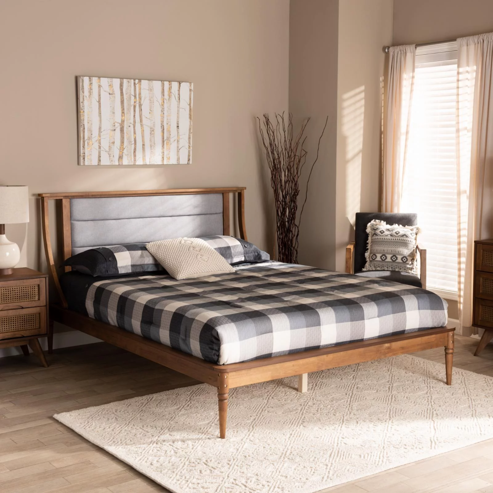 Baxton Studio Regis Light Grey and Brown Finished Wood King Size Platform Bed