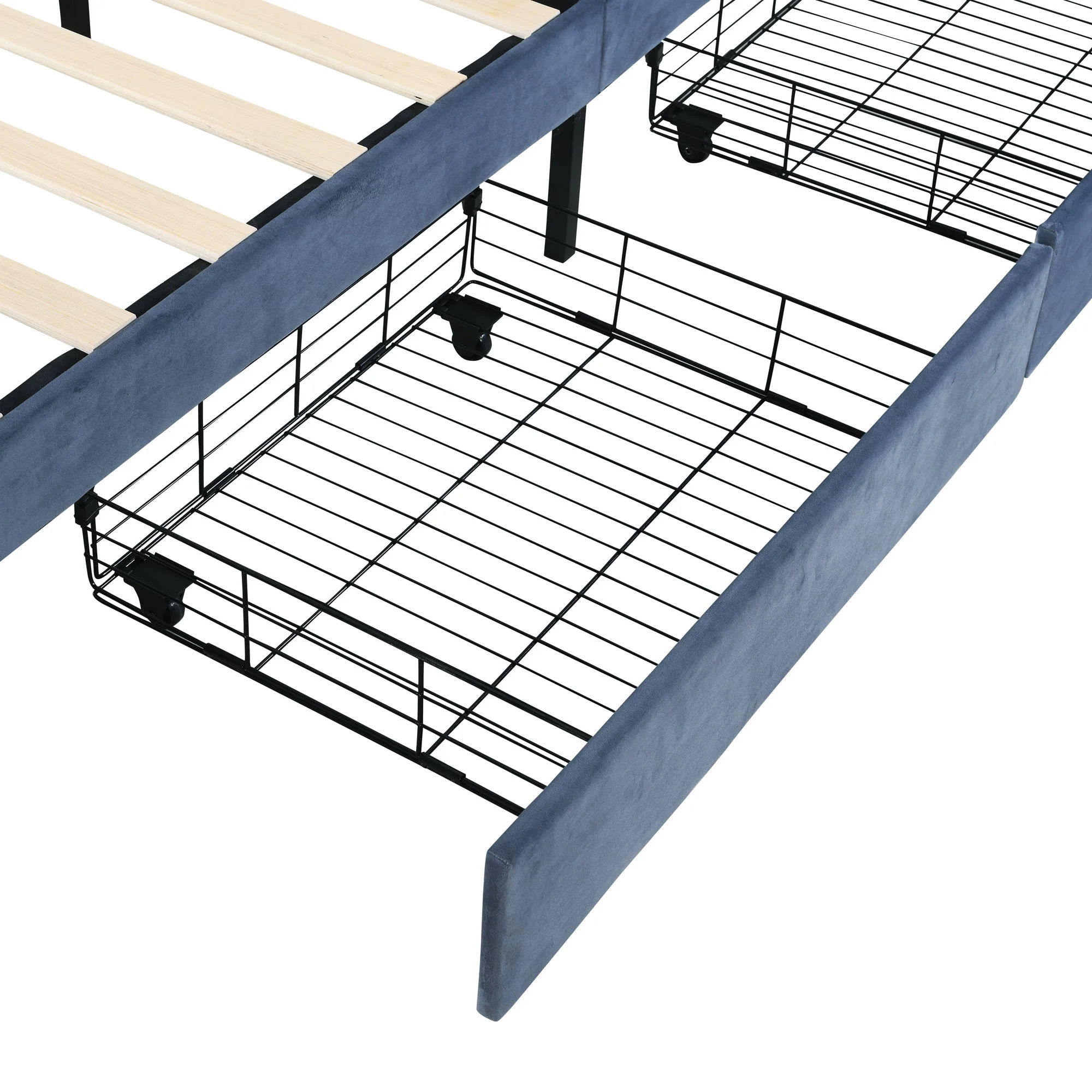 Transitional Style Wooden Eastern King Size Bed with 2 Drawers, Brown