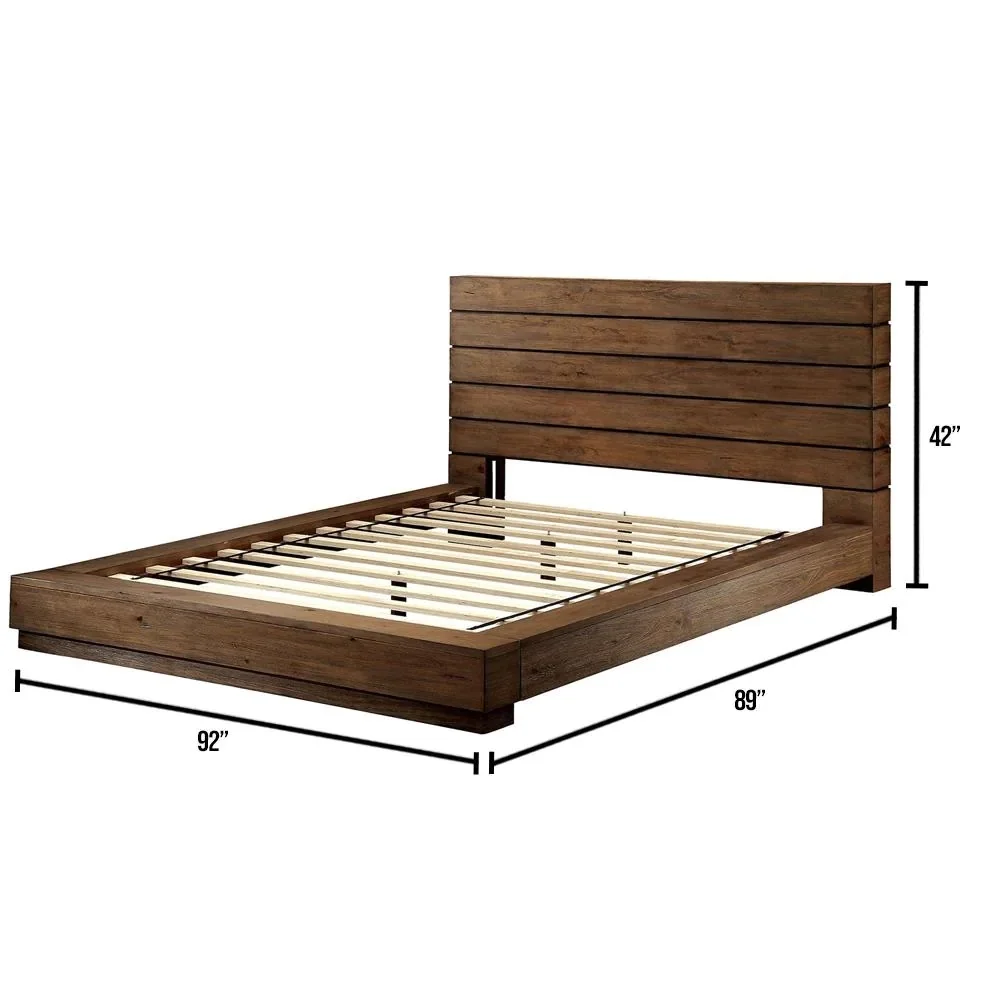 Eastern King Size Bed 1pc Bedframe Contemporary Look Rustic Natural Tone Slats Plank Headboard Solid wood Bedroom Furniture