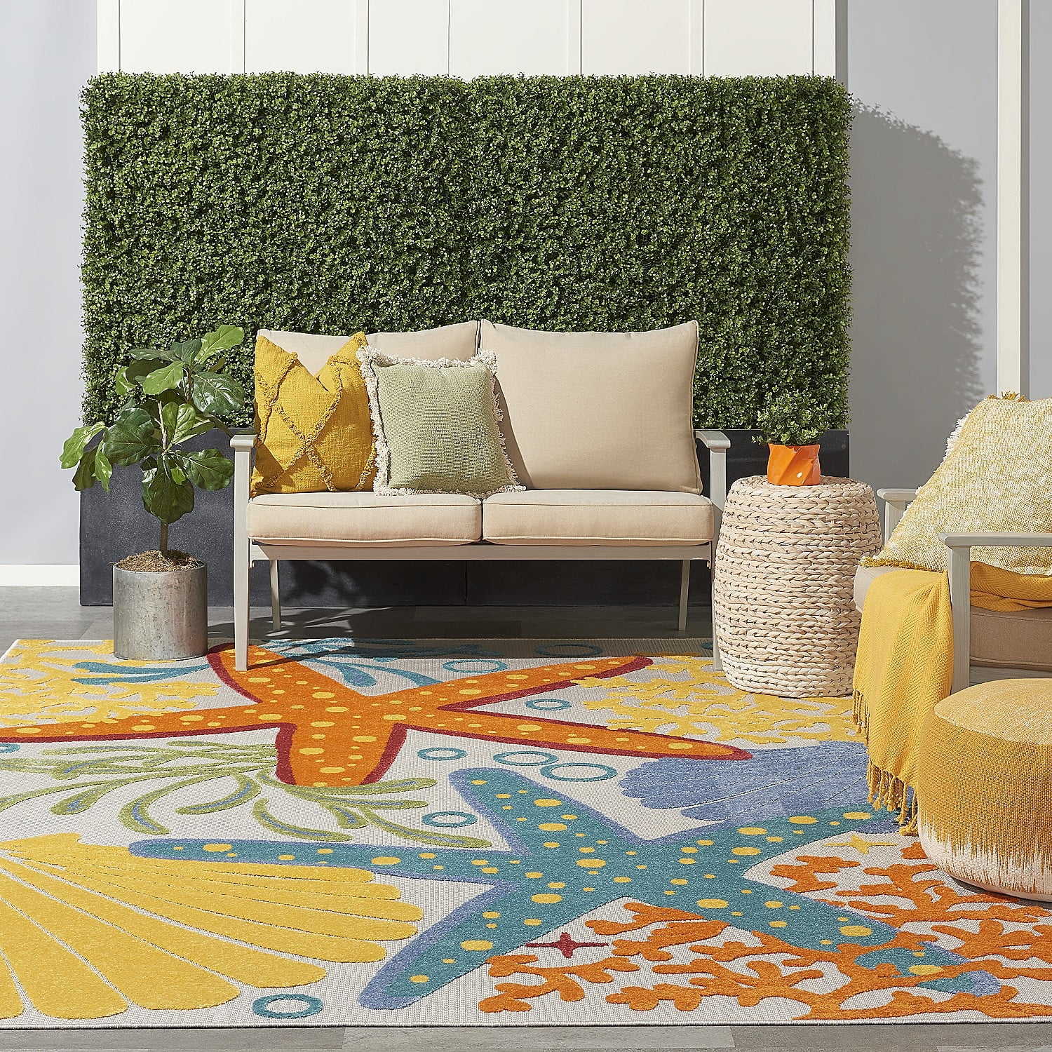 Nourison Aloha Indoor/Outdoor Coastal Tropical Multicolor 12' x 15' Area Rug, (12' x 15')