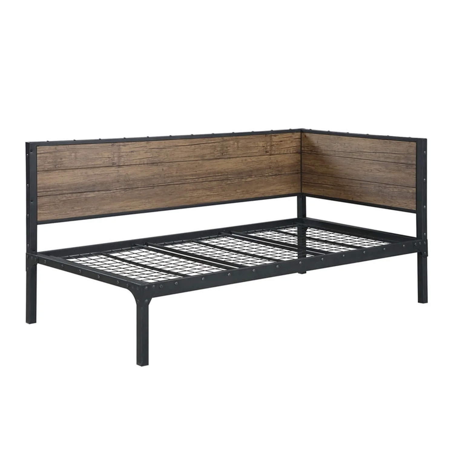 Maykoosh Victorian Vibes Industrial Metal Twin Size Daybed With Wooden Side Panels, Brown And Black