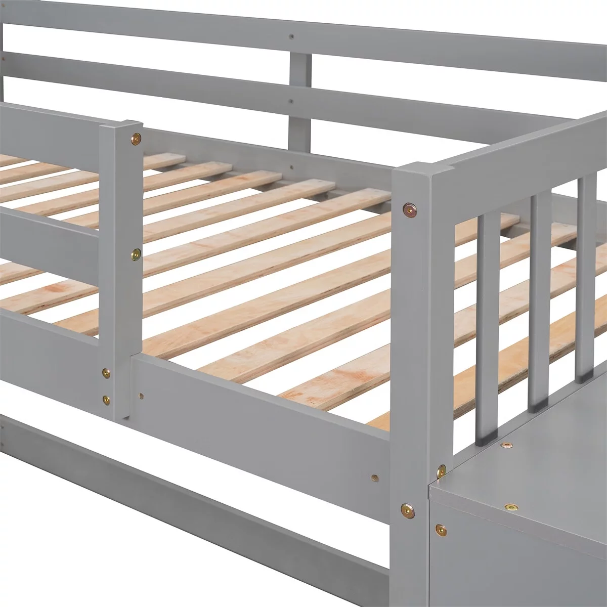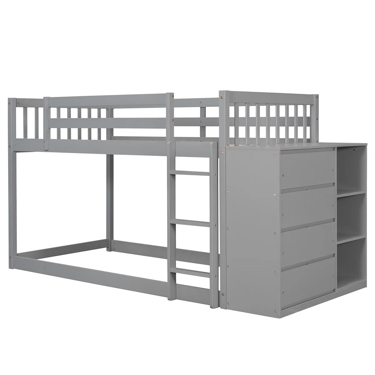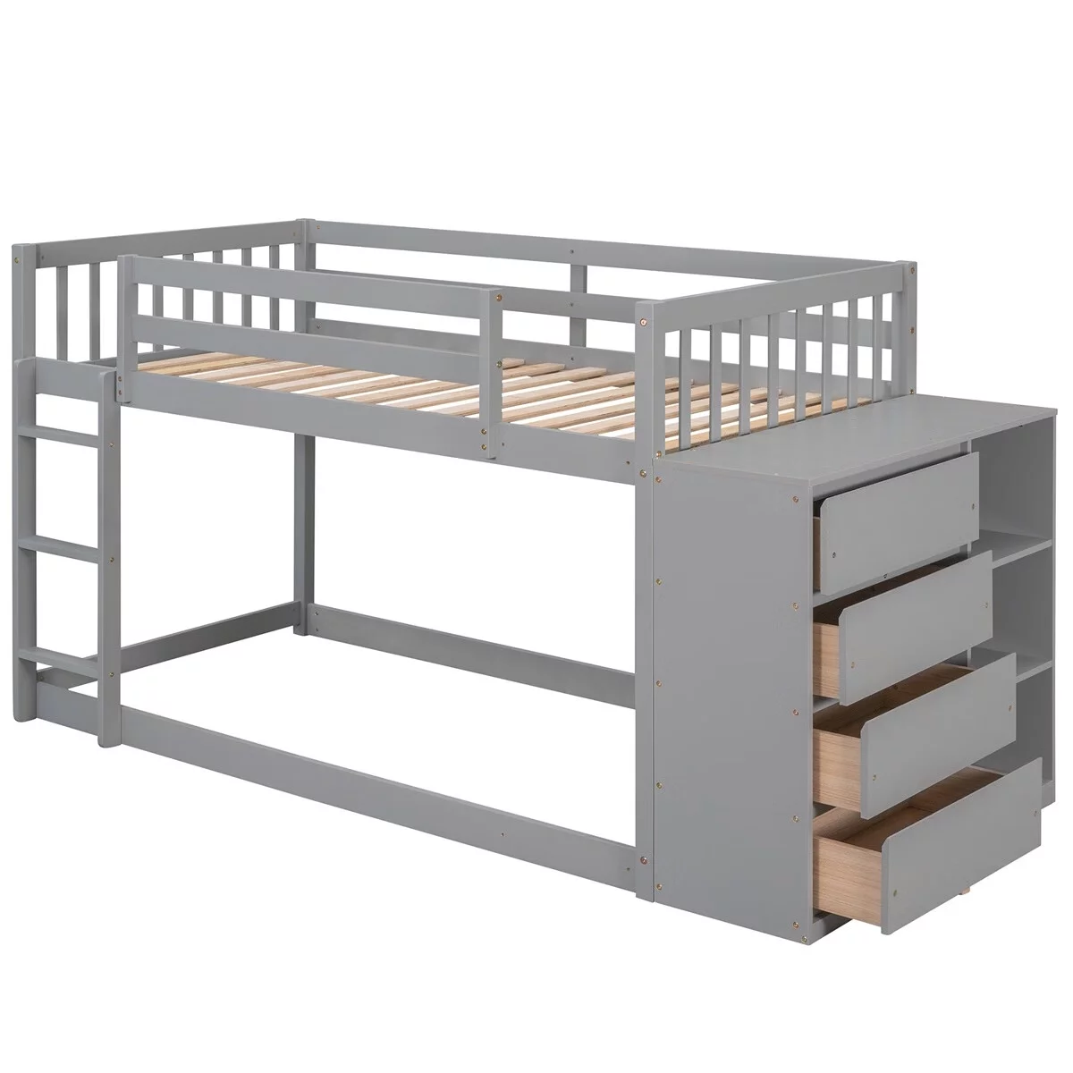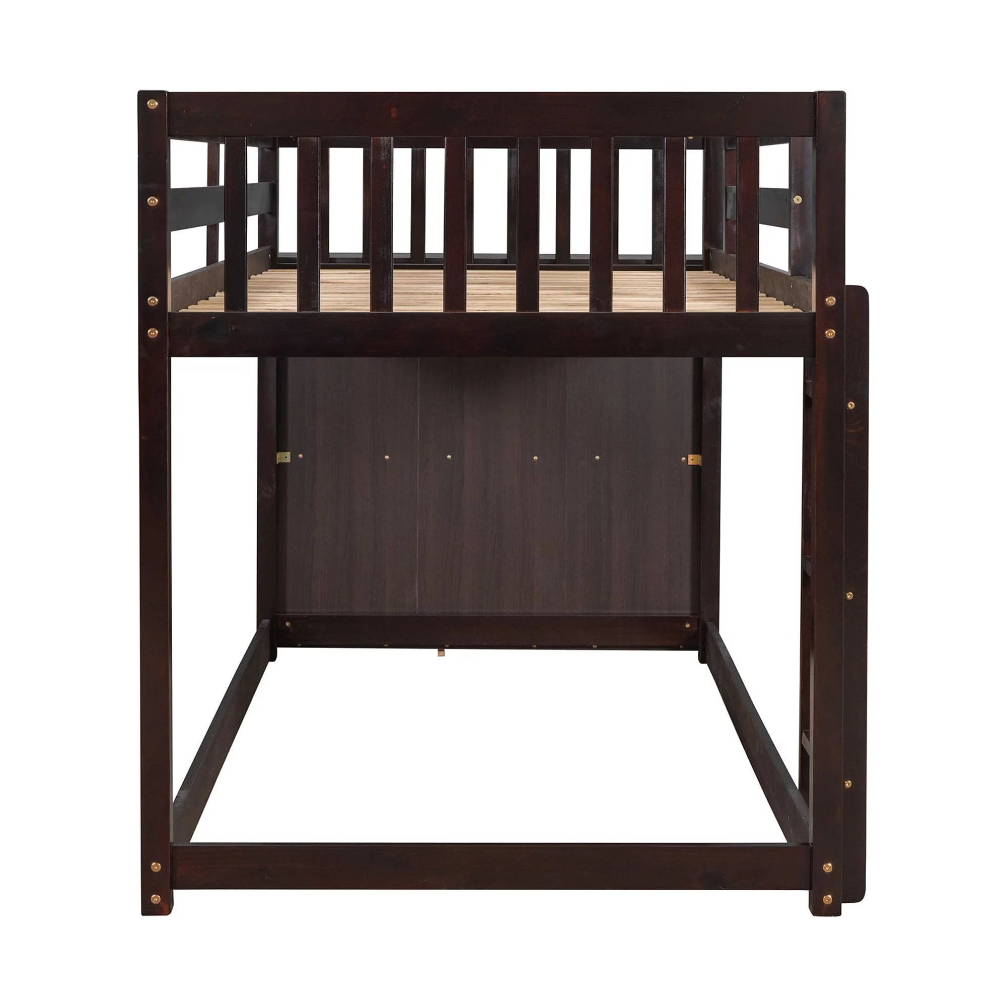 Docooler Twin over Twin Bunk Bed with 4 Drawers and 3 Shelves-Espresso
