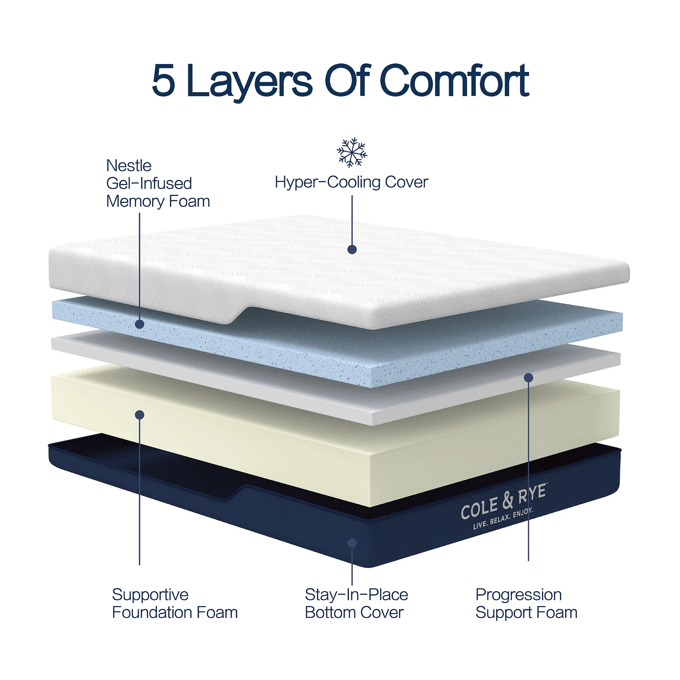 Cole & Rye ArticSky 12" Medium Firm Gel Memory Foam Mattress with BONUS Pillows, King