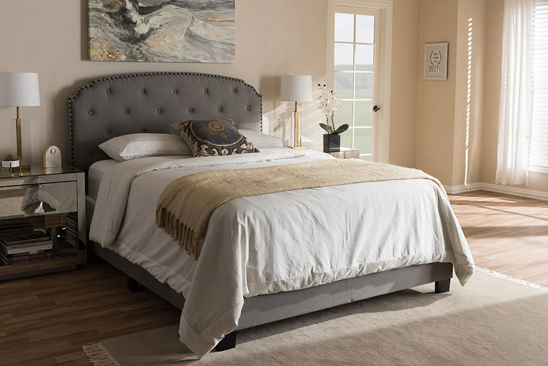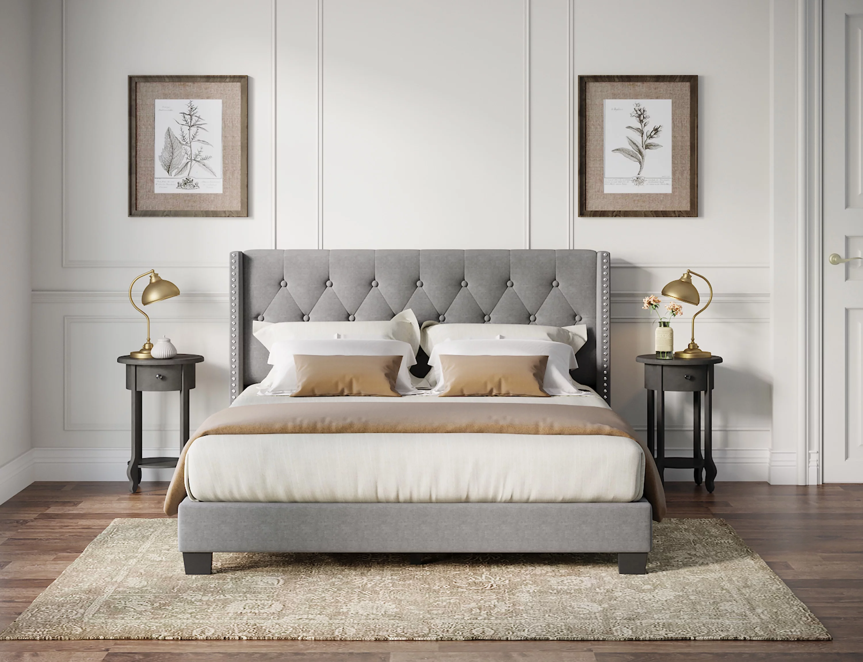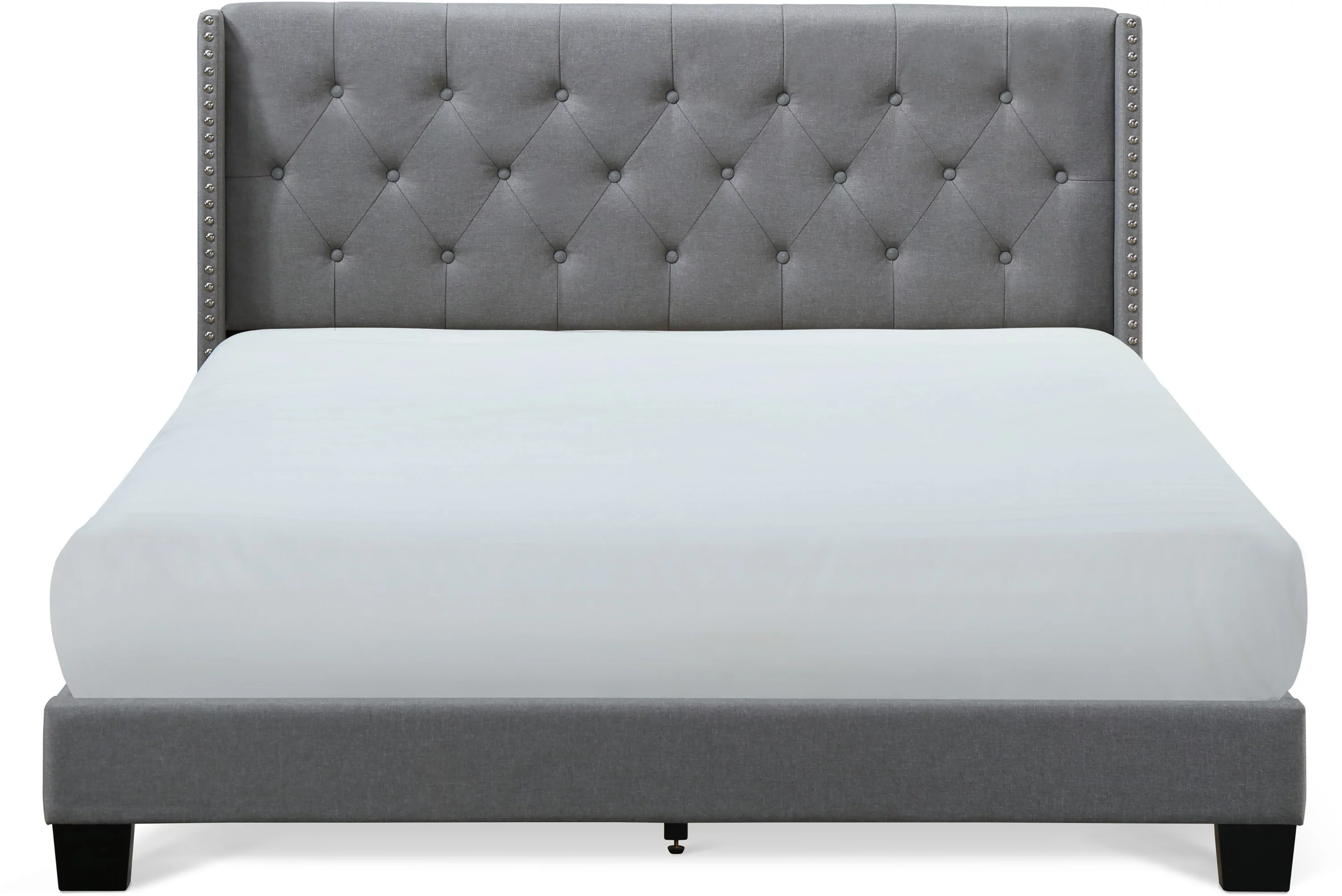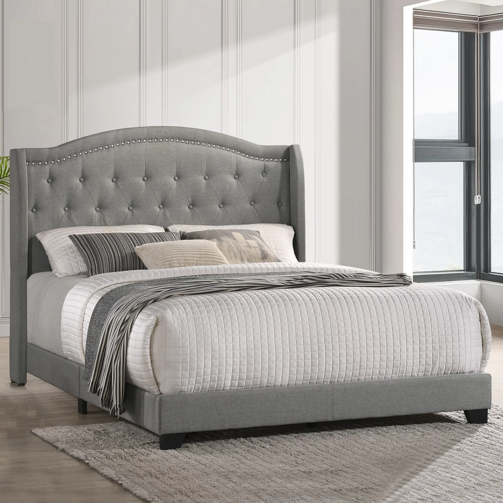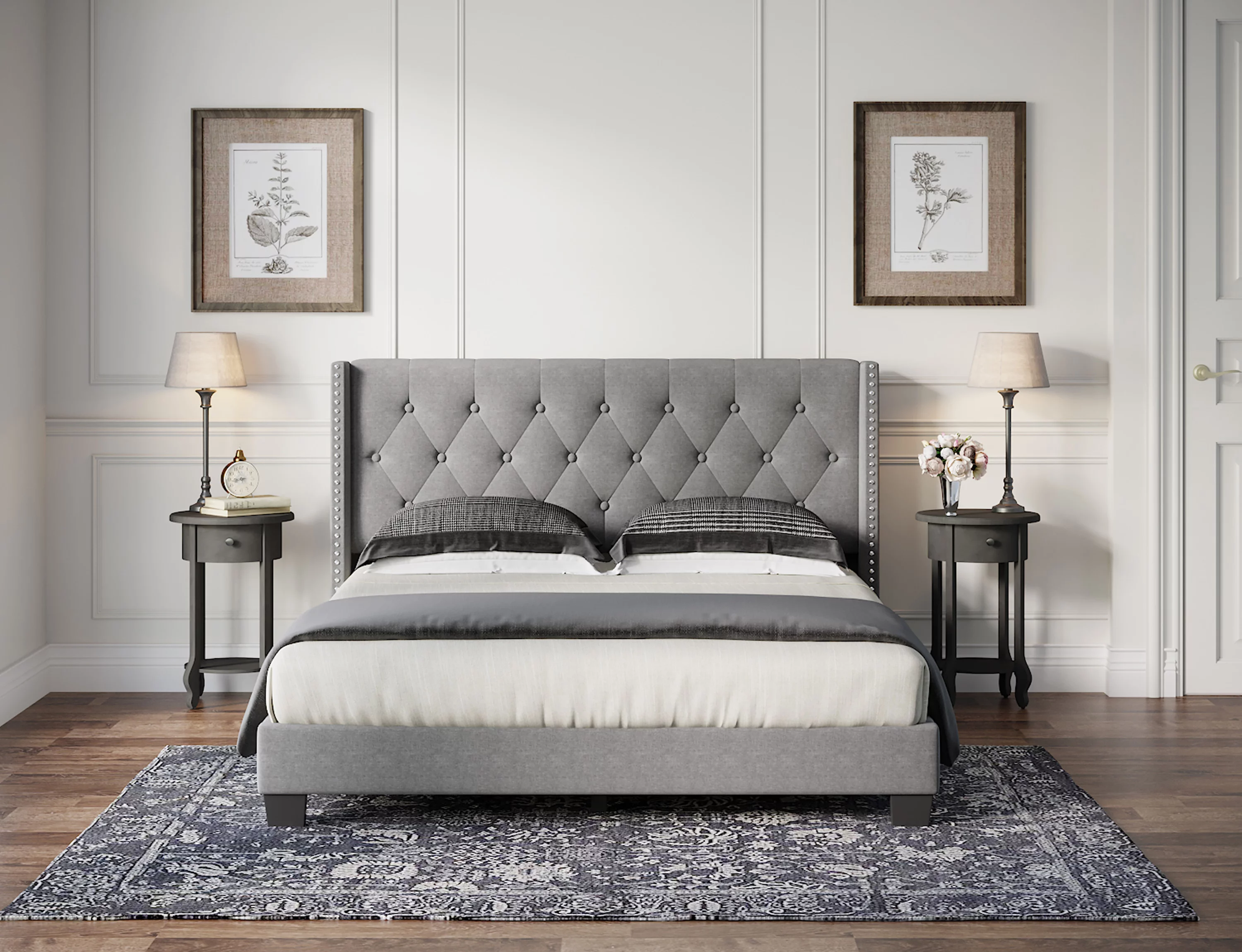 Finch Adler Contemporary/Modern Fabric Tufted Upholstered Bed, Queen, Gray