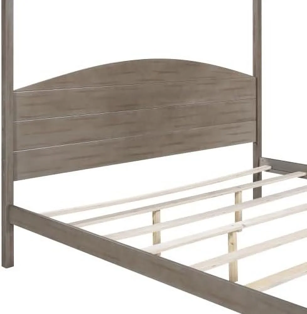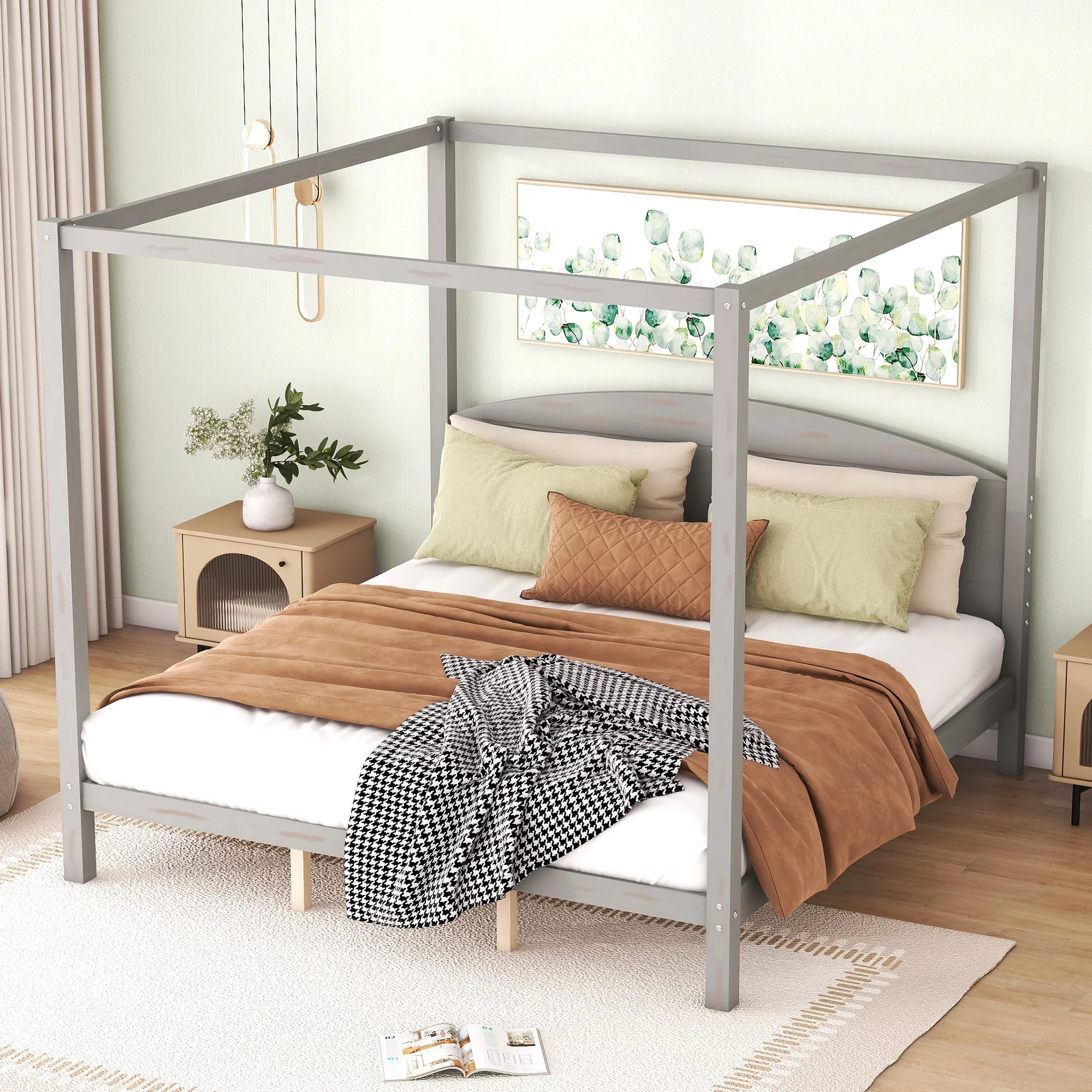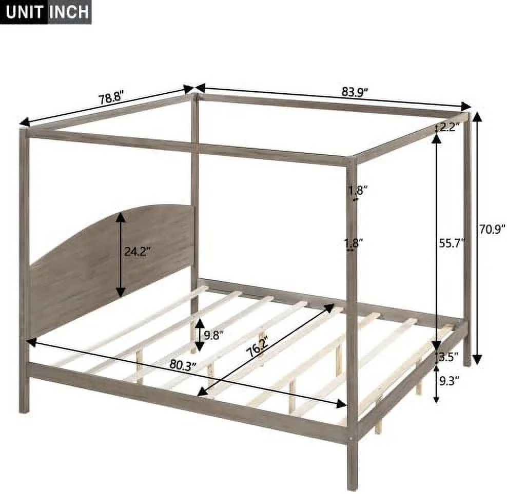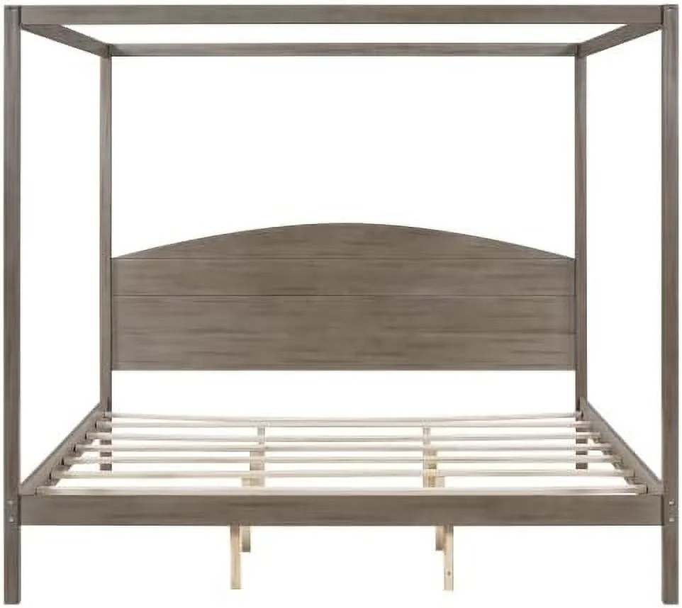 King Size Canopy Platform Bed with Headboard and Support Legs, Grey Wash