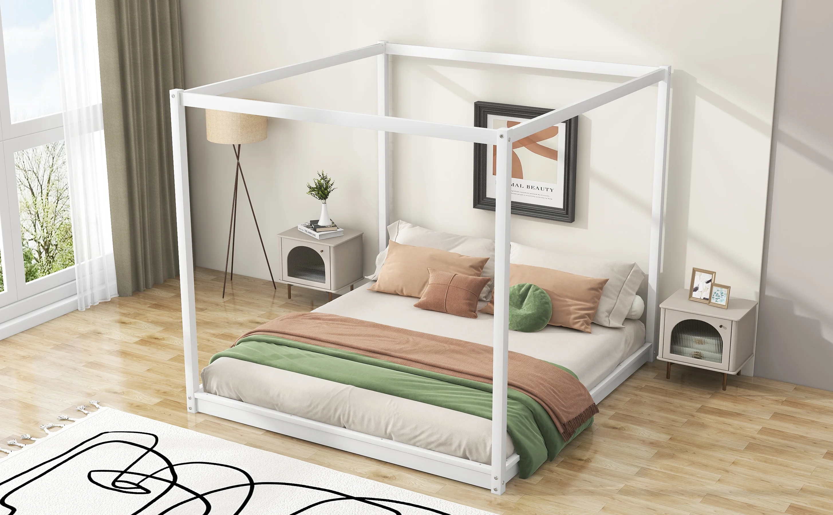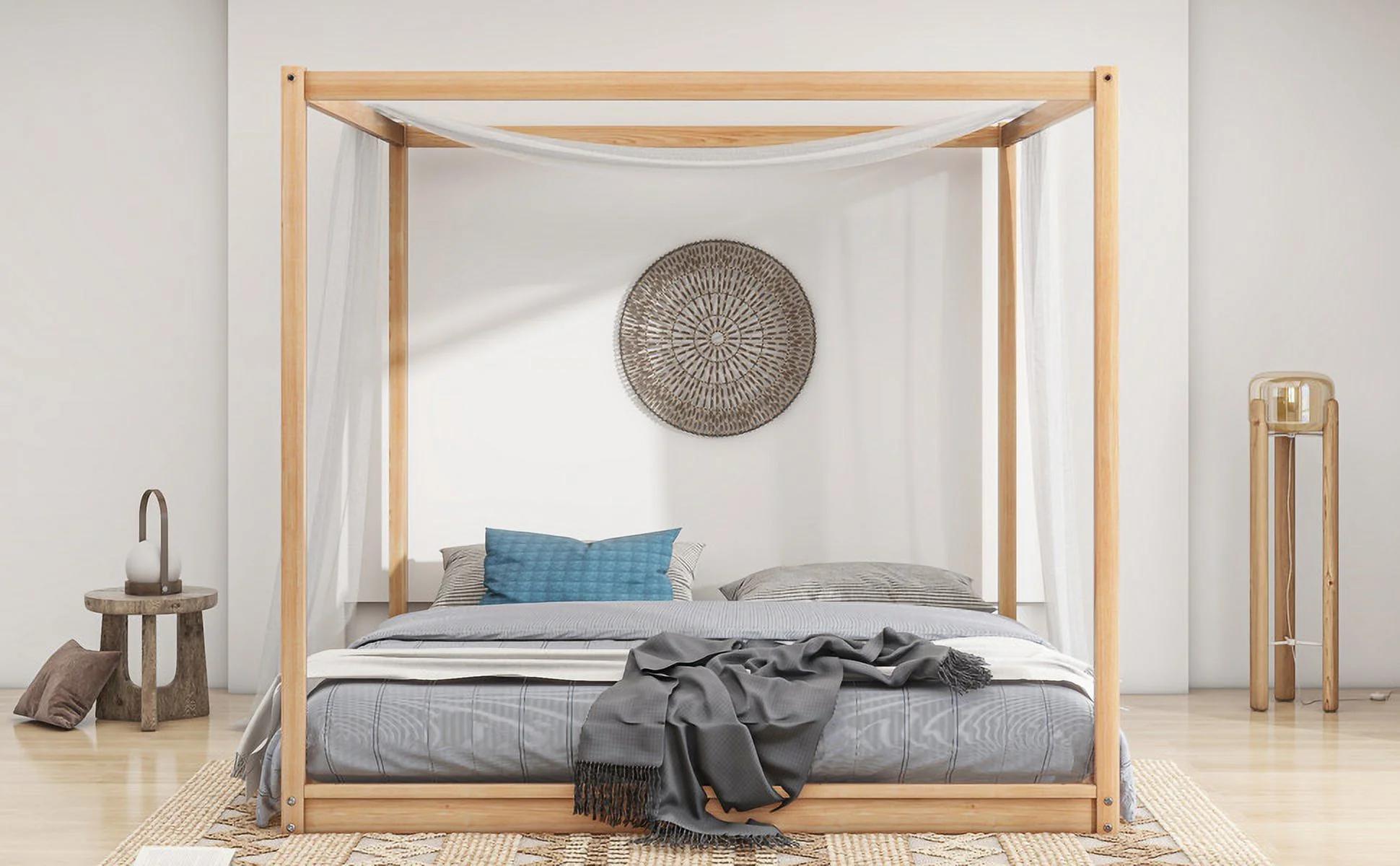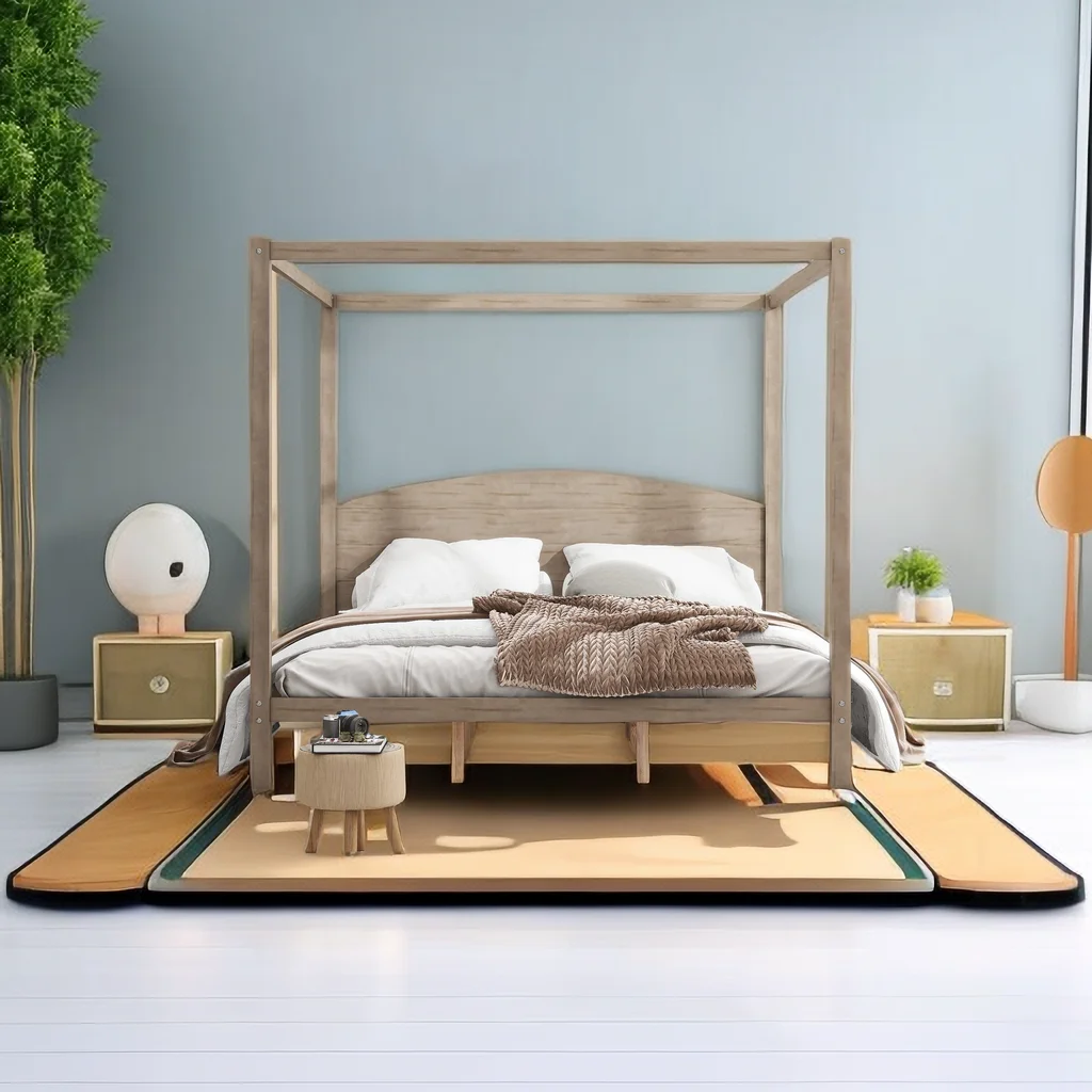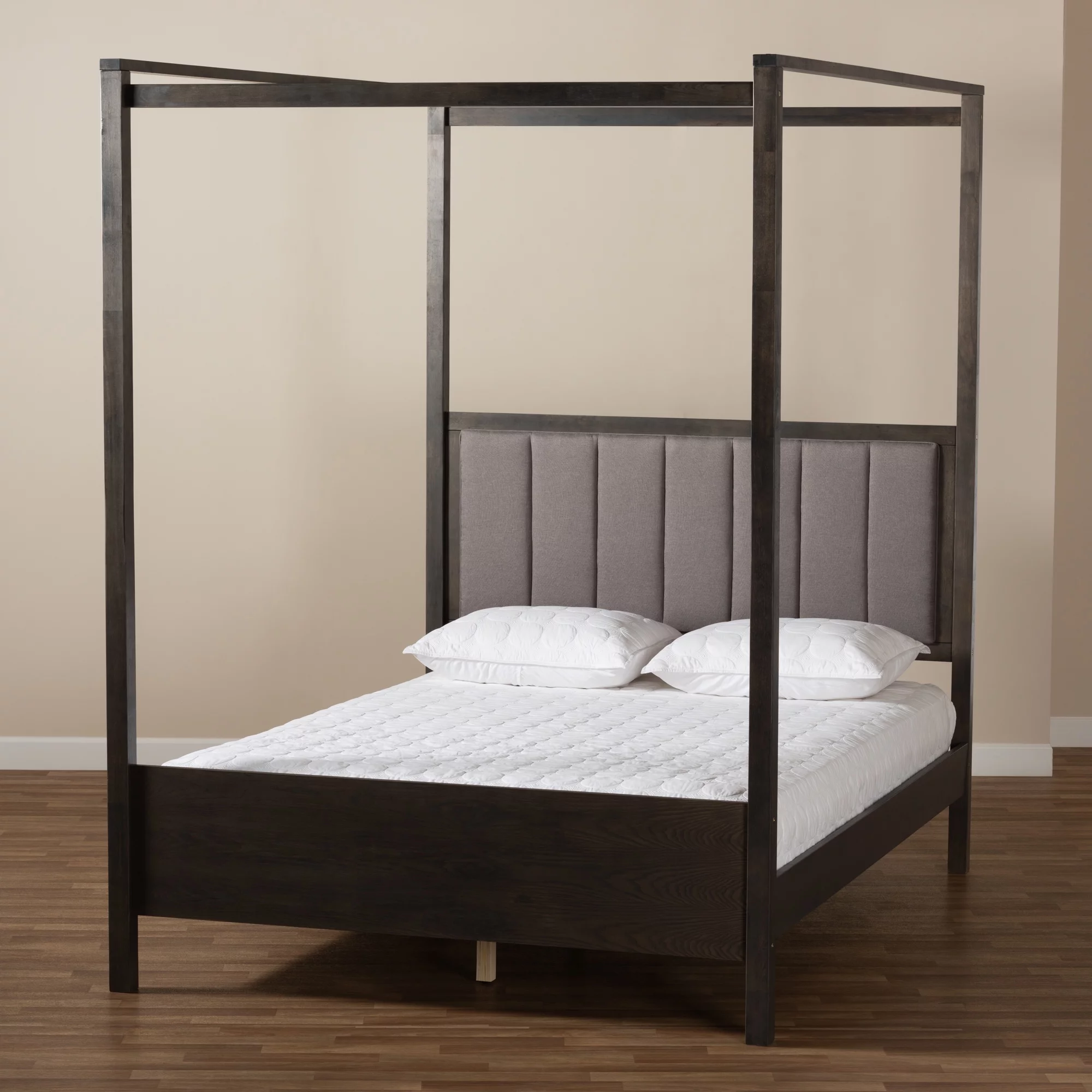 King Size Canopy Platform Bed with Headboard and Support Legs, Grey Wash