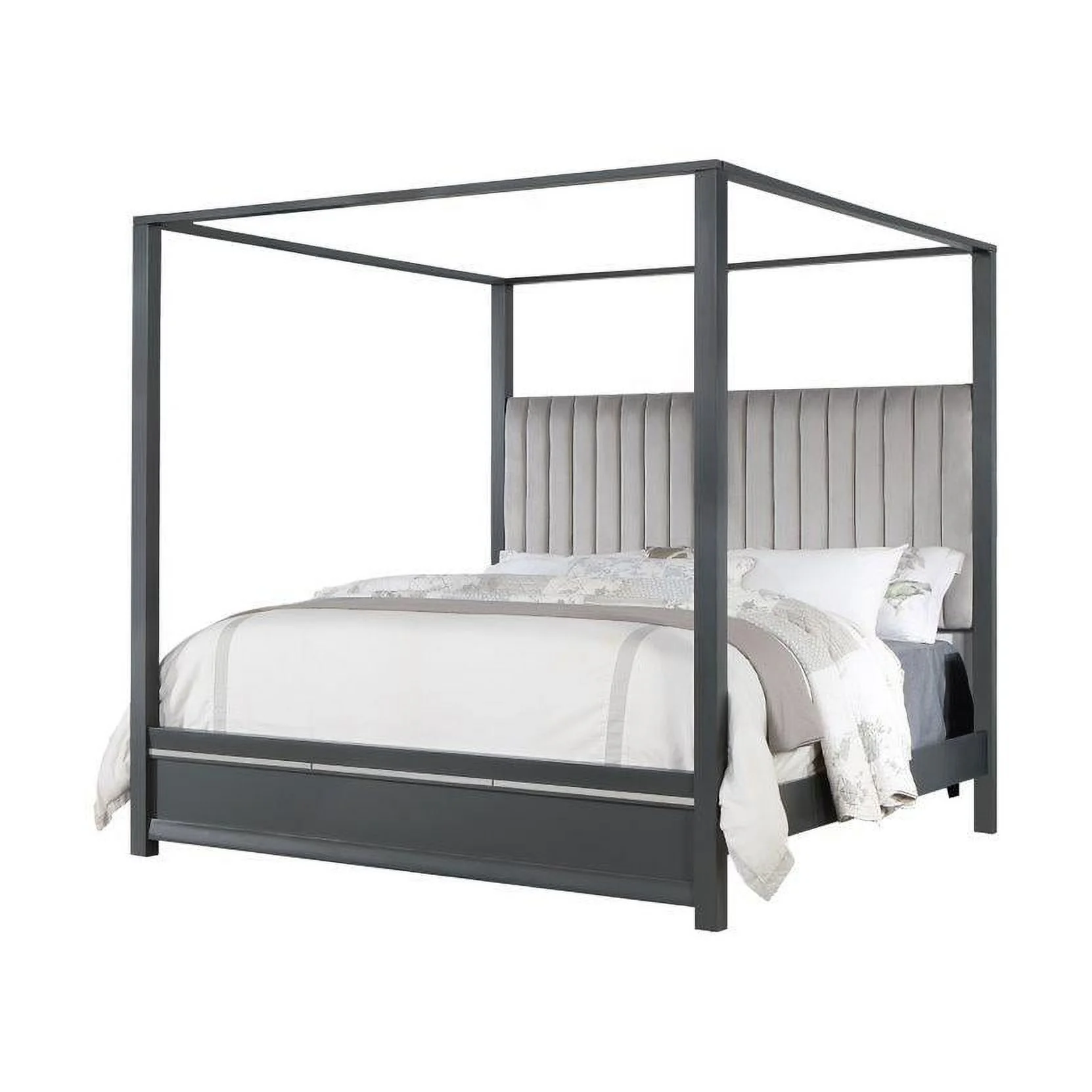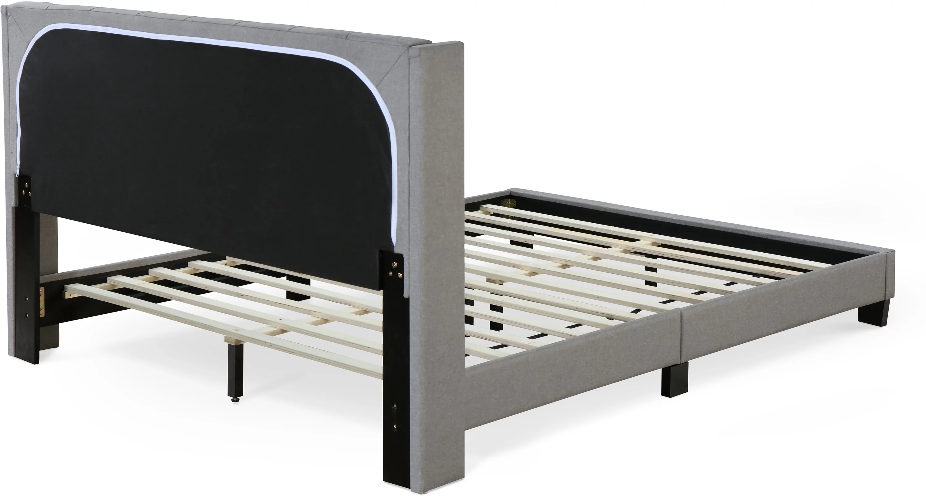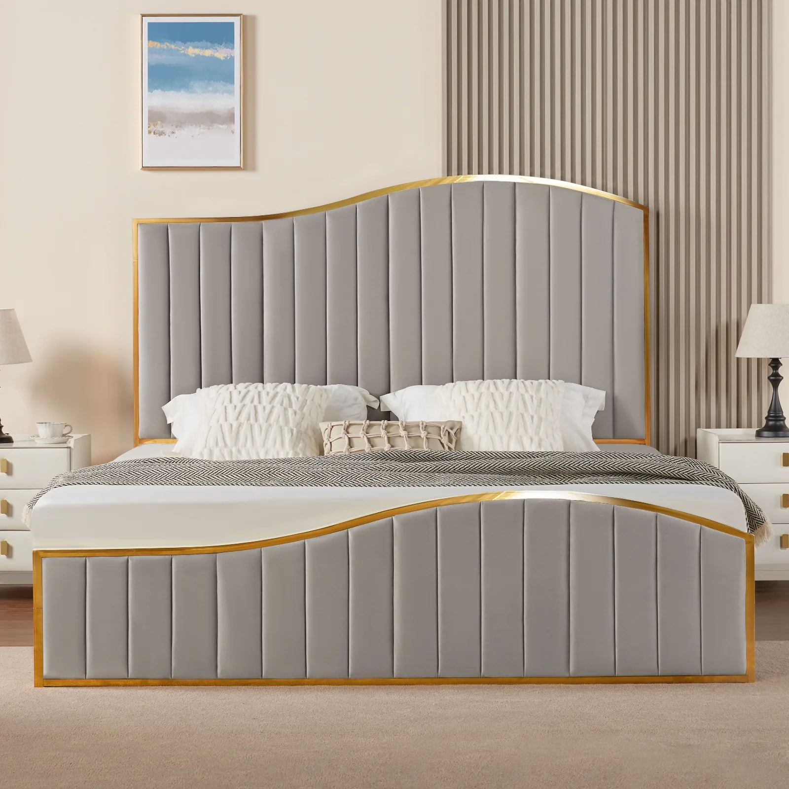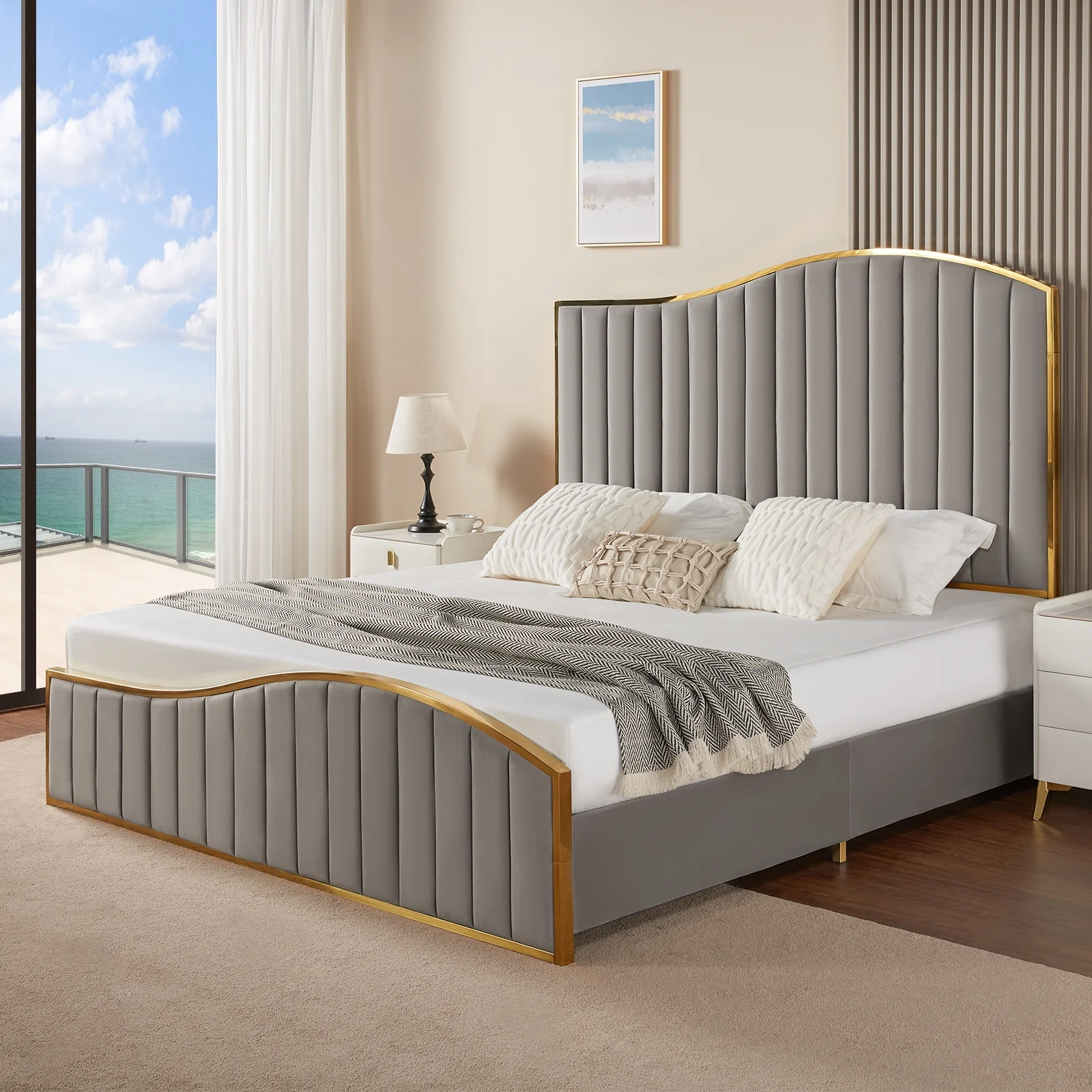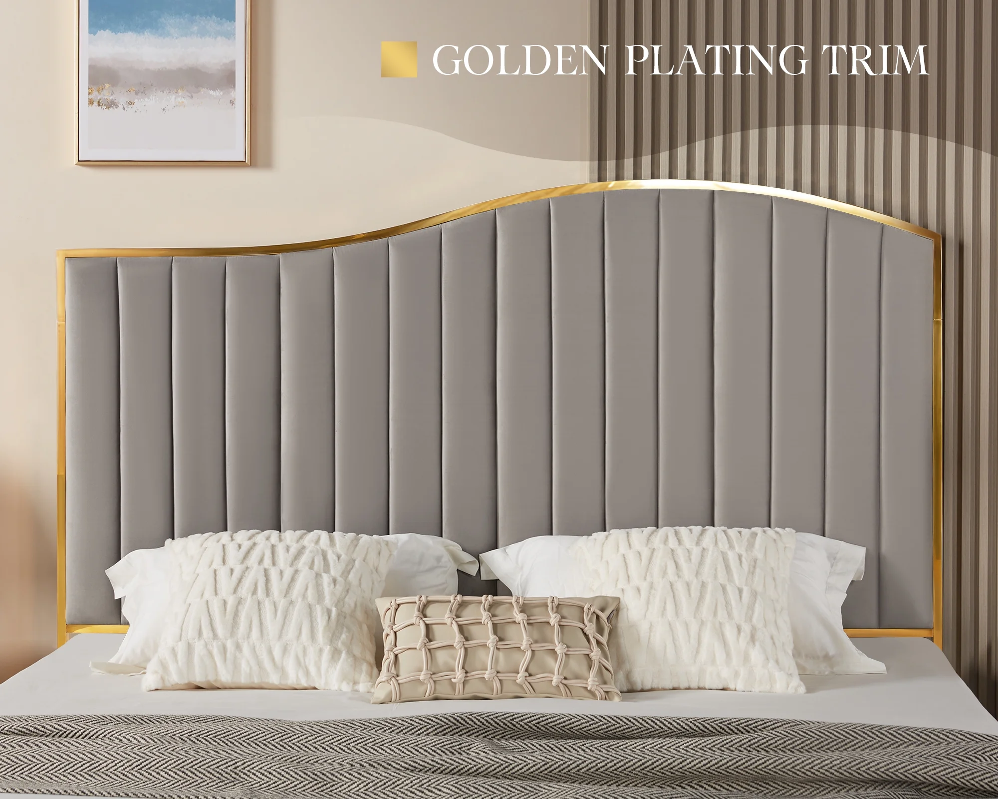 Howe King Size Platform Bed Frame 61.4" Vertical Channel Gold Trim Headboard & Footboard Grey