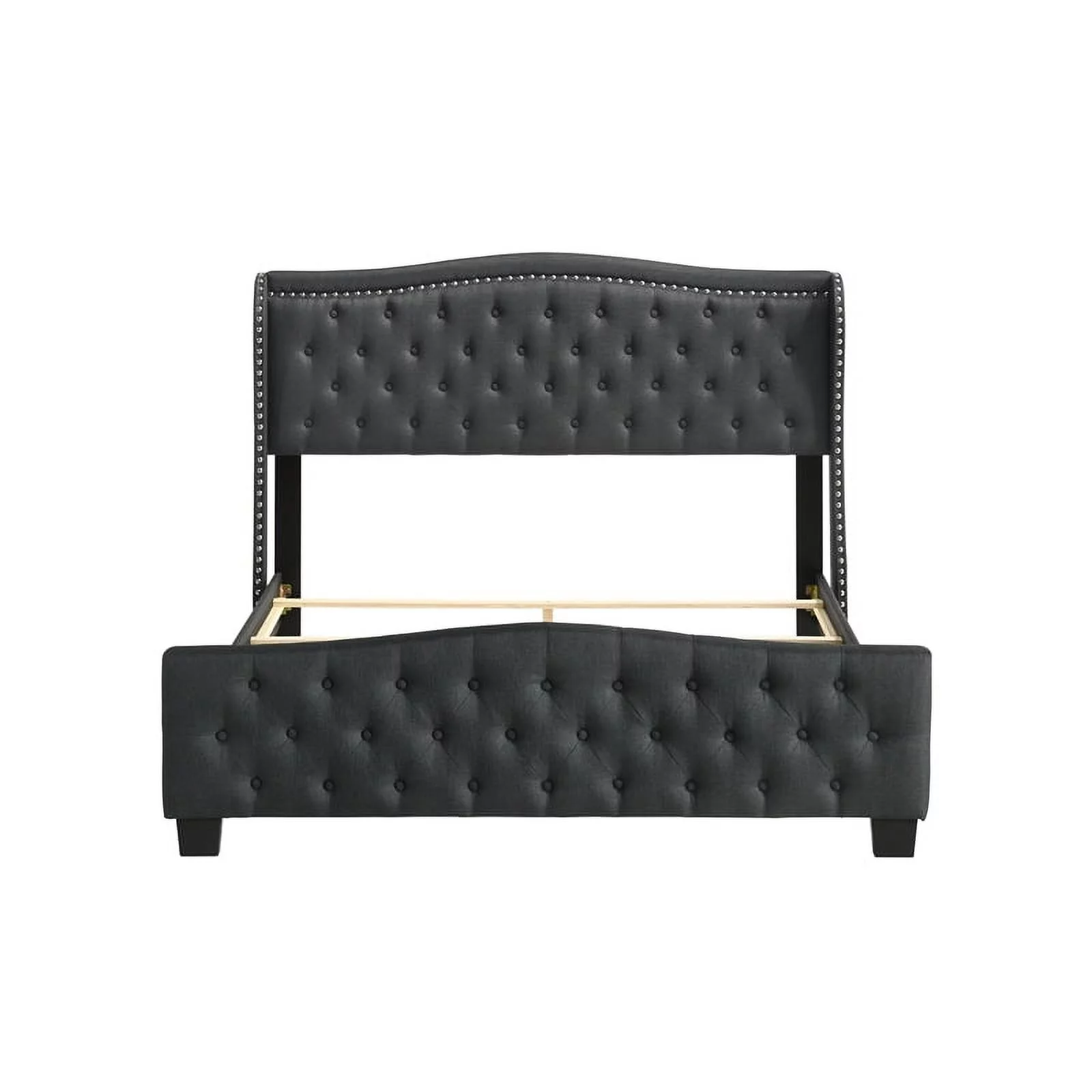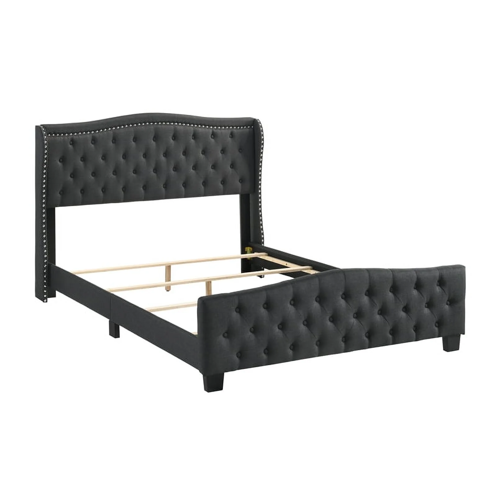 Furniture of America Trisha Dark Gray Queen Button Tufted Fabric Upholstered Bed