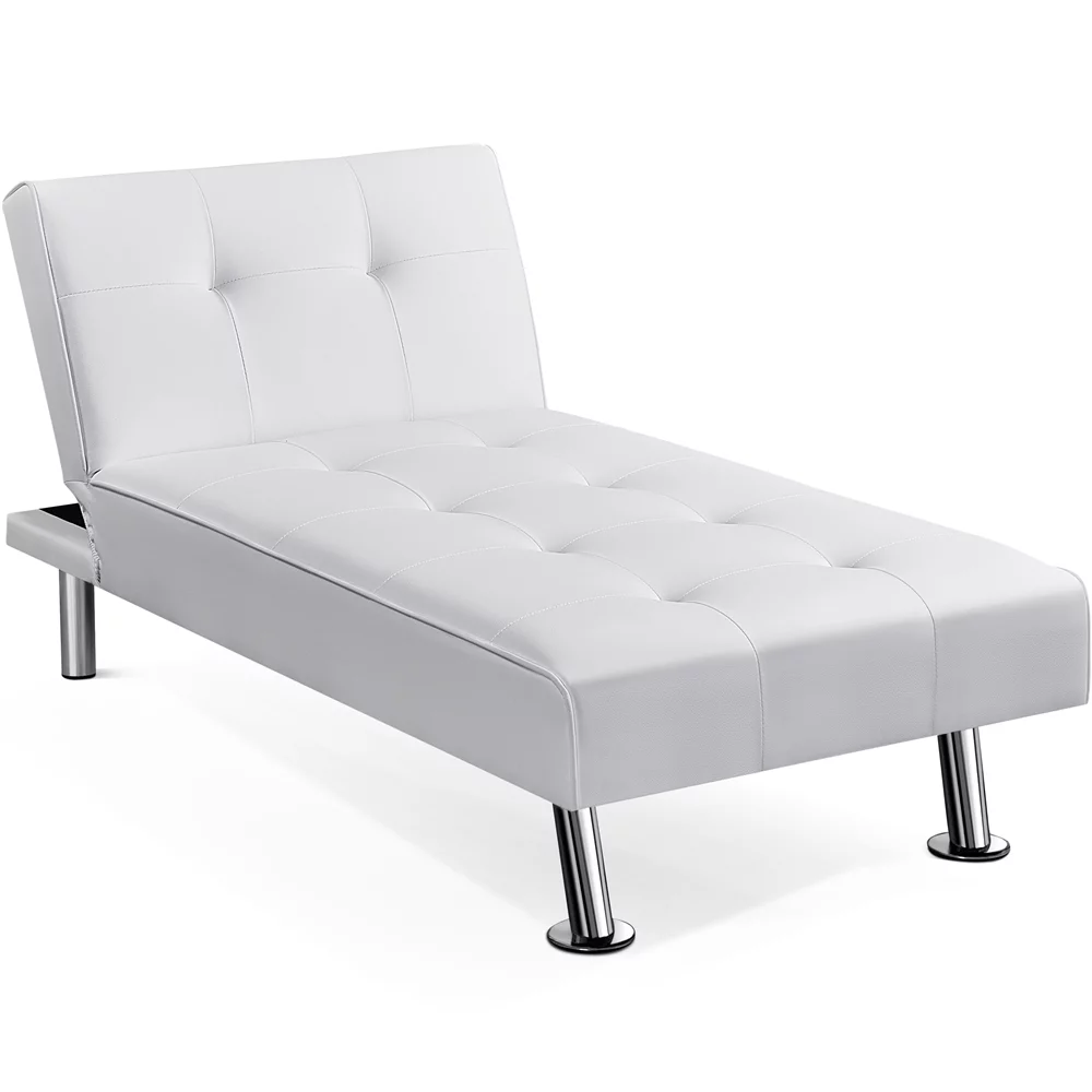 Yaheetech Faux Leather Chaise Lounge Convertible Futon Daybed With Chrome Metal Legs, White
