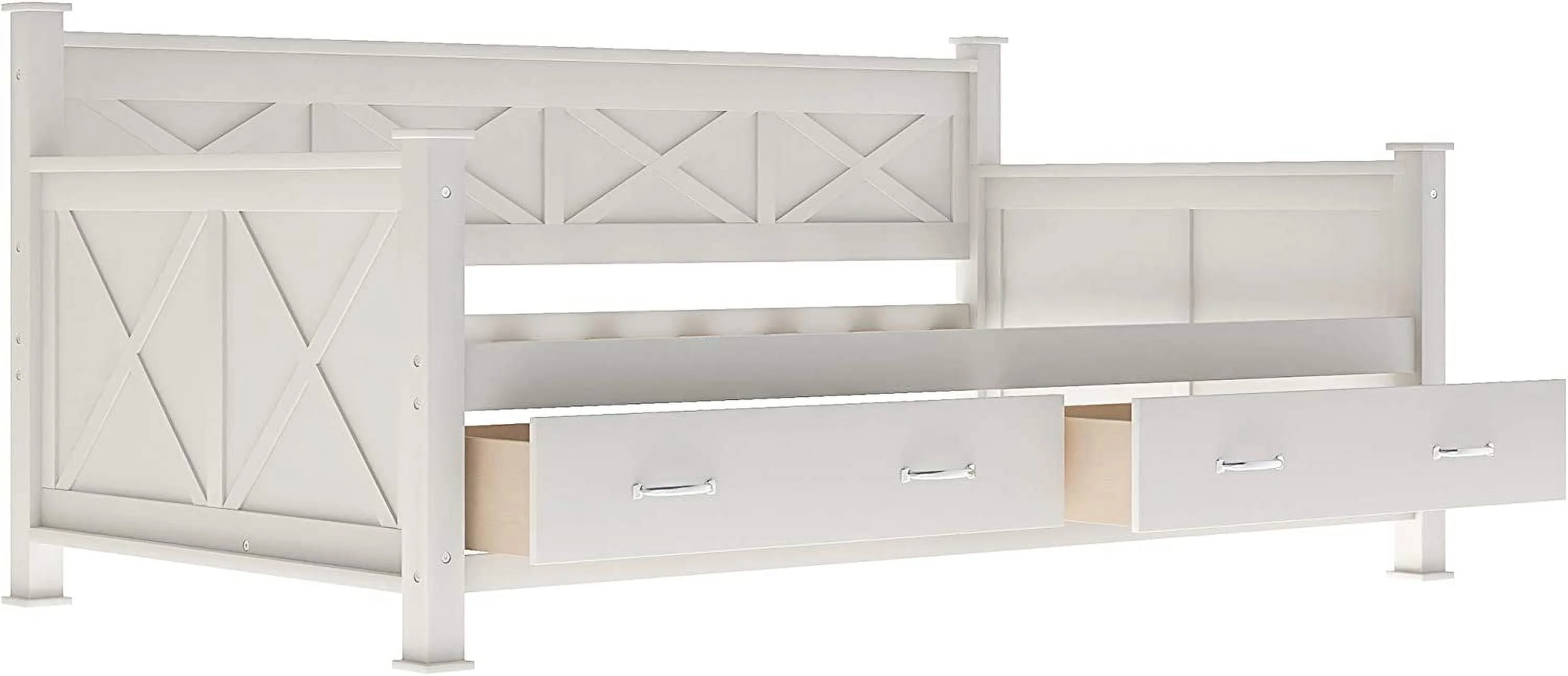 Size Daybed With Drawers, Wood Bed Frame With Storage Drawers, No Box Spring Needed (Cream (With Drawers))