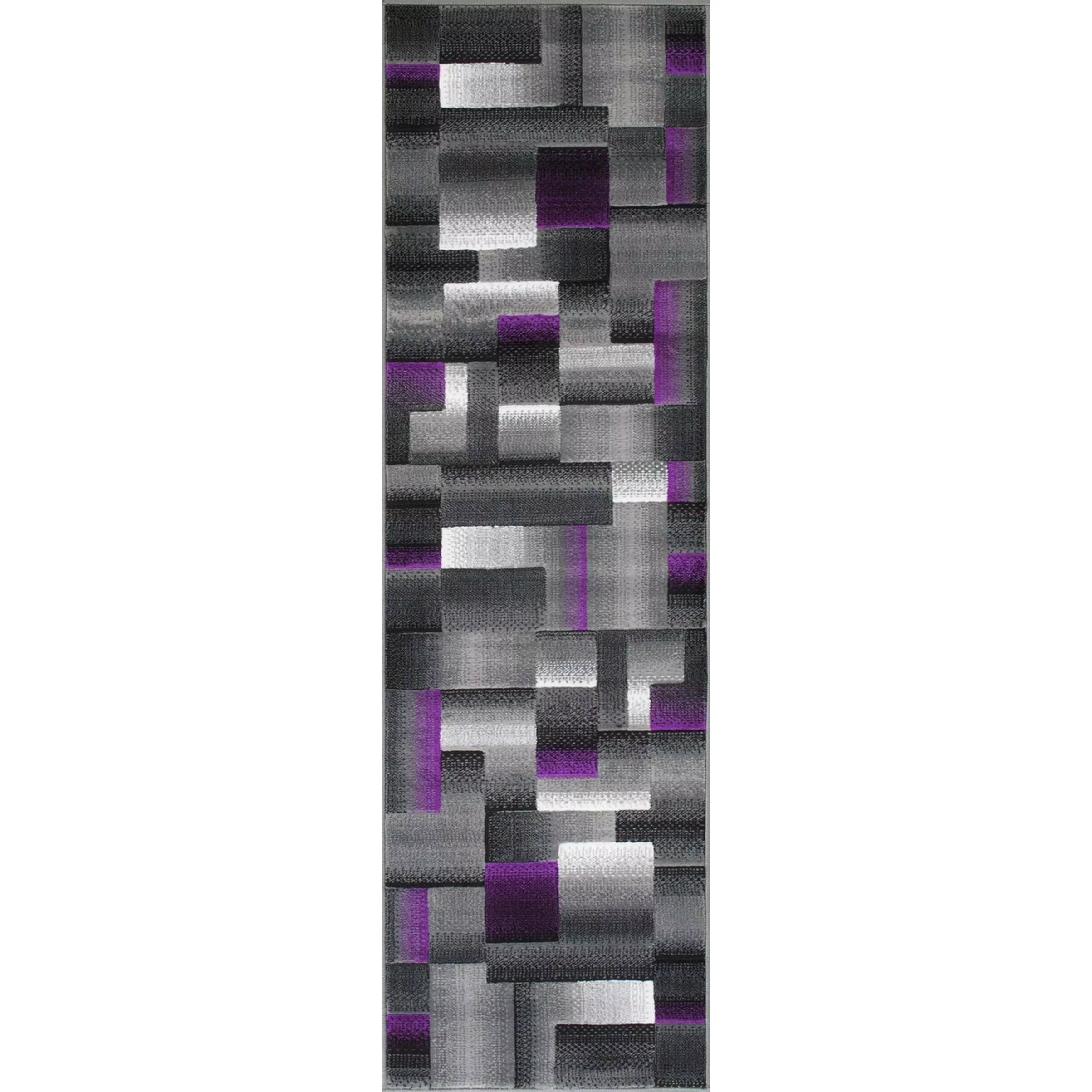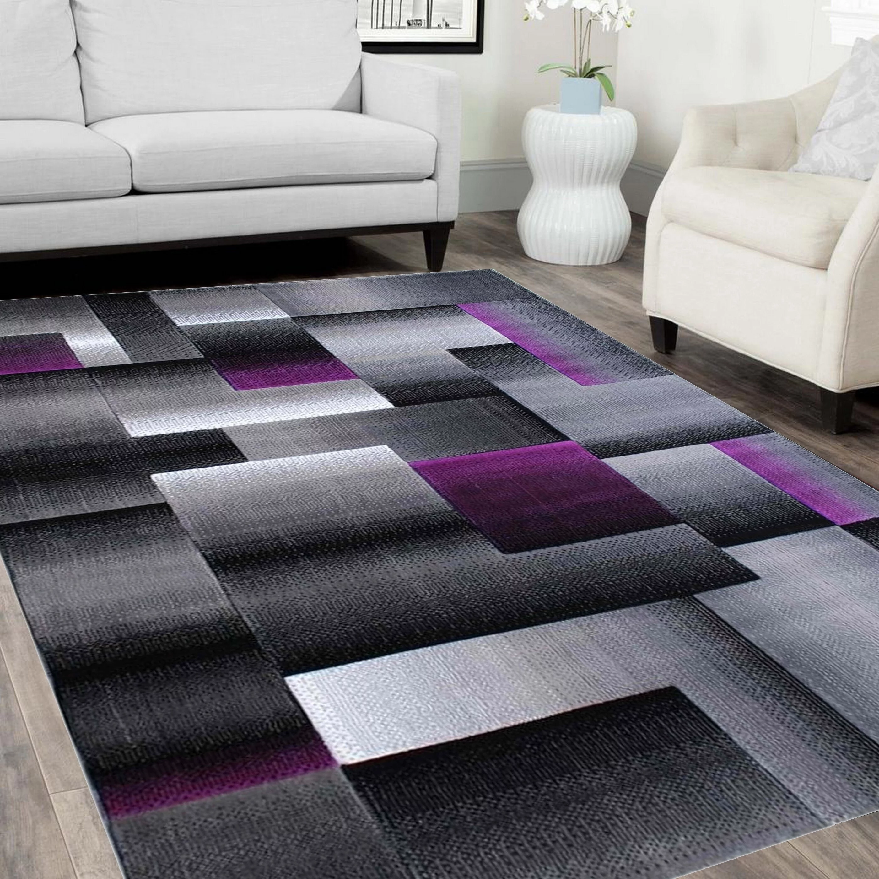 HR Purple Grey Silver Black Abstract Rug Modern Geometric Square Design 8' x 10'