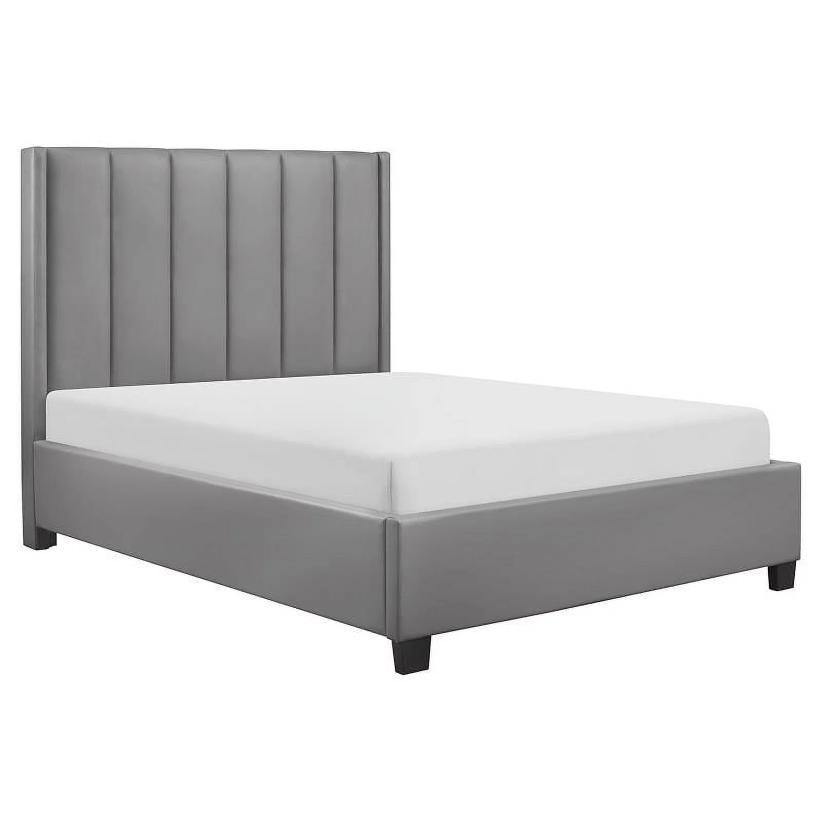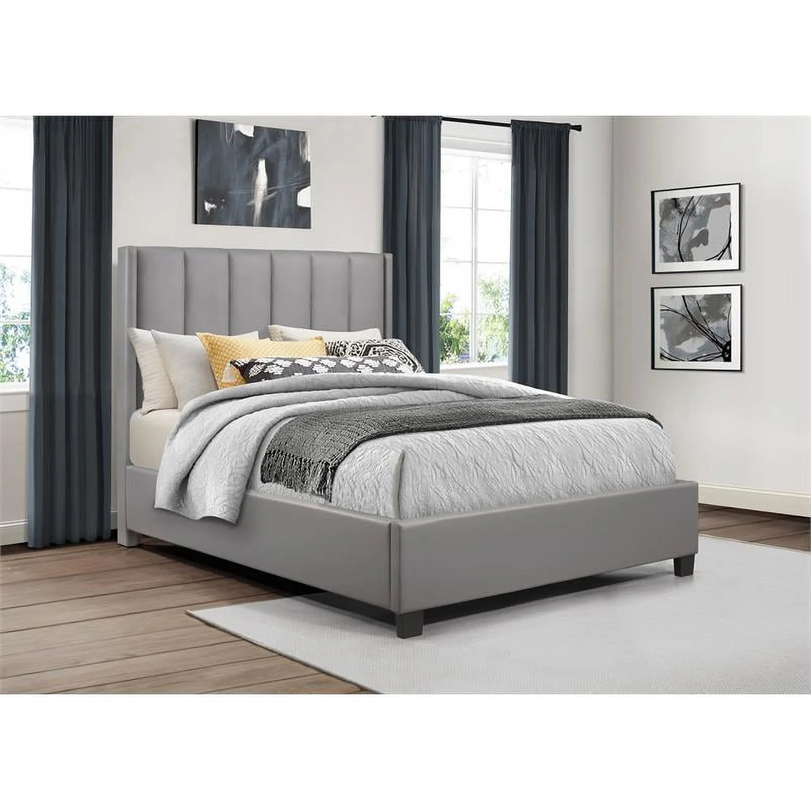 Pemberly Row 65.5" Modern Faux Leather Queen Upholstered Platform Bed in Gray