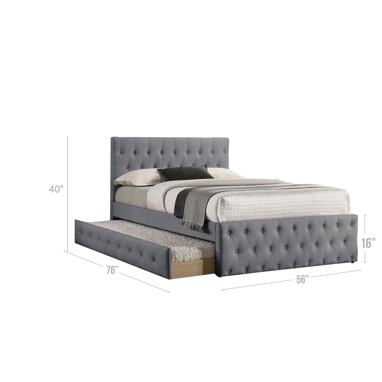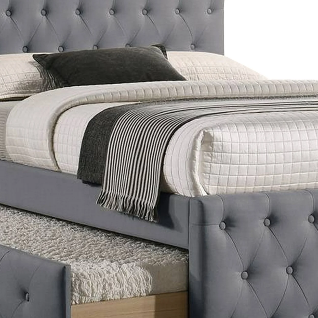 Nek Full Size Upholstered Bed with Twin Trundle Button Tufted Gray Burlap - Saltoro Sherpi