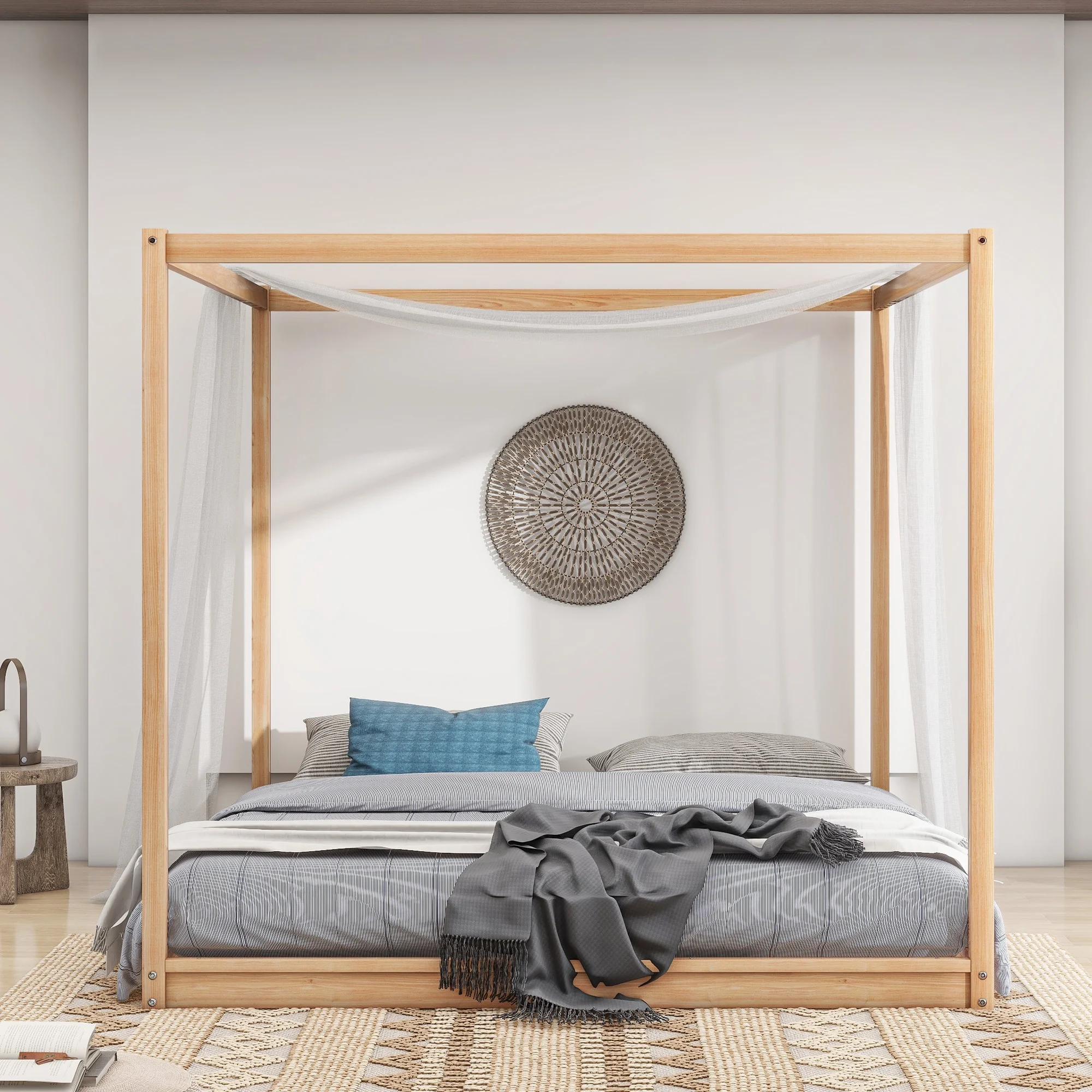 King Size Canopy Platform Bed with Headboard and Support Legs, Brown Wash