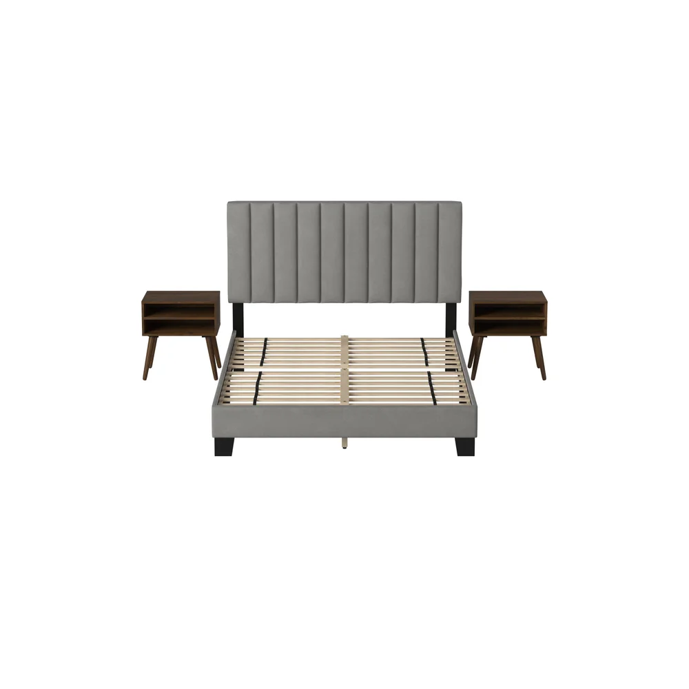 Picket House Furnishings Colbie Upholstered Queen Platform Bed With Nightstands in Grey