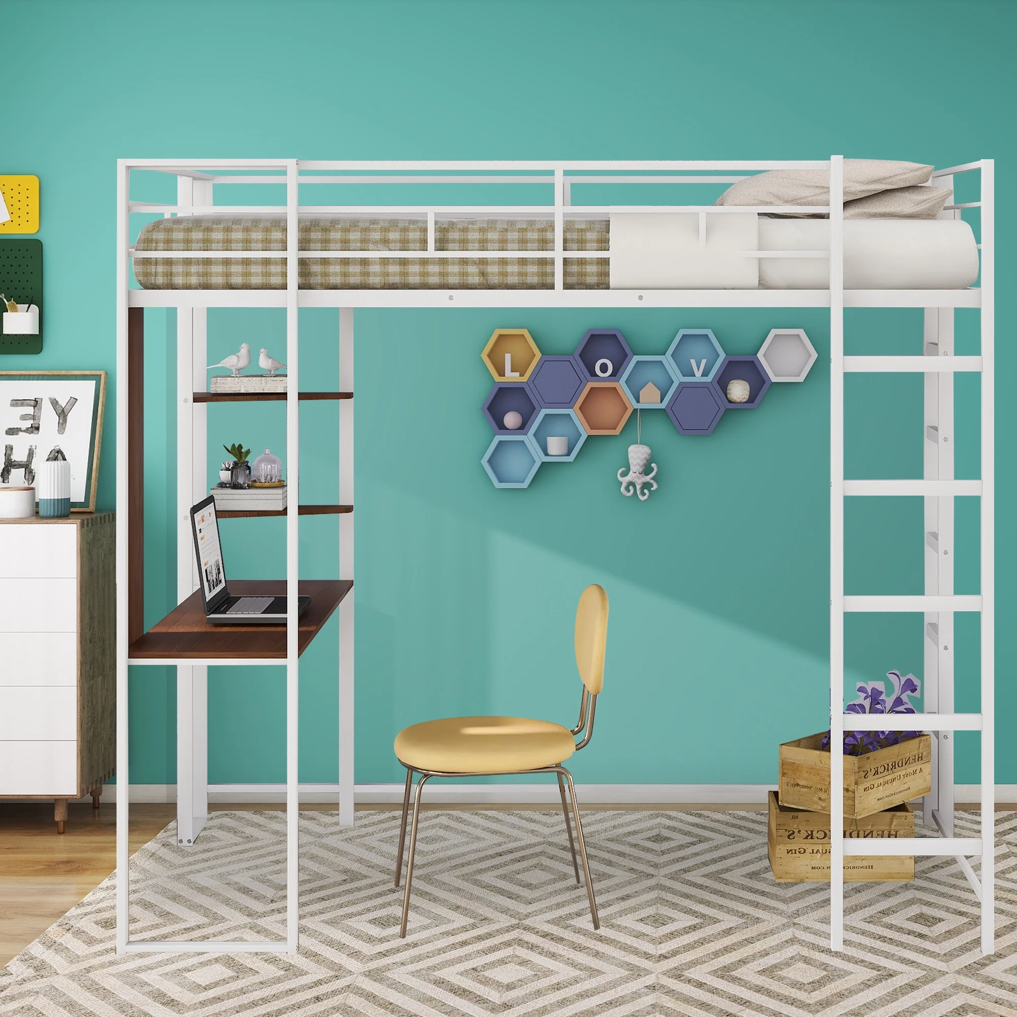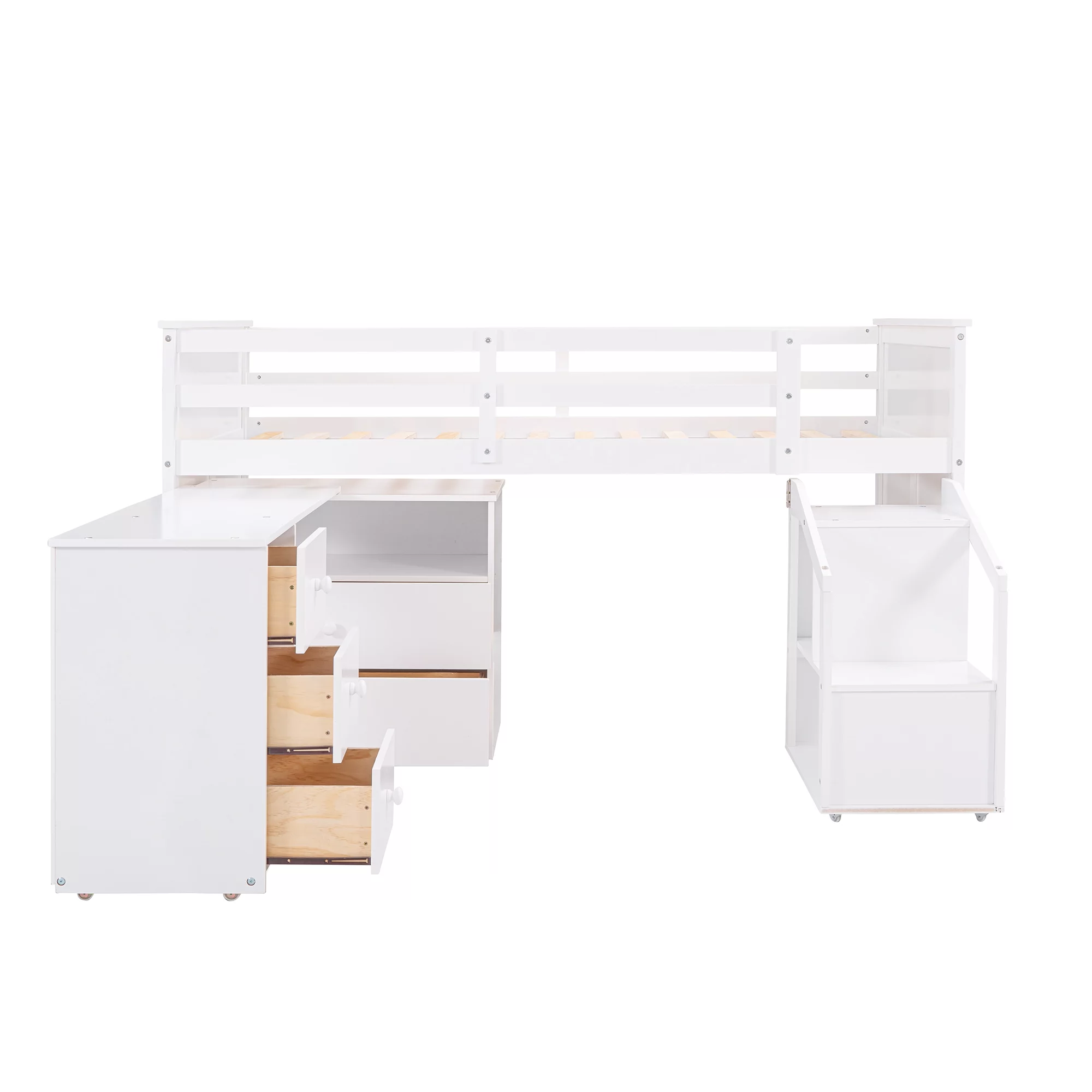Dcenta Loft Bed Low Study Twin Size Loft Bed With Storage and Portable,Desk,White,his product comes in 2 separate packages