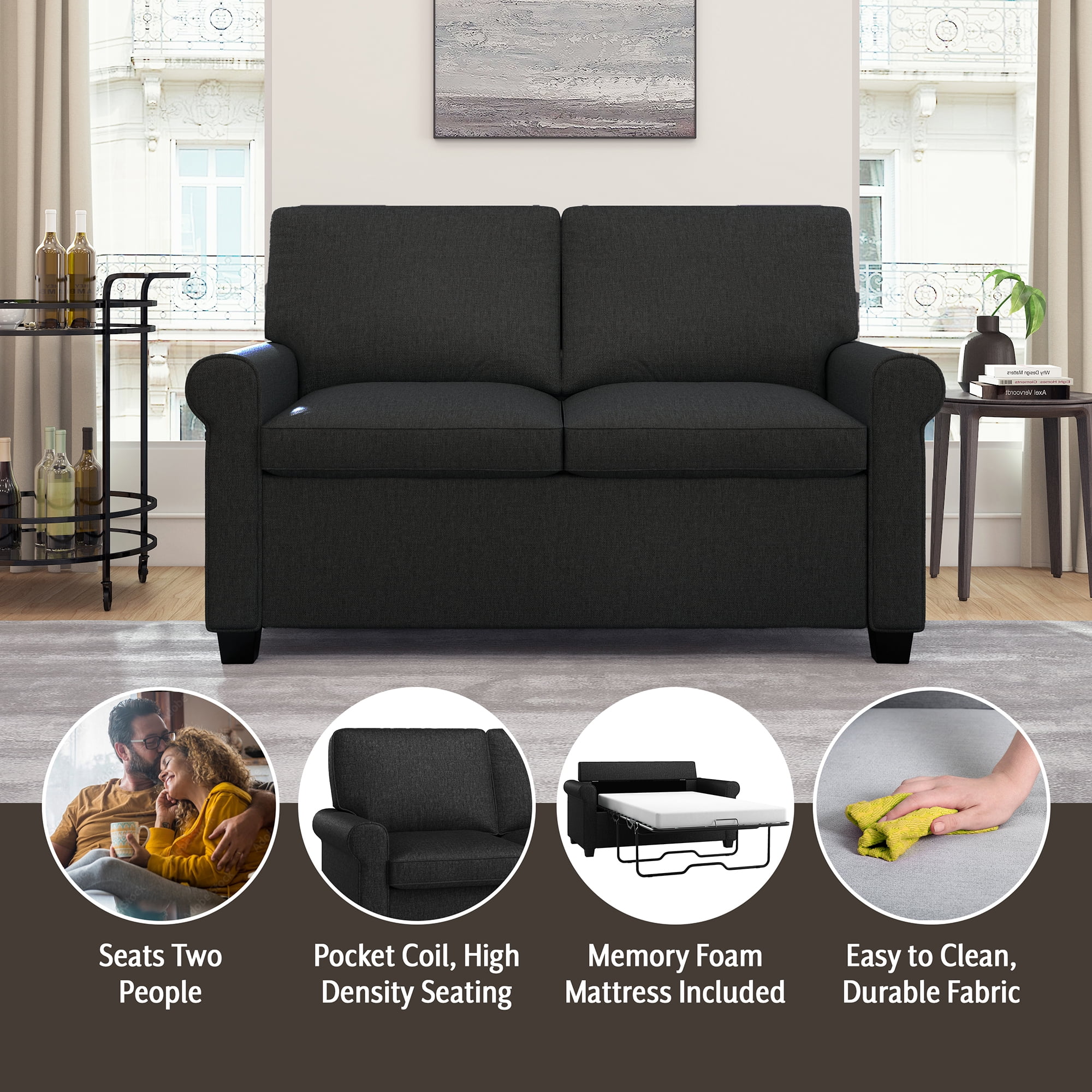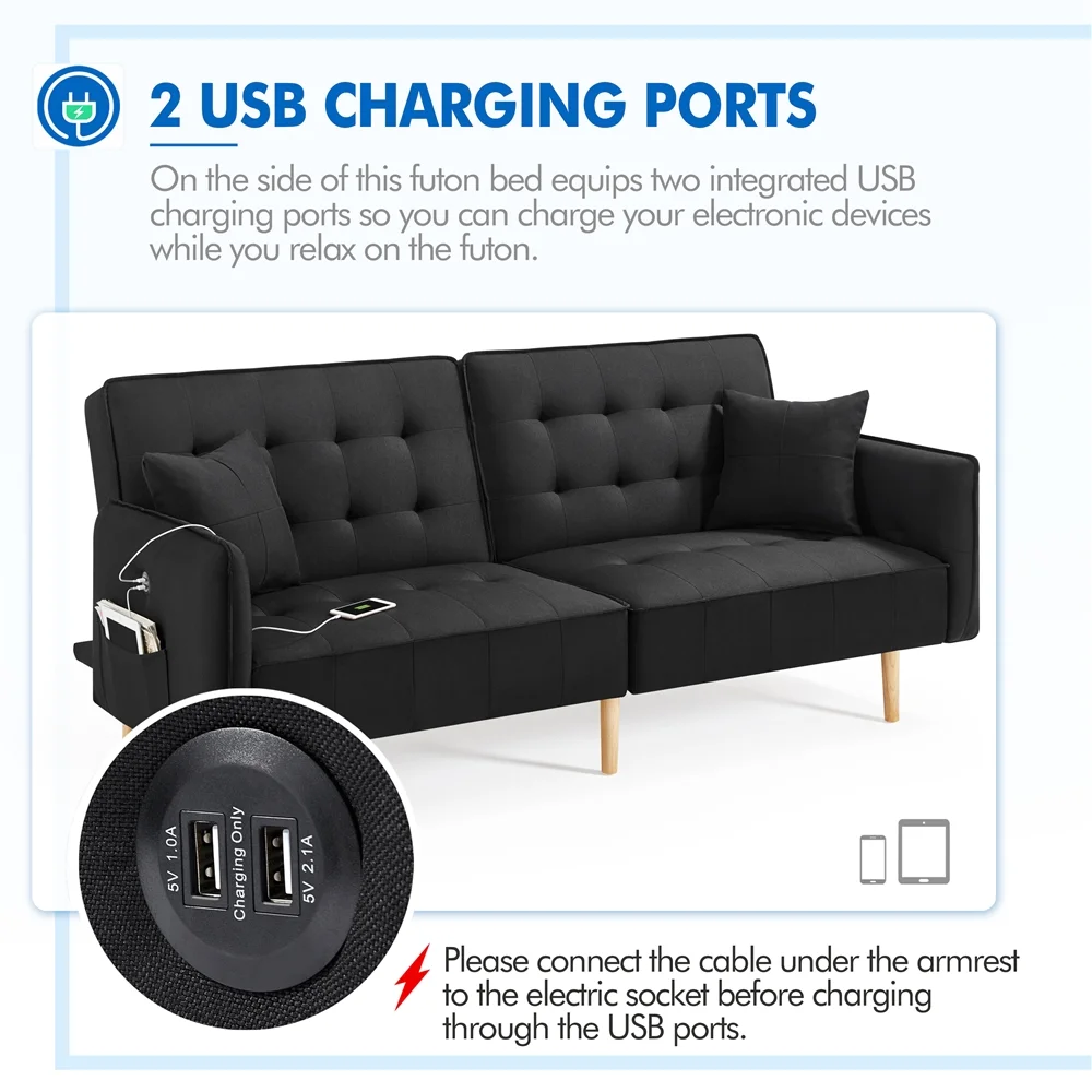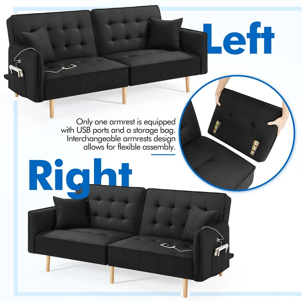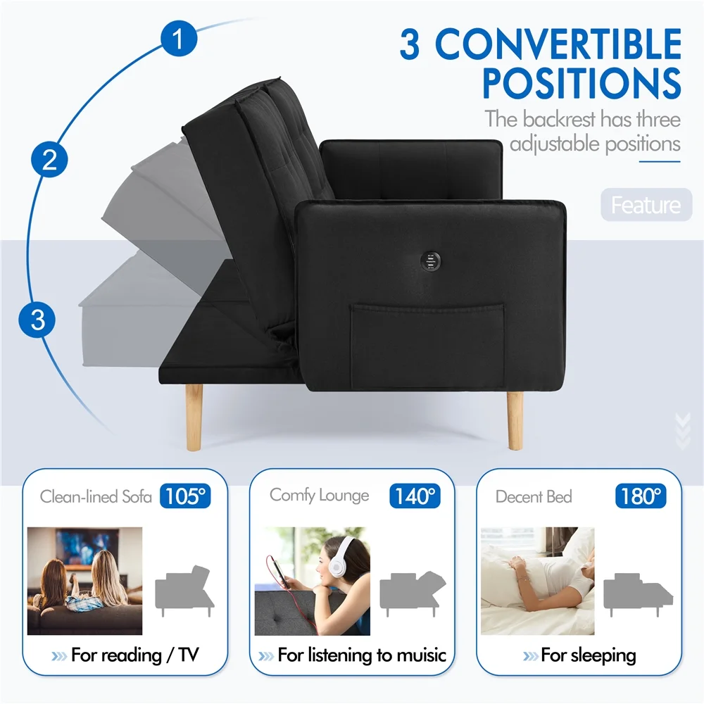 BSHTI 72.4"Futon Convertible Sofa Bed with 3 Adjustable Positions Twin - Dark Gray