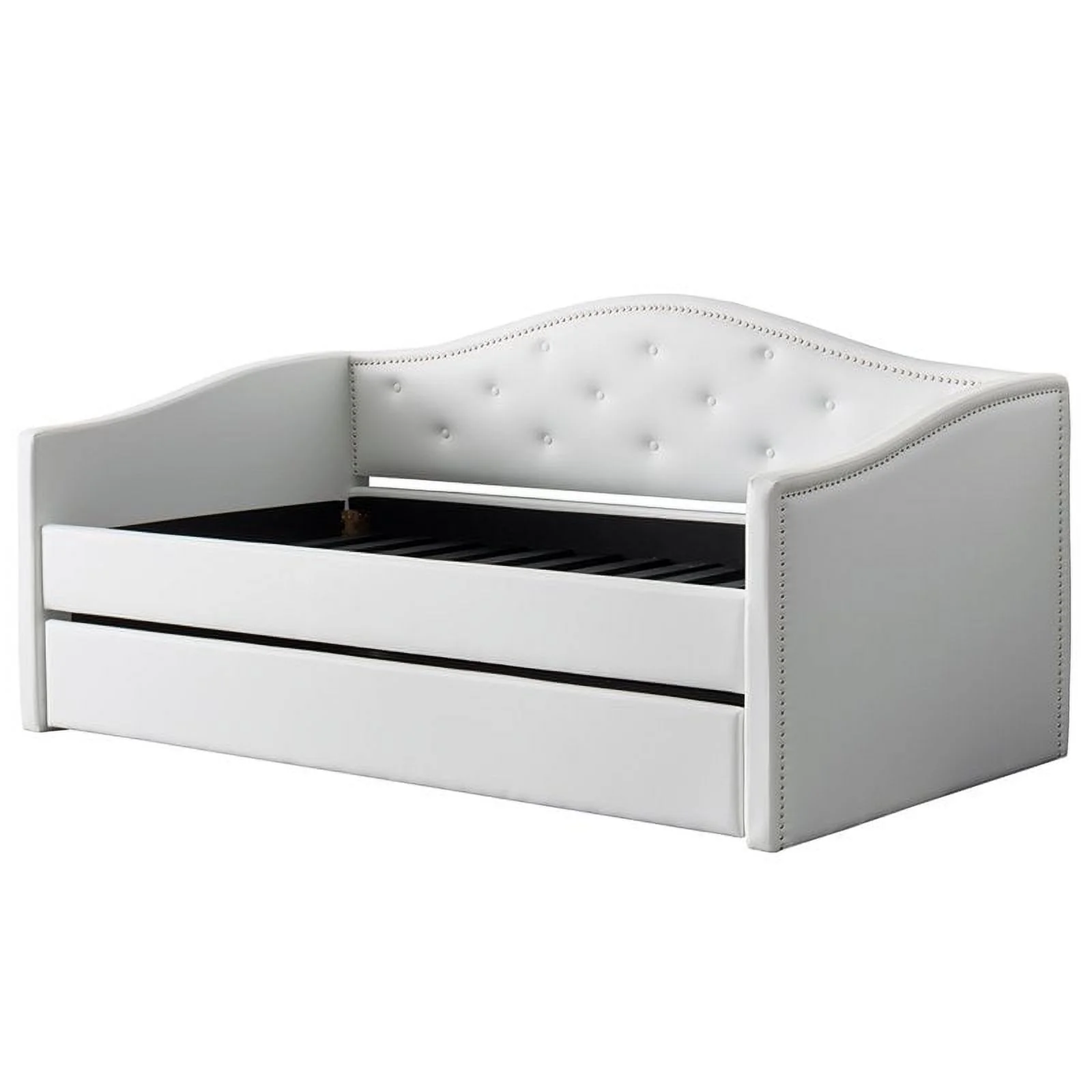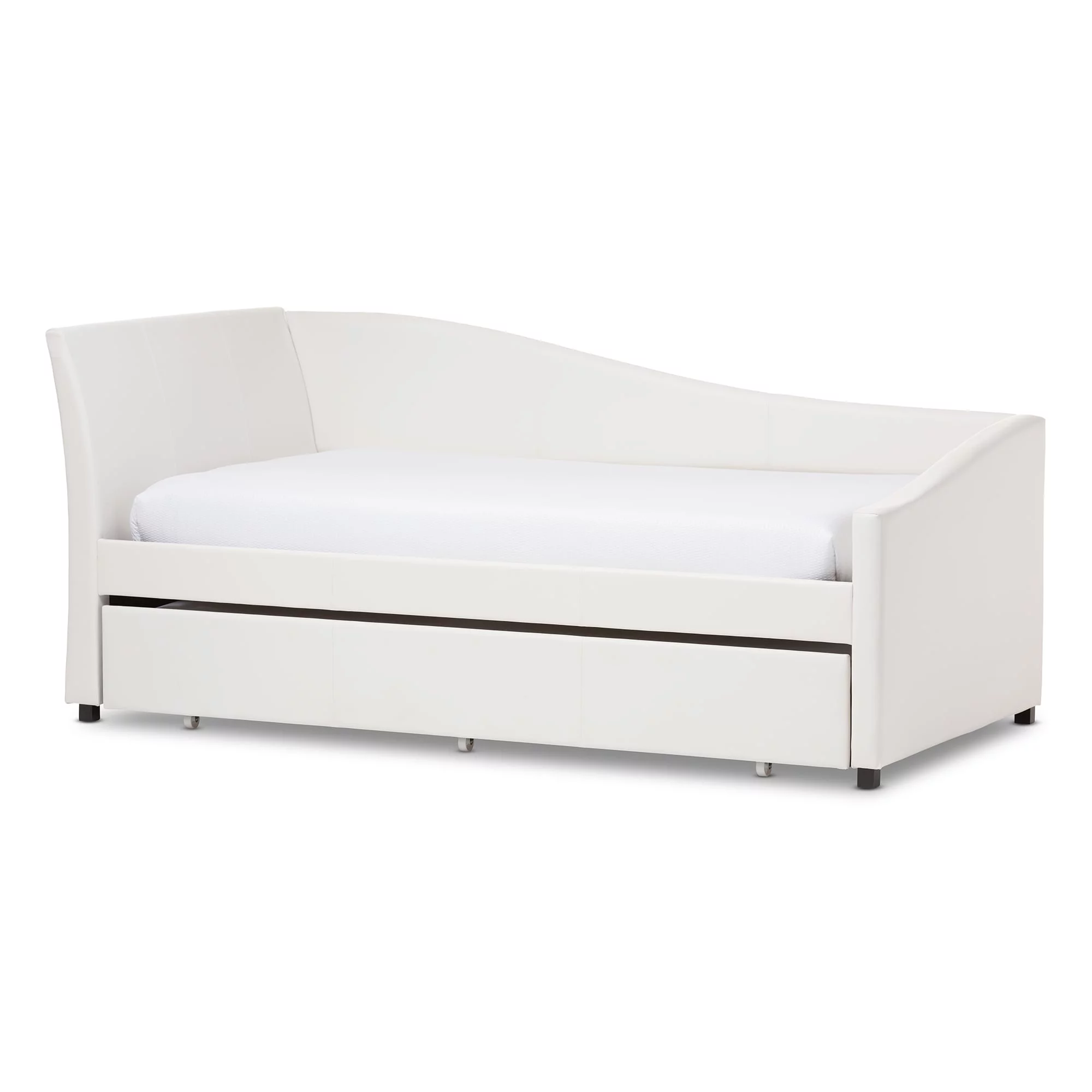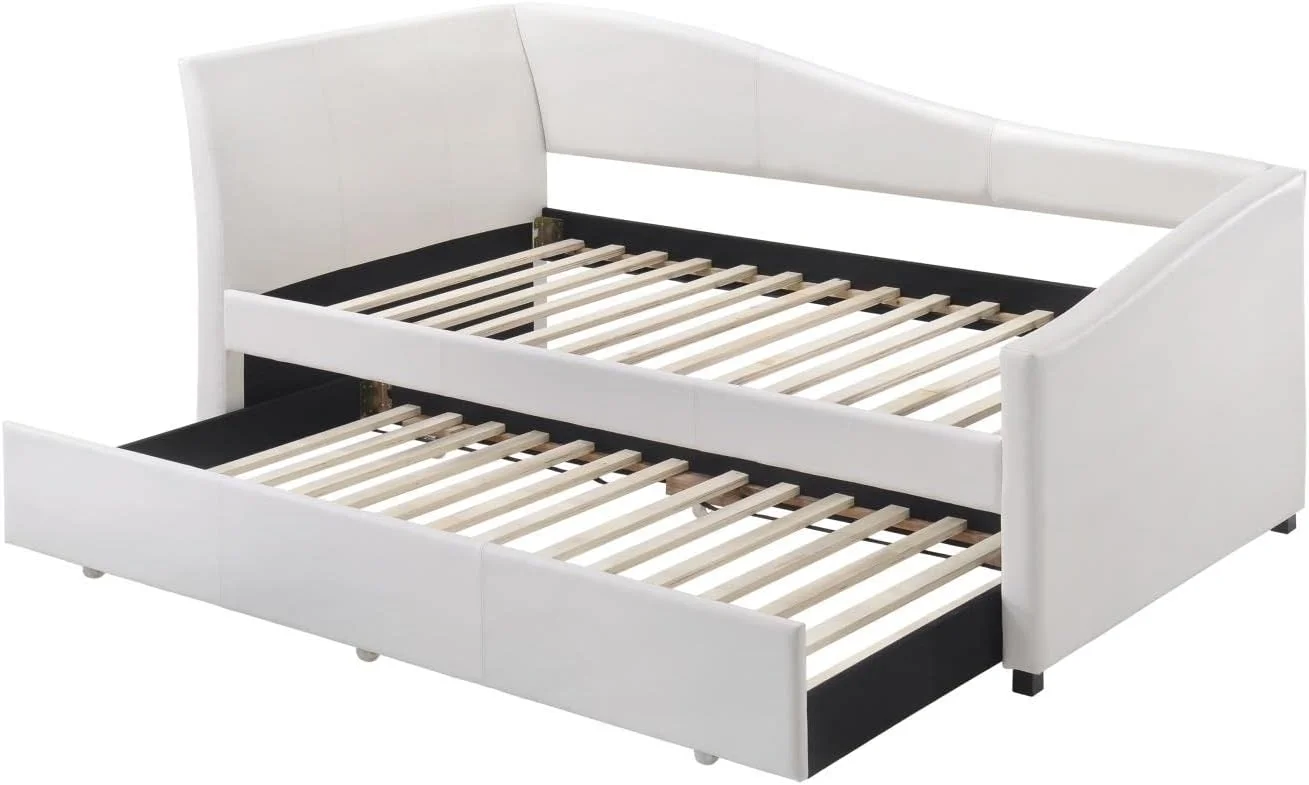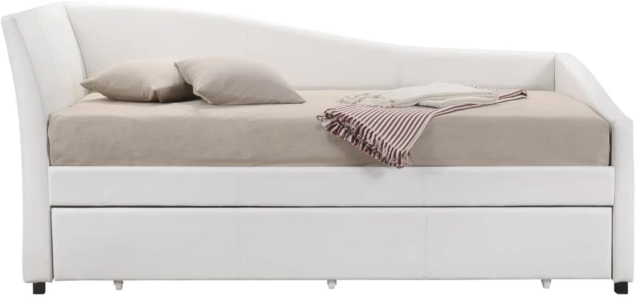Atlin Designs Contemporary Faux Leather Twin Daybed with Trundle in White