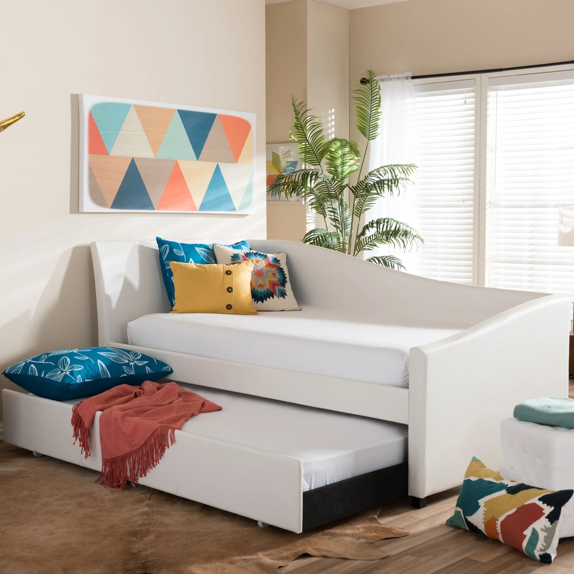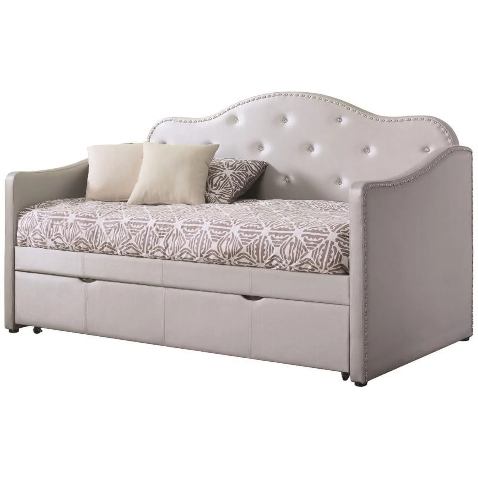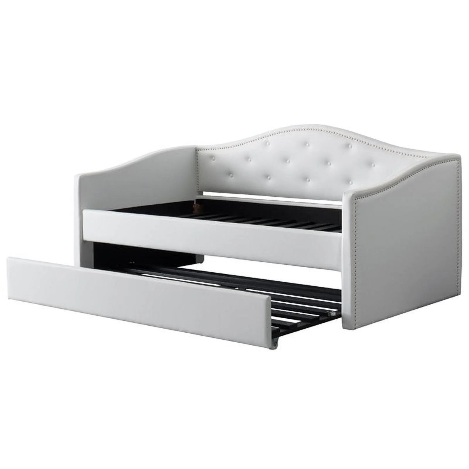 Atlin Designs Contemporary Faux Leather Twin Daybed with Trundle in White