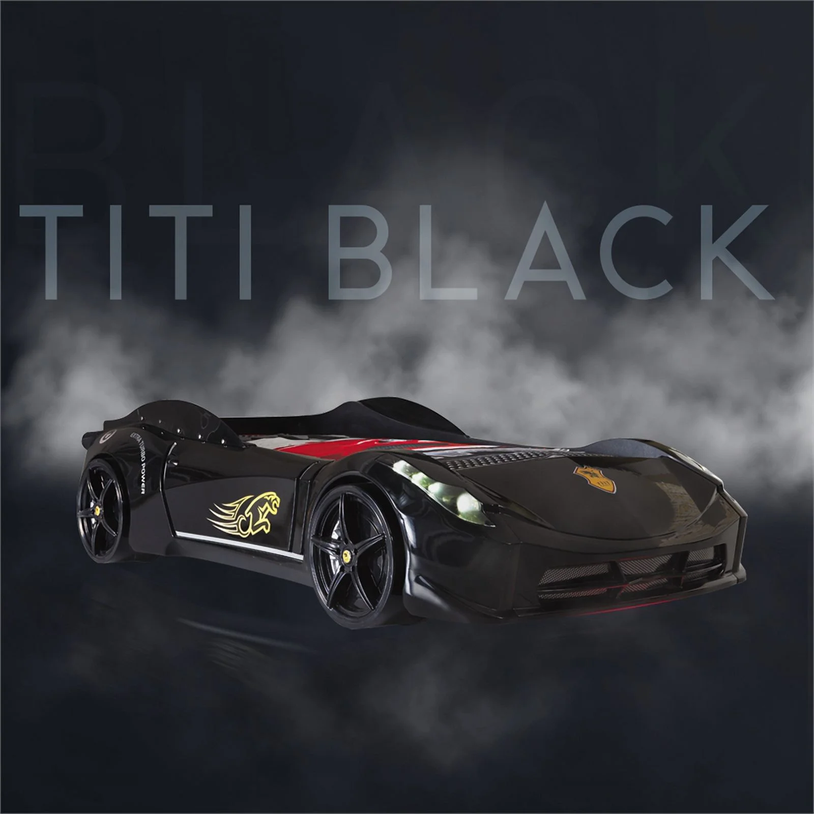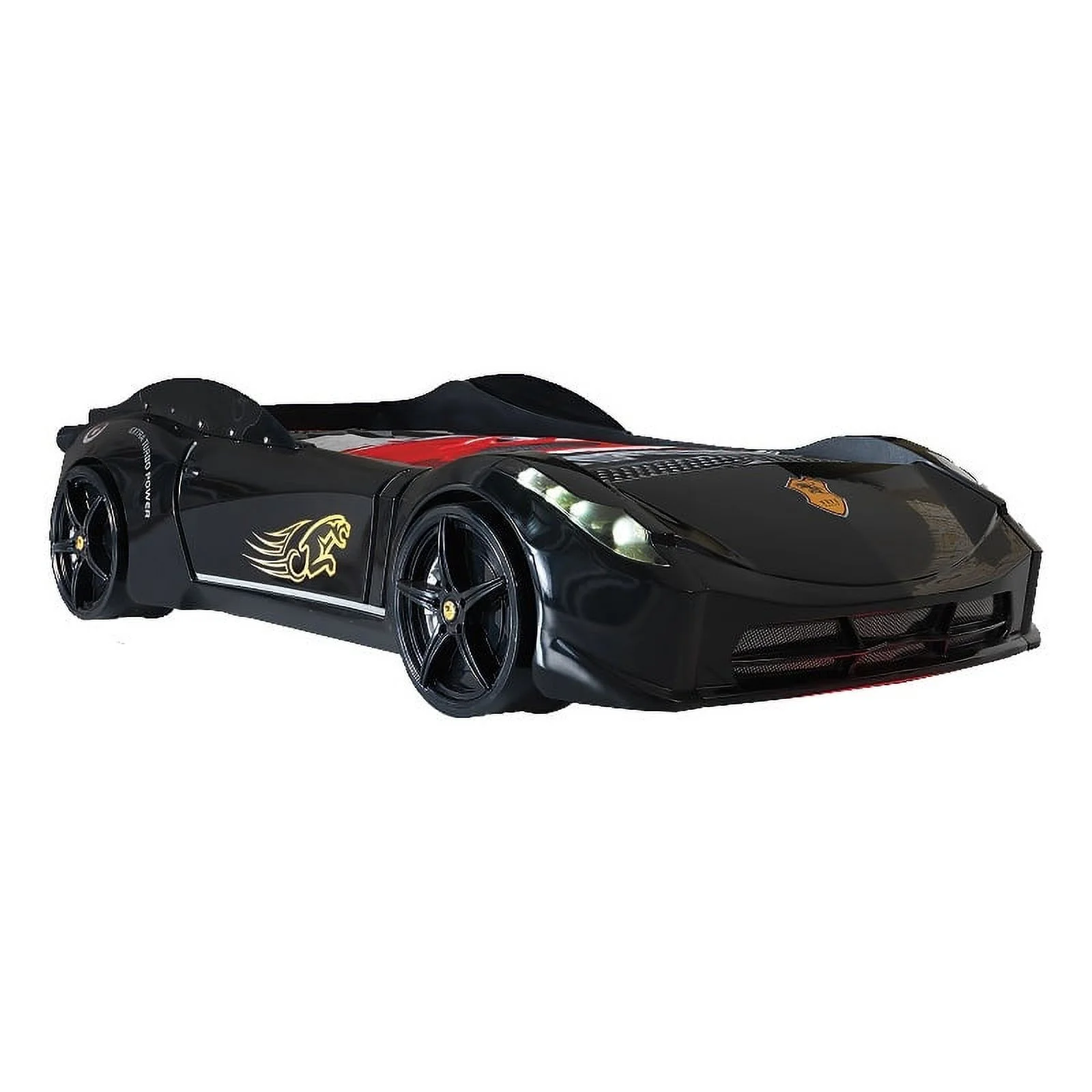 Titi Racer Modern Wood TT Twin Race Car Bed with Remote Control in Black