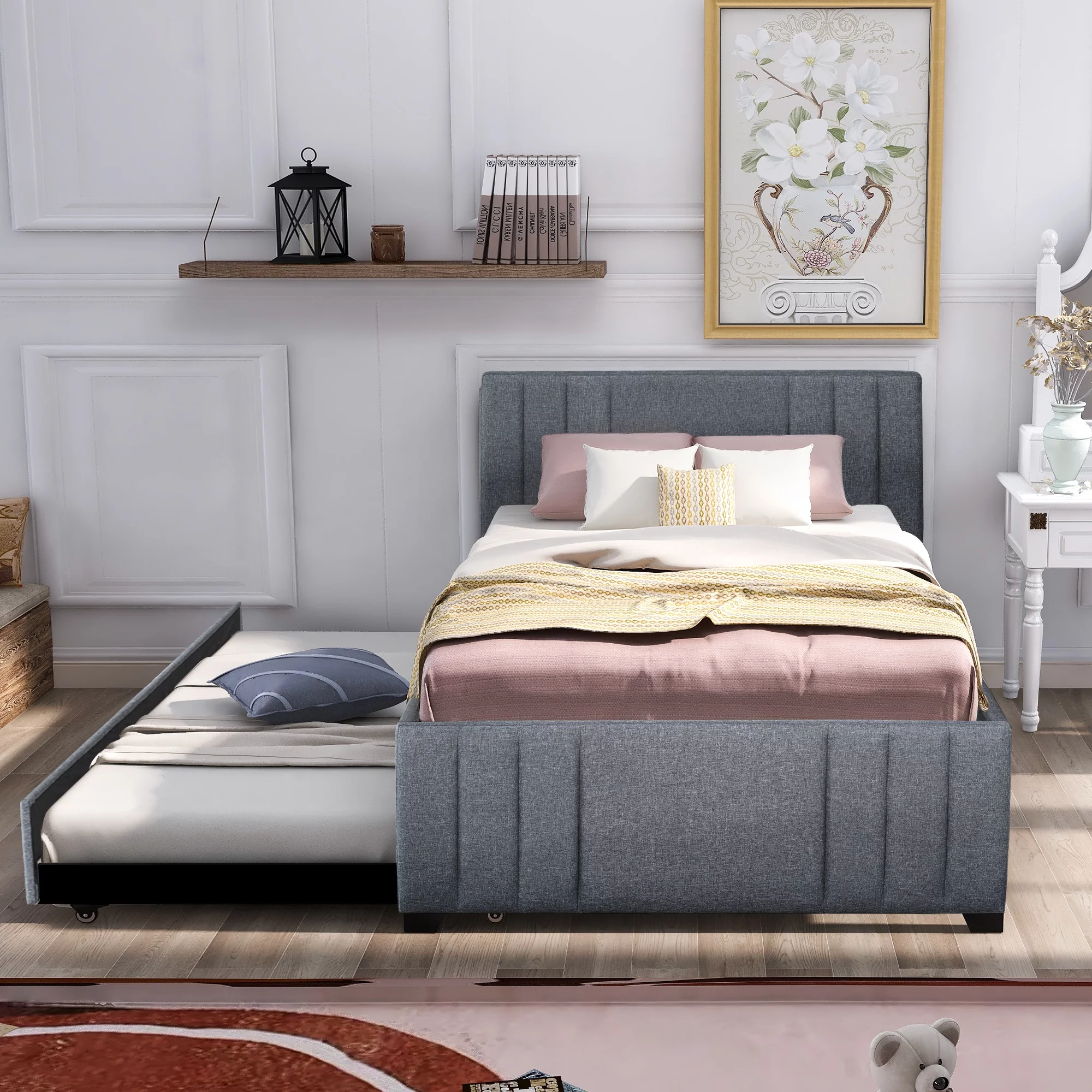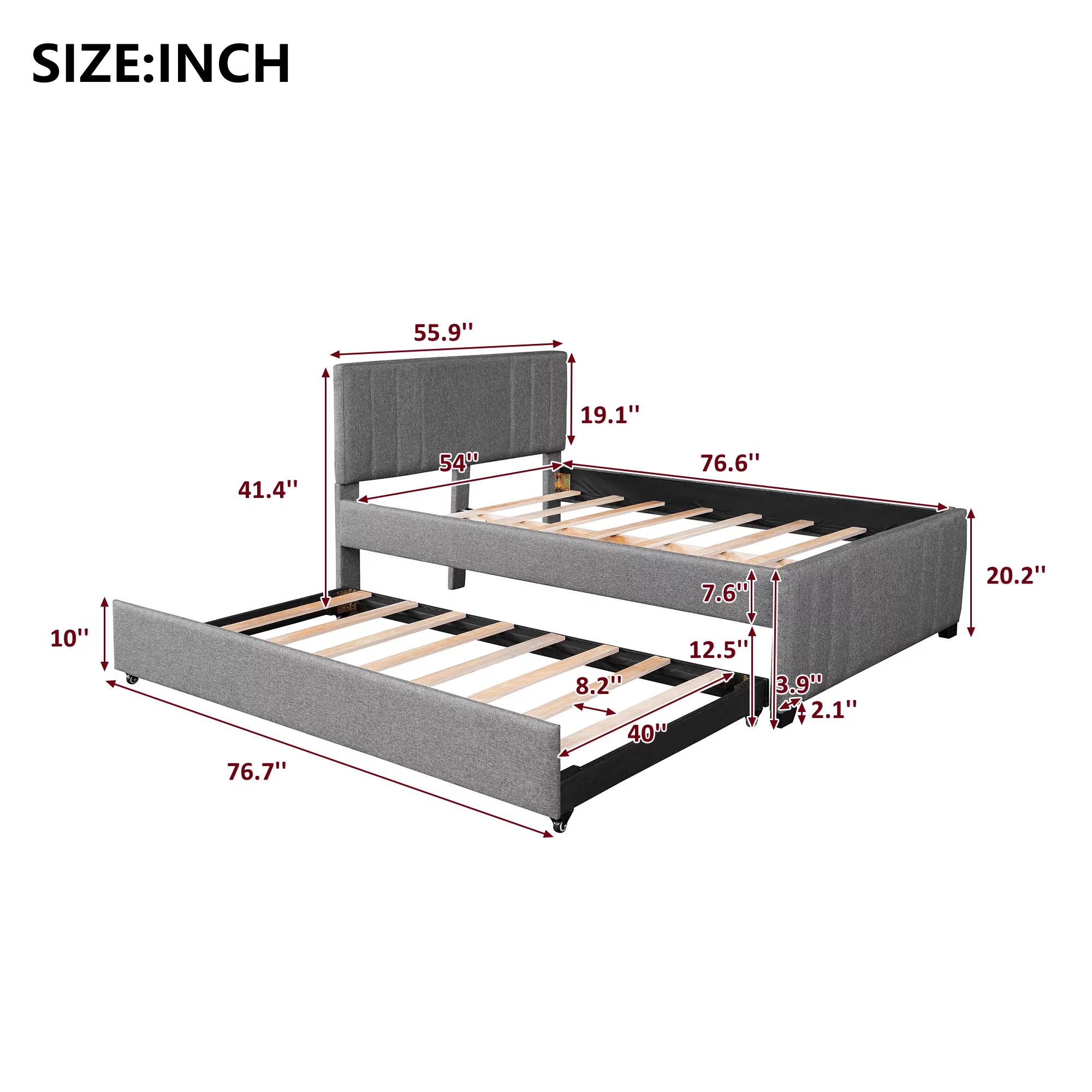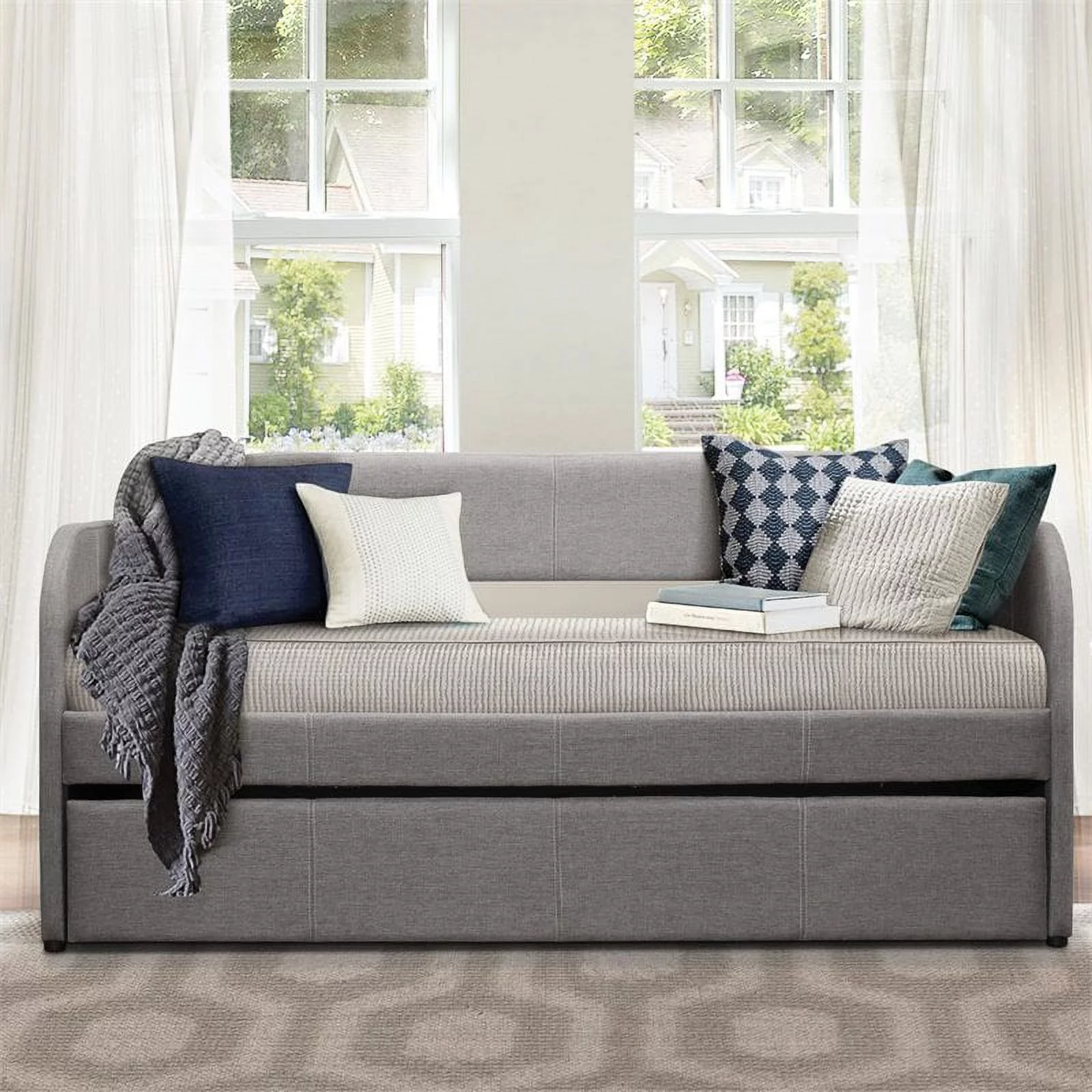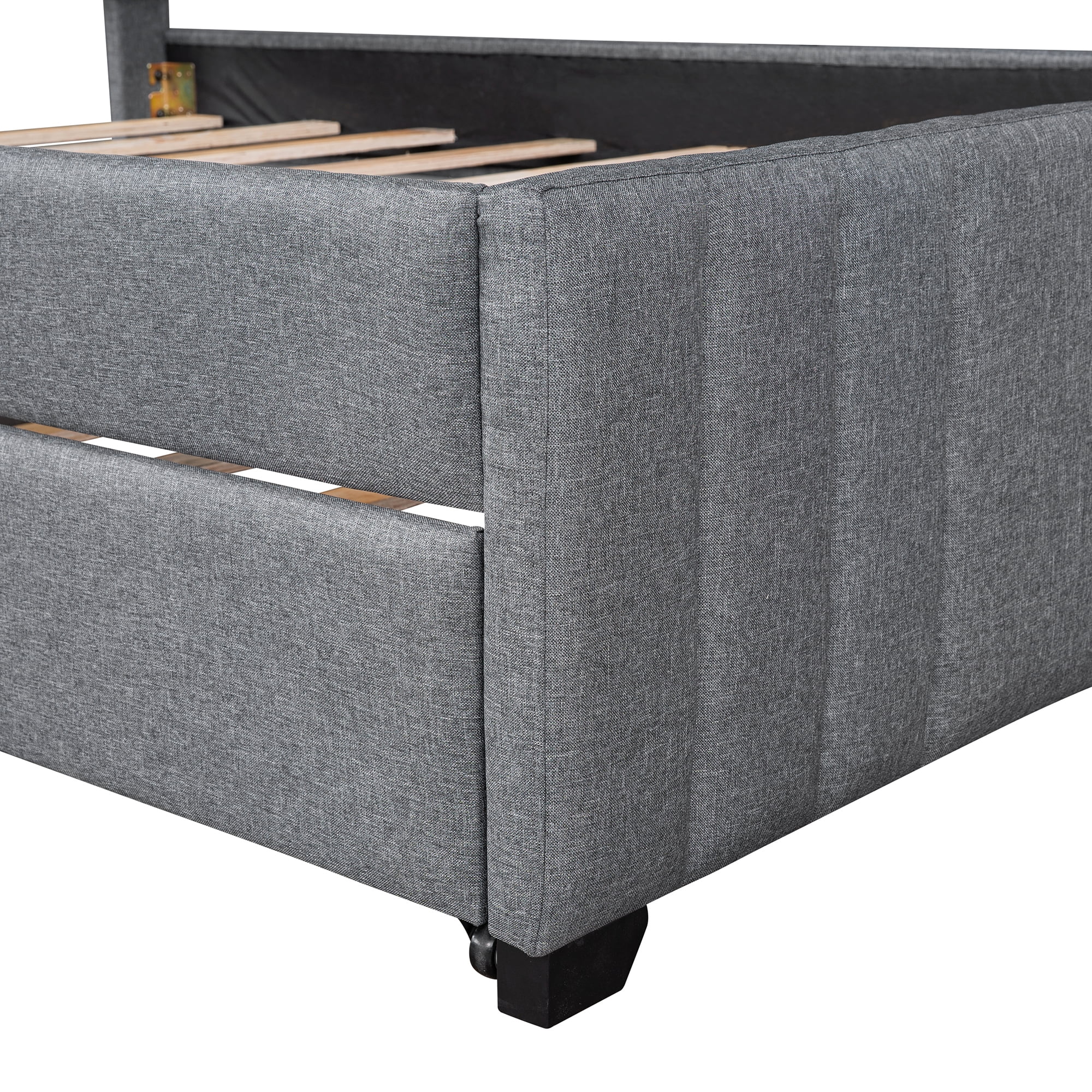Stonecroft Furniture Faux Leather Upholstered Twin Daybed with Trundle in Gray