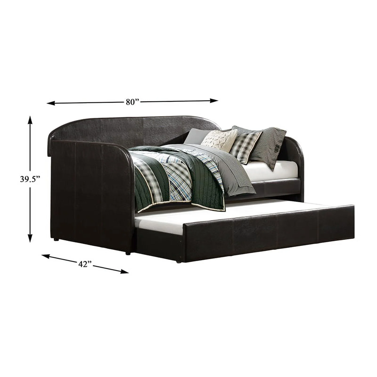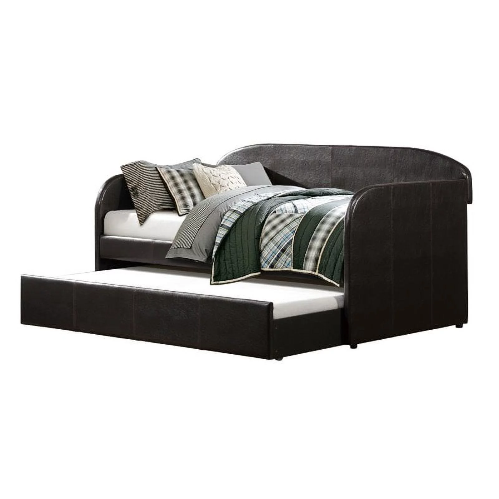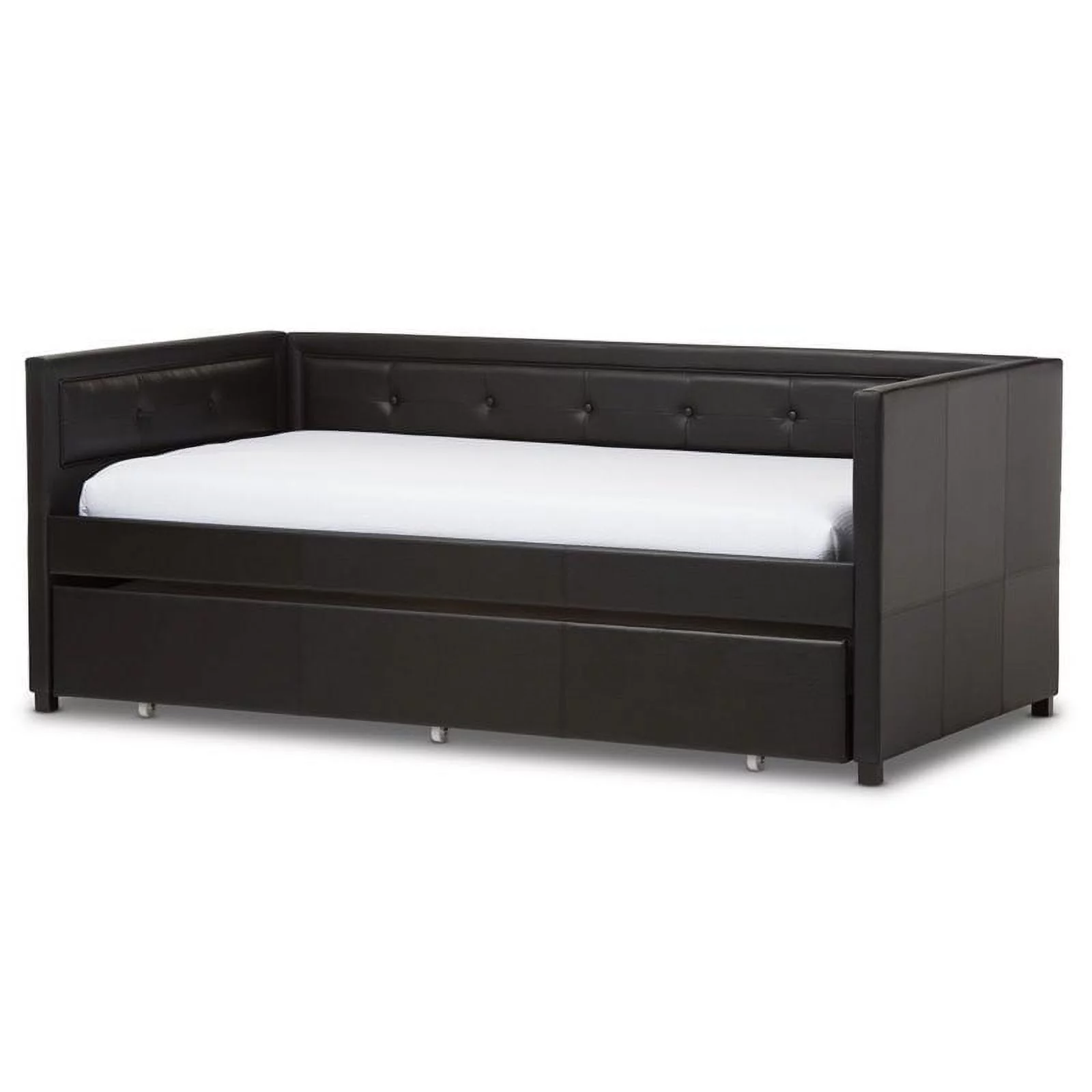 Lexiconhome Roland Faux Leather Upholstered Daybed with Trundle, Twin/Twin, Black