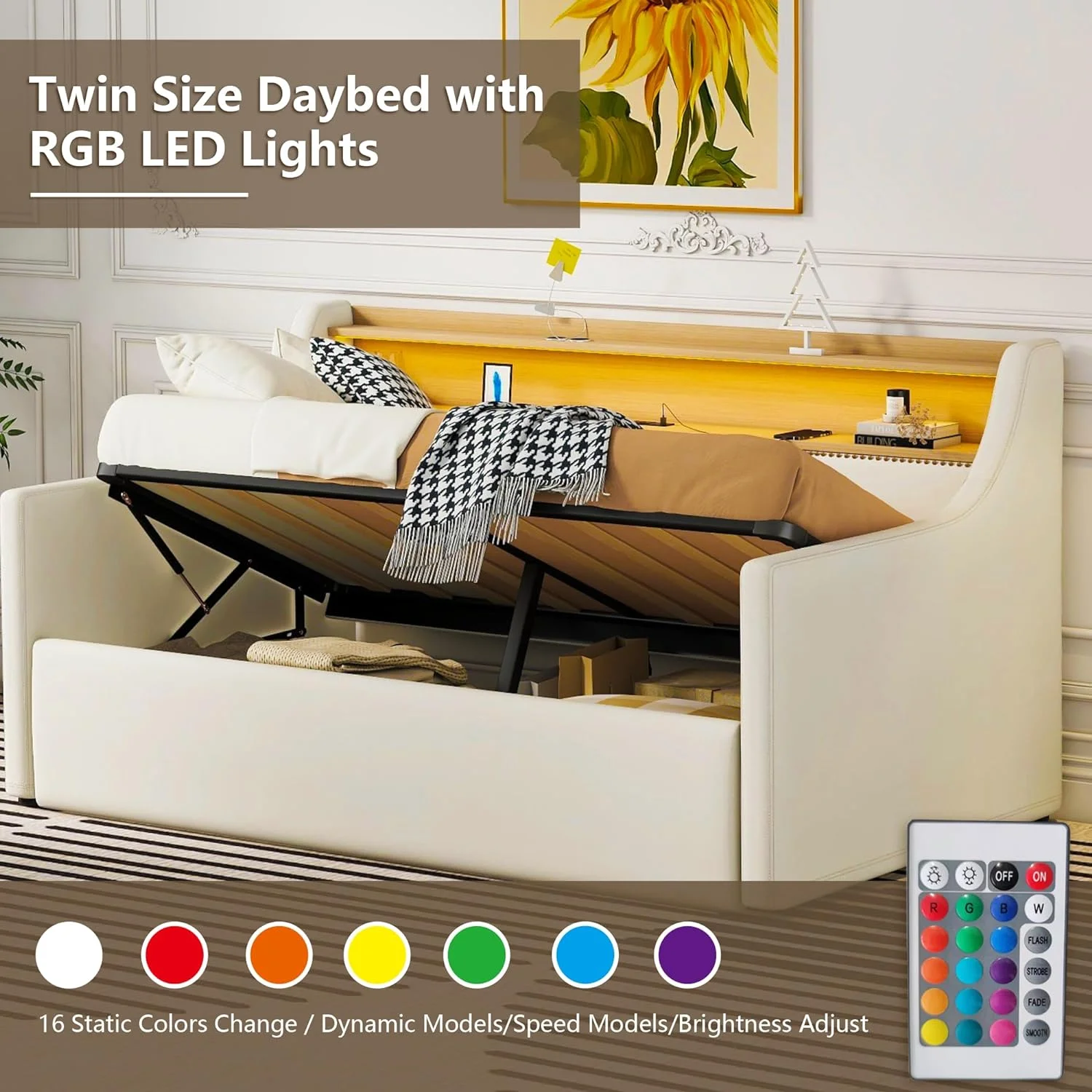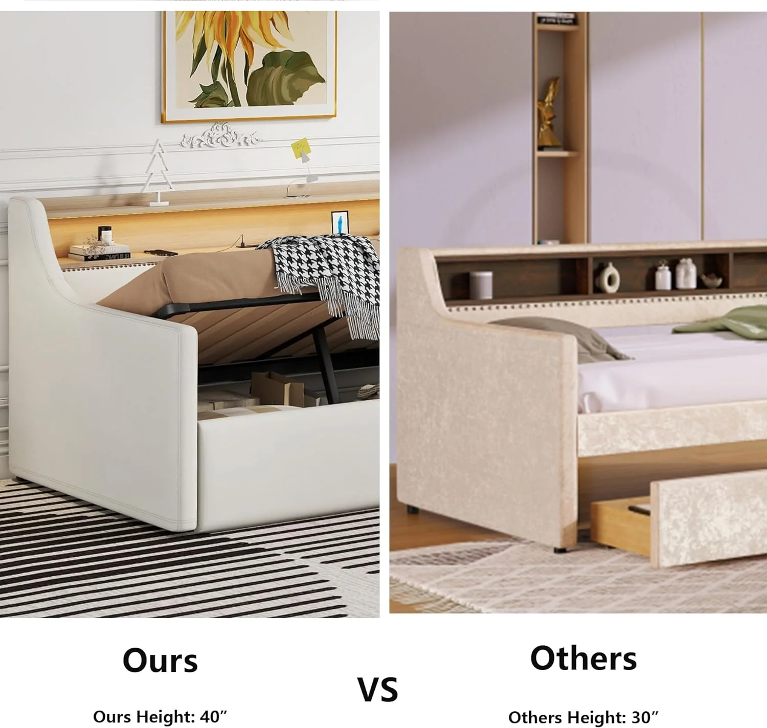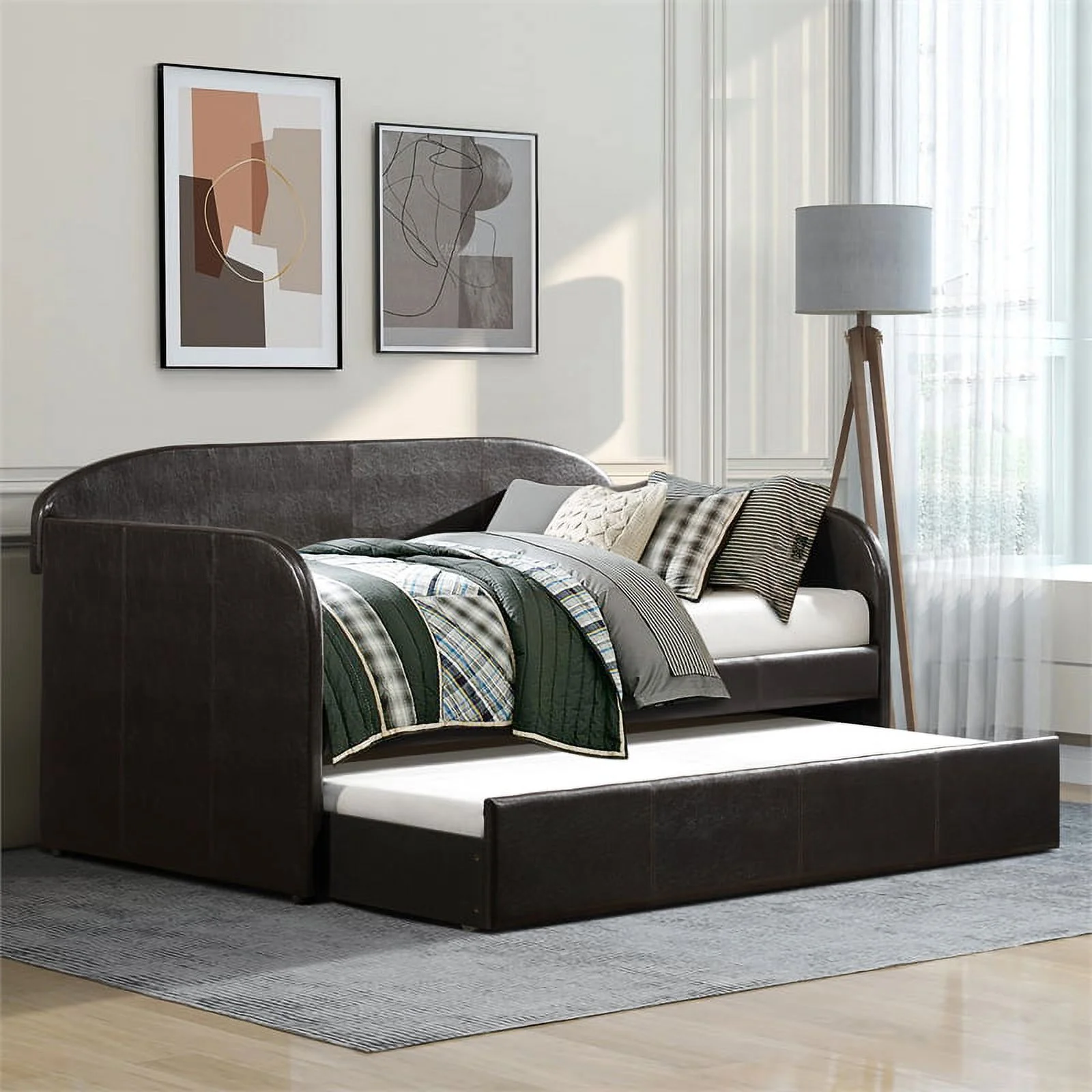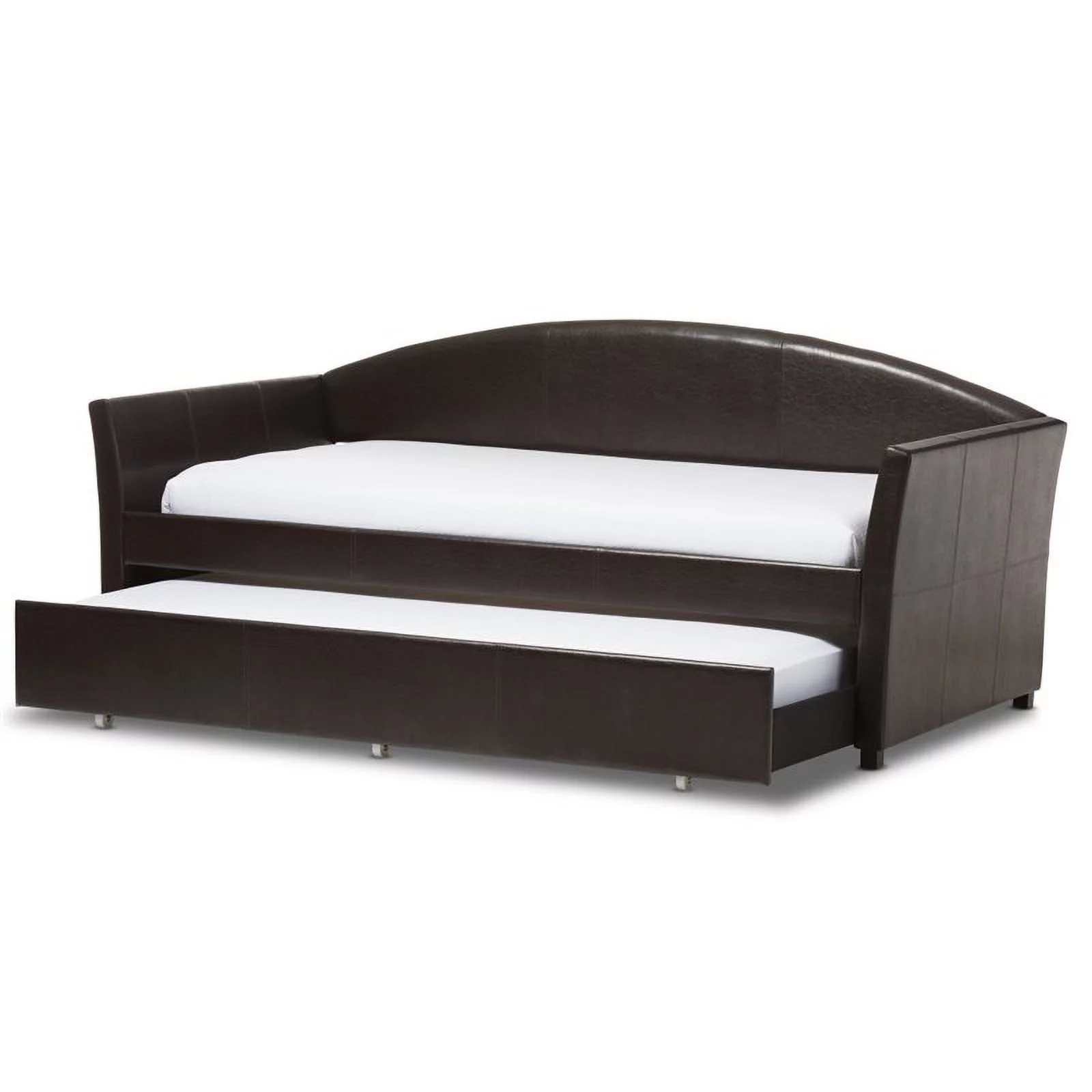Lexiconhome Roland Faux Leather Upholstered Daybed with Trundle, Twin/Twin, Black