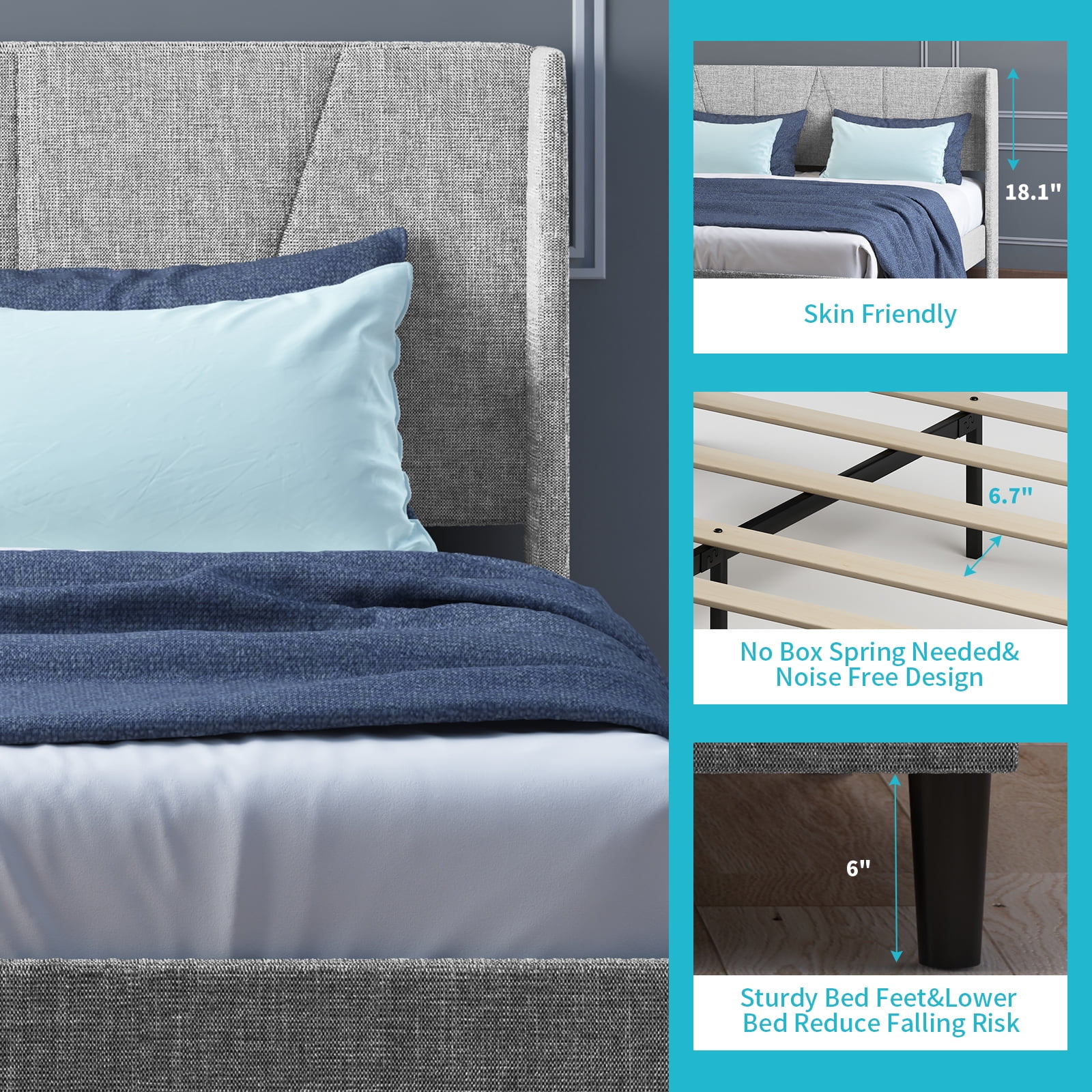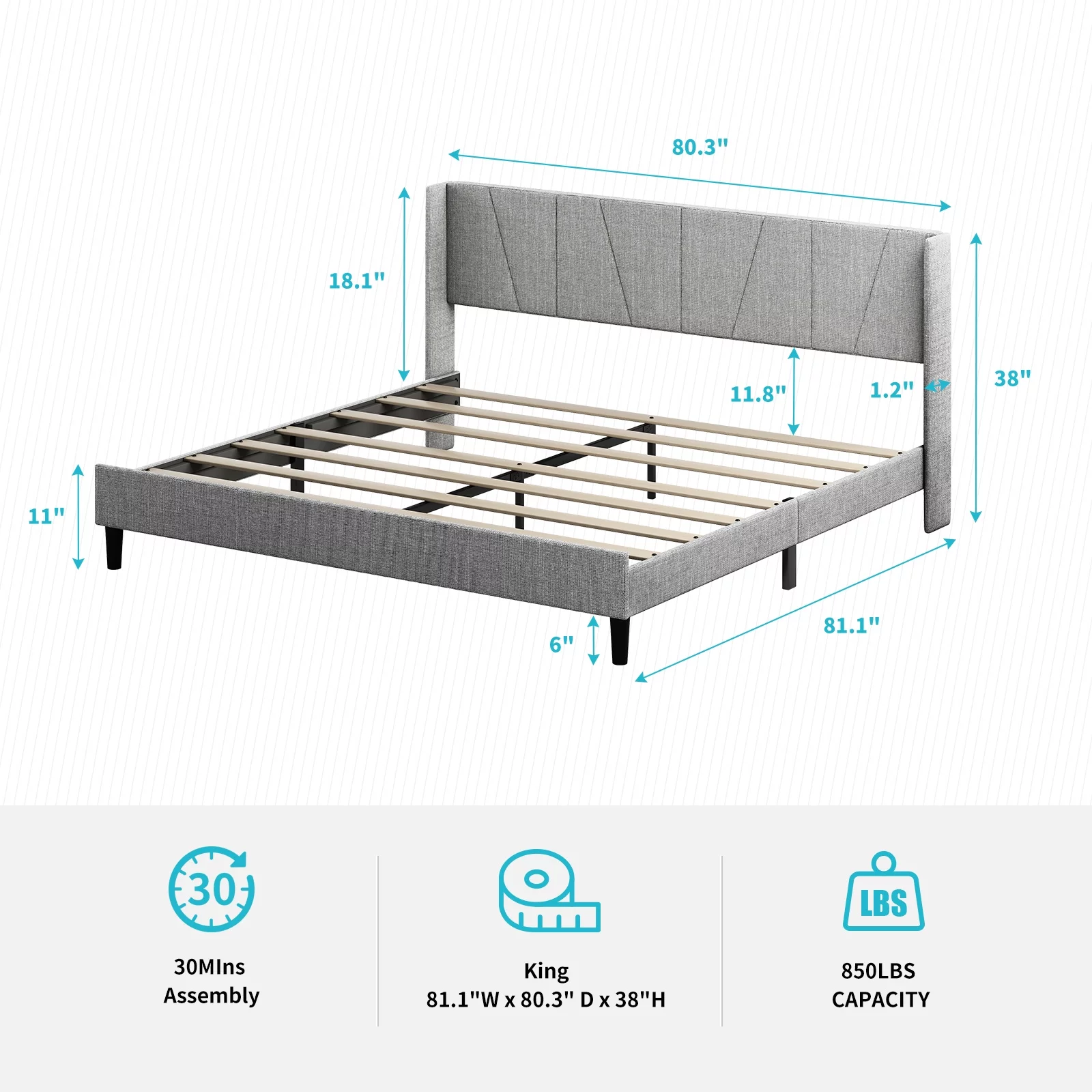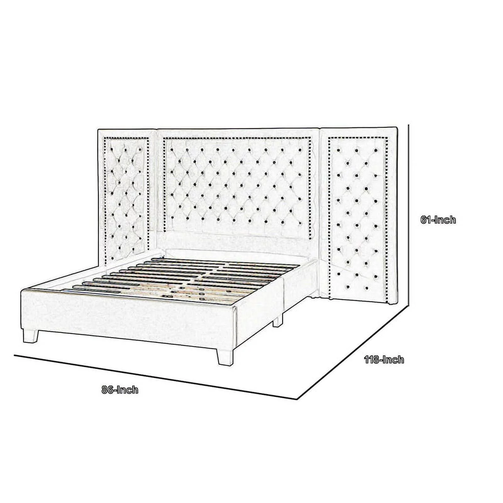 American Eagle Fabric Tufted Queen Platform Bed with Nailhead Trim in Gray