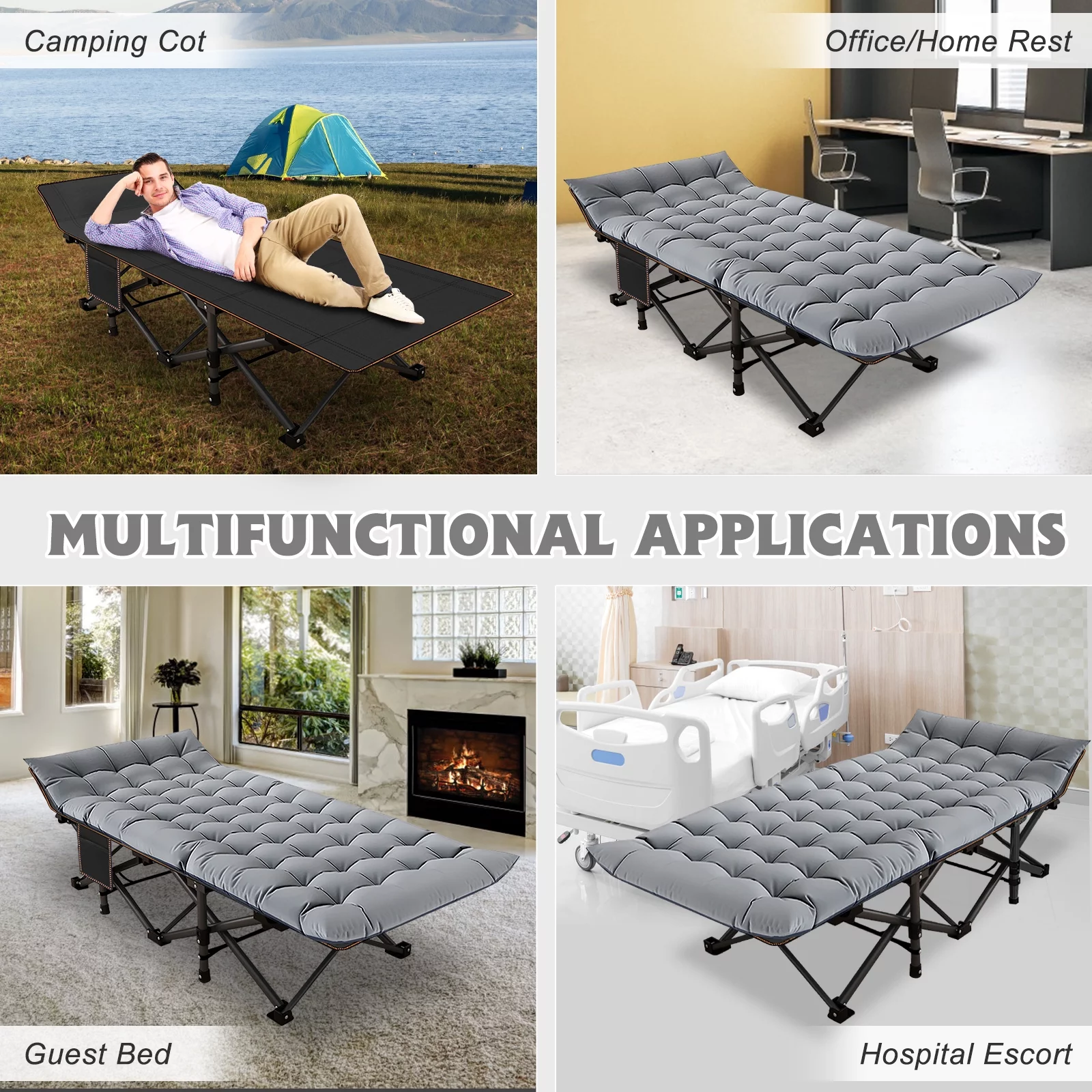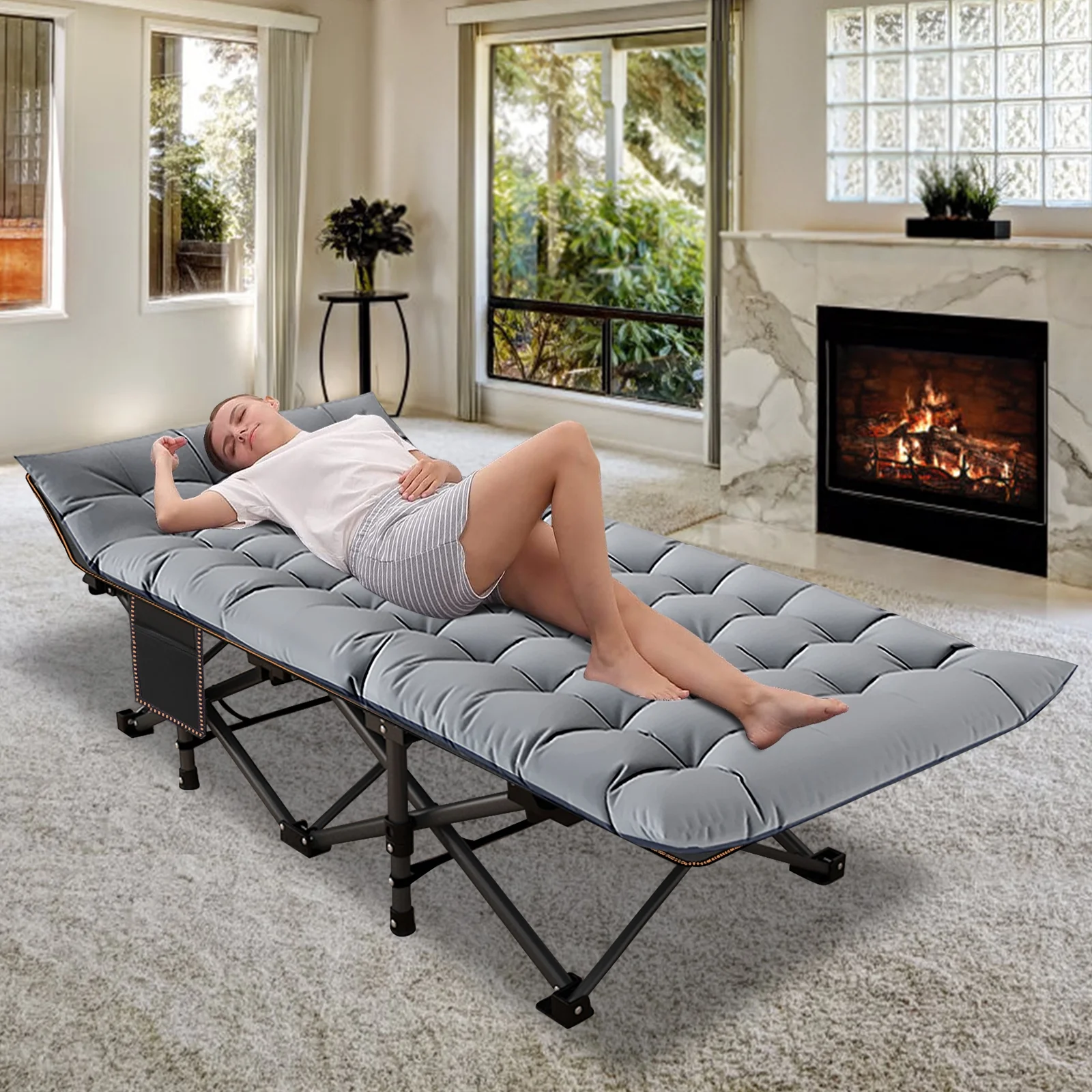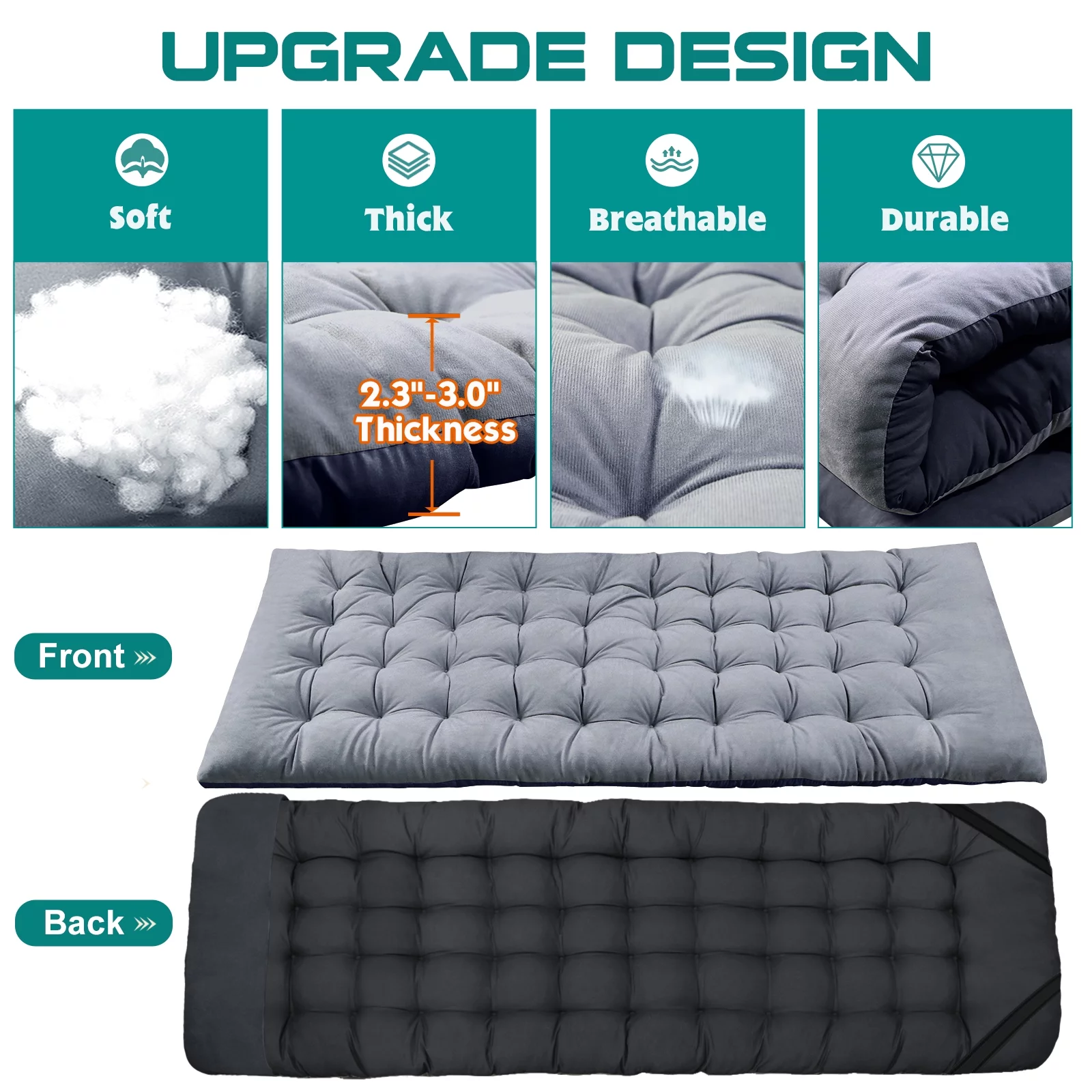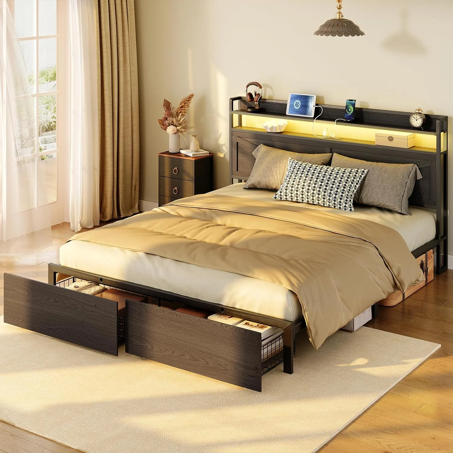 American Eagle Fabric Tufted Queen Platform Bed with Nailhead Trim in Gray
