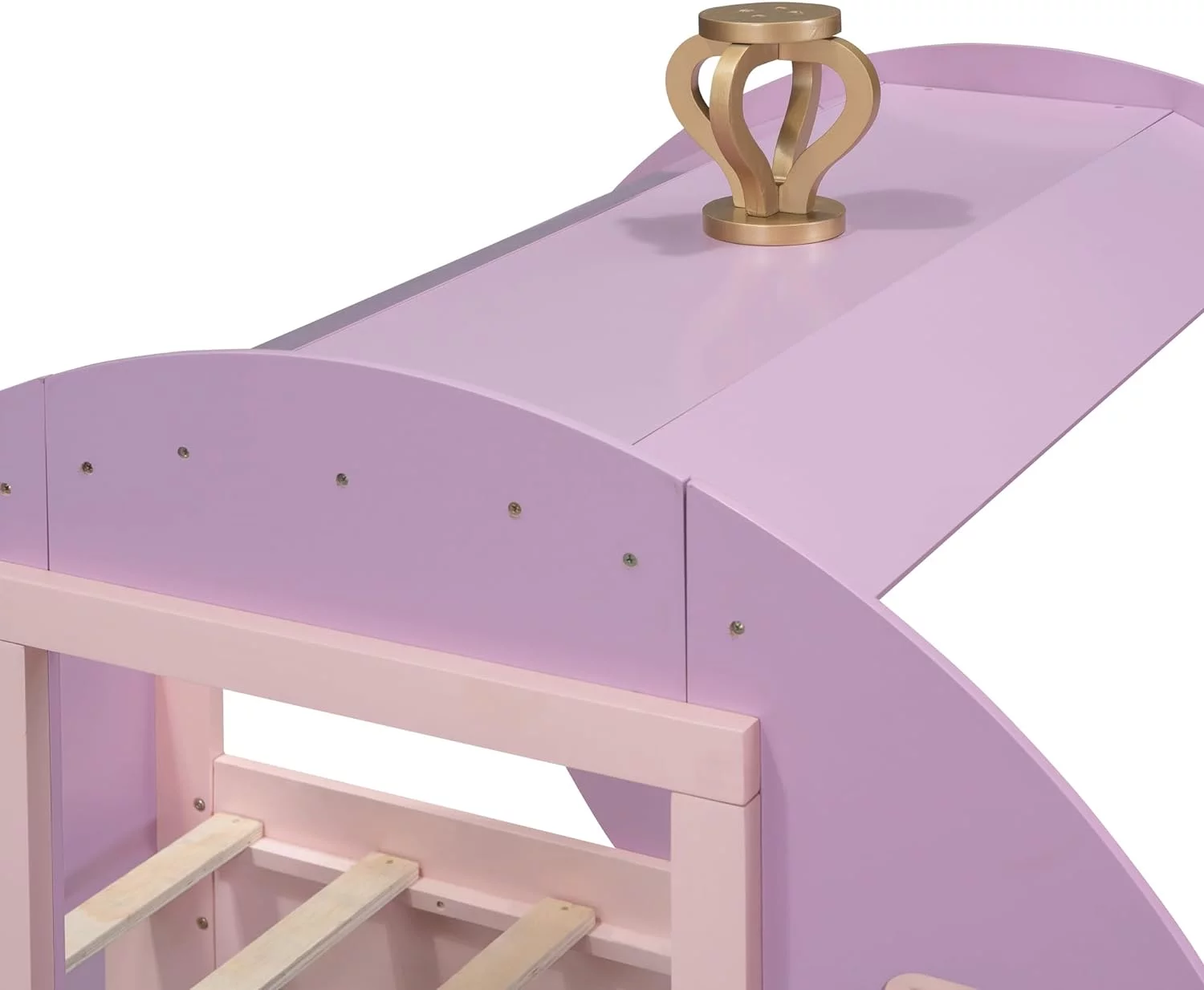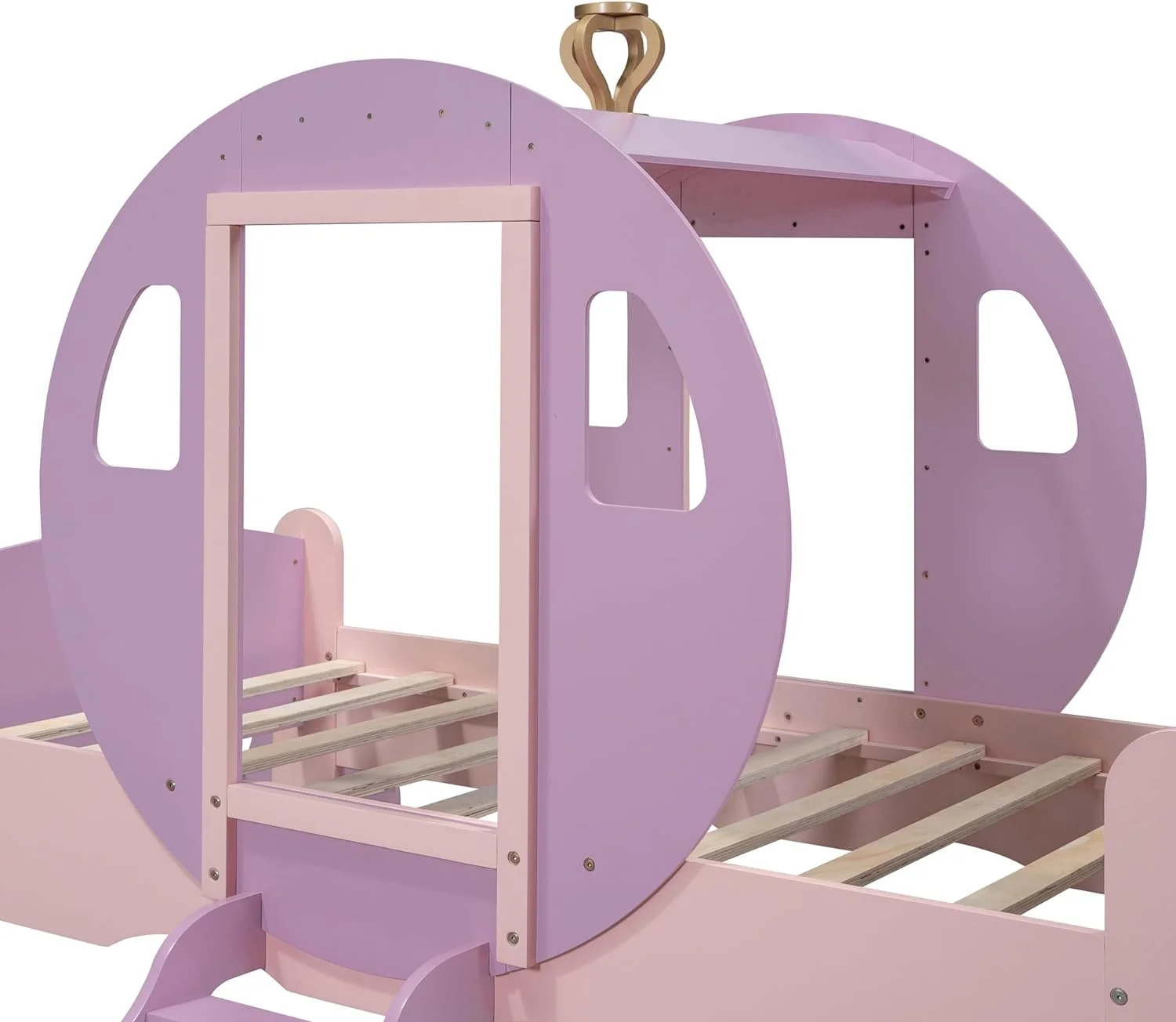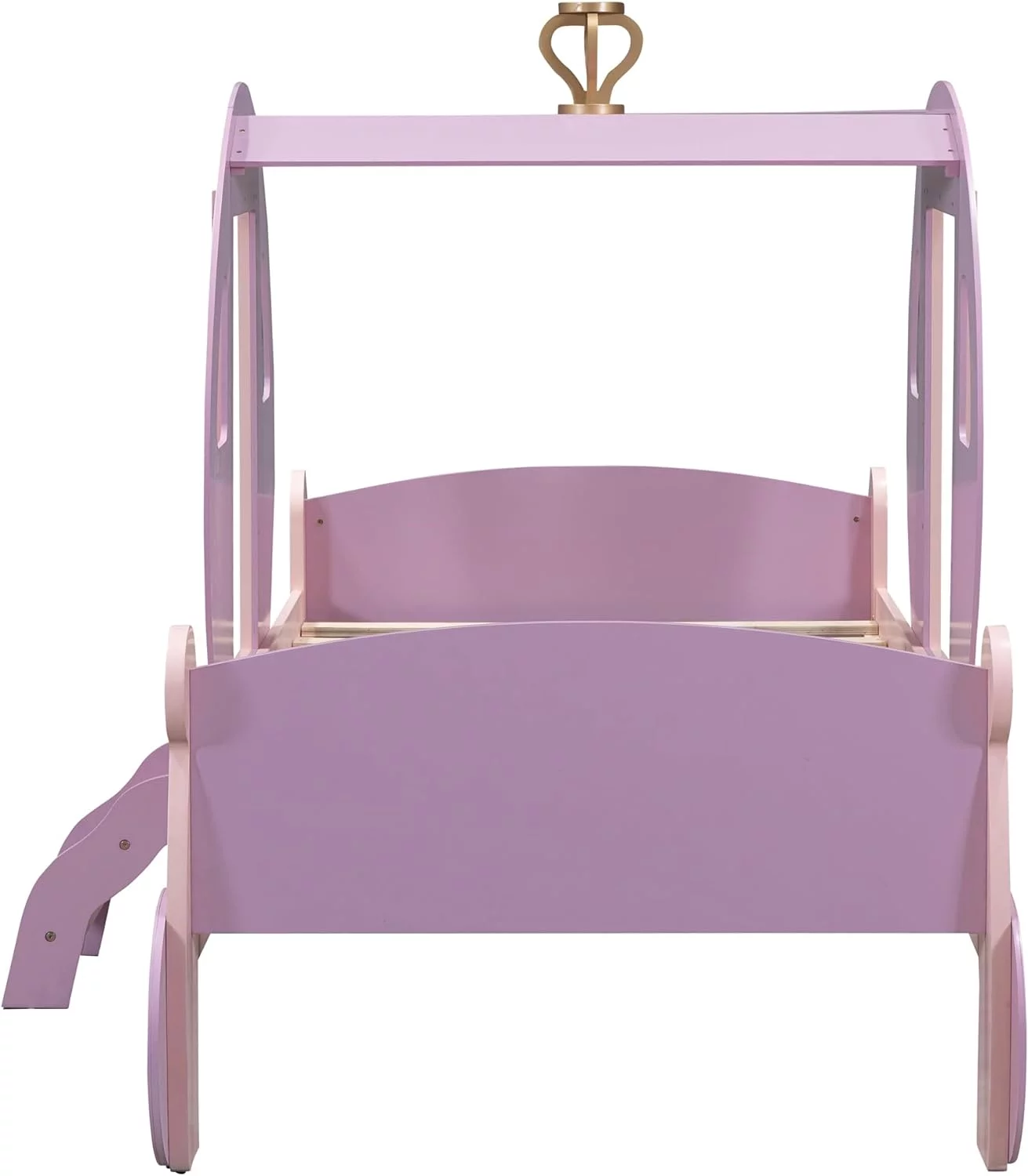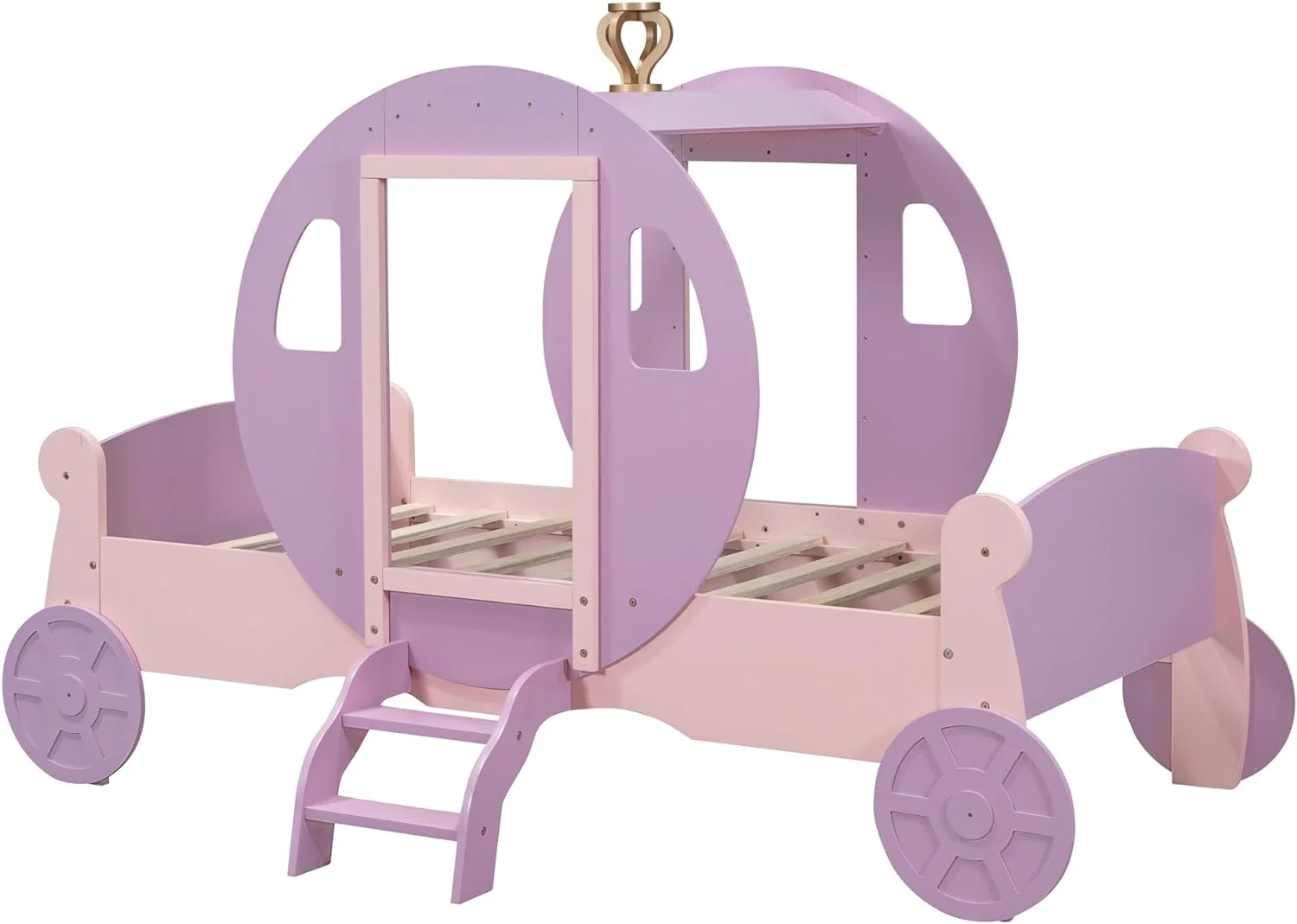 Size Carriage Bed With Crow, Wood Platform Car Bed Frame With Stair, Purple+