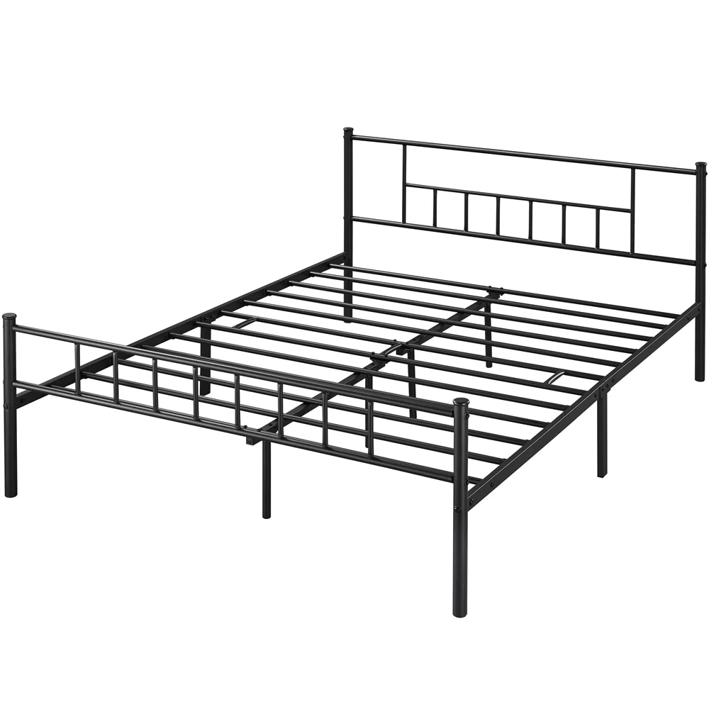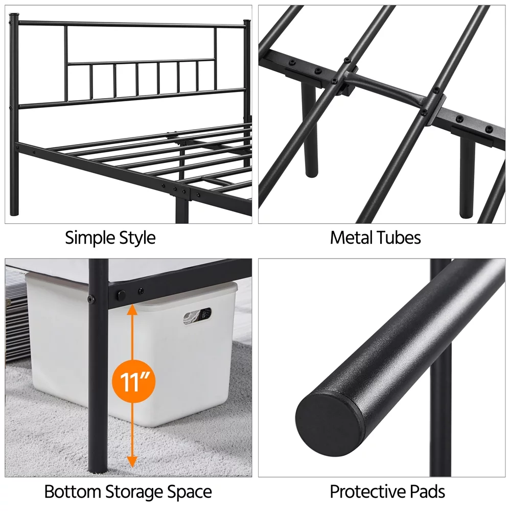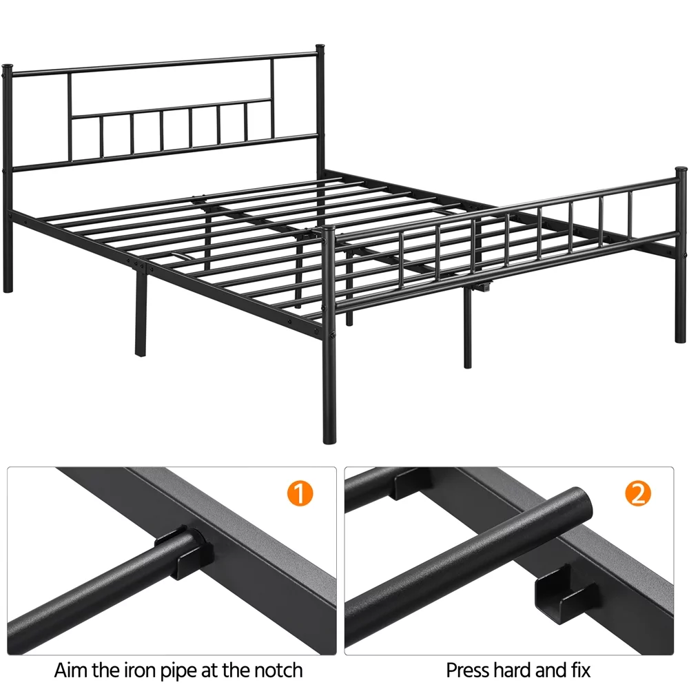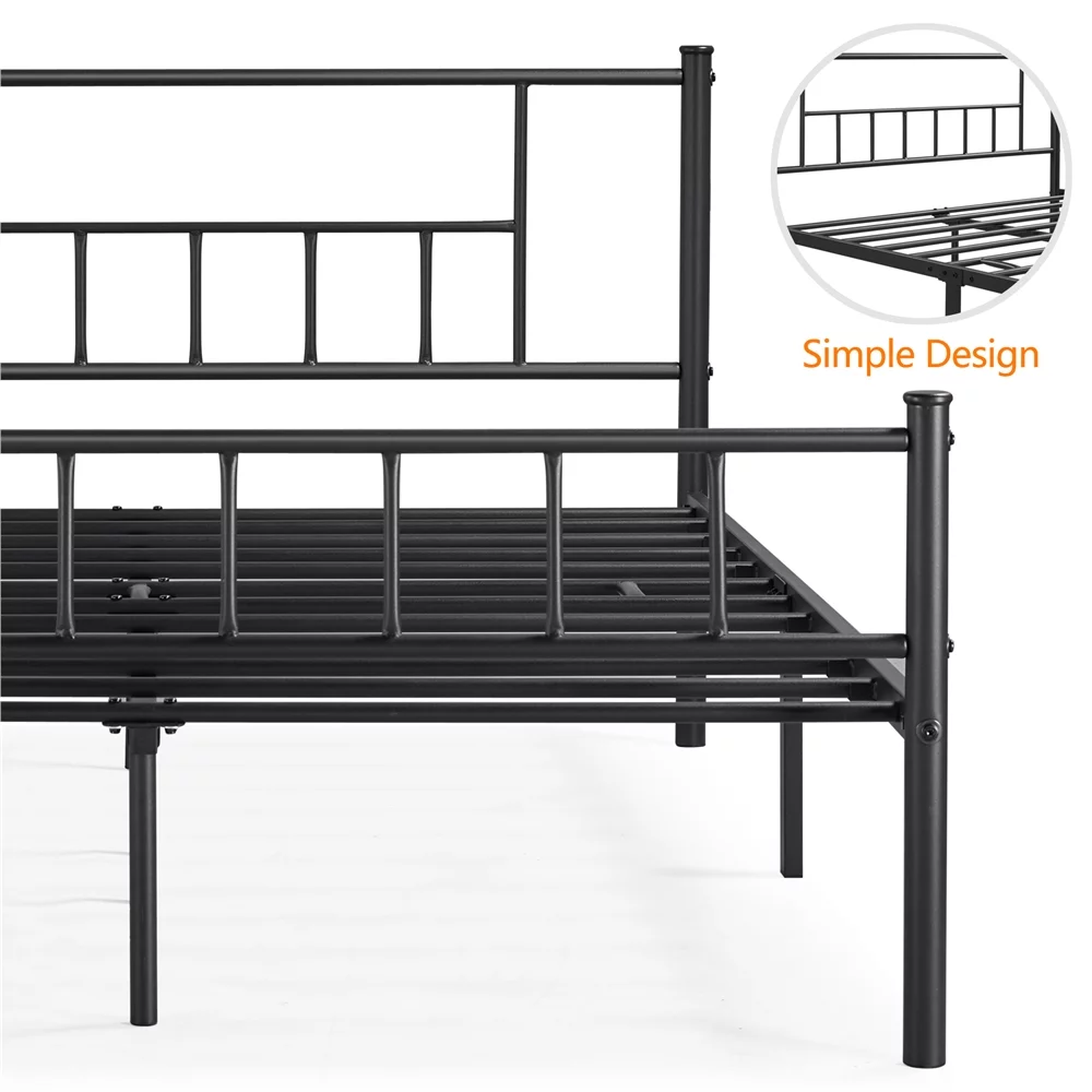 SMILE MART Modern Spindle Headboard & Footboard Metal Queen Bed, Black