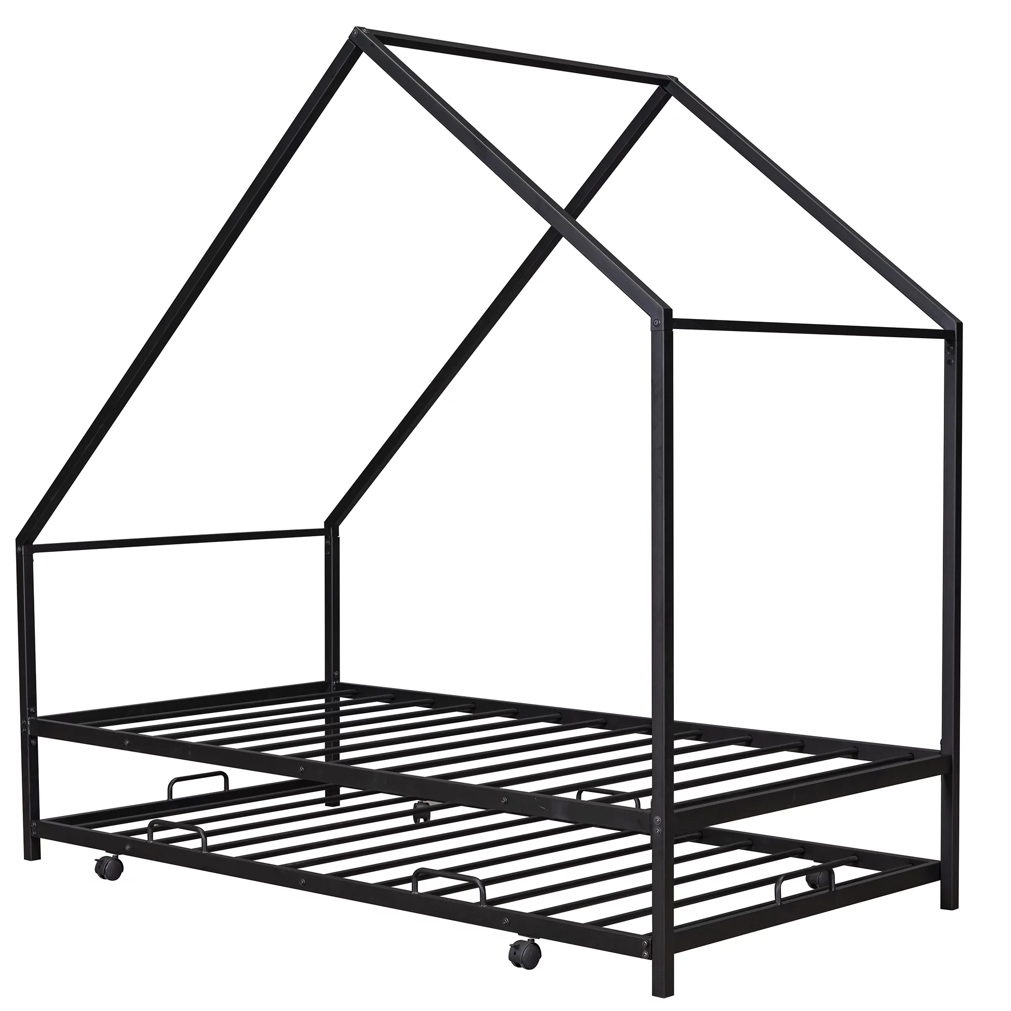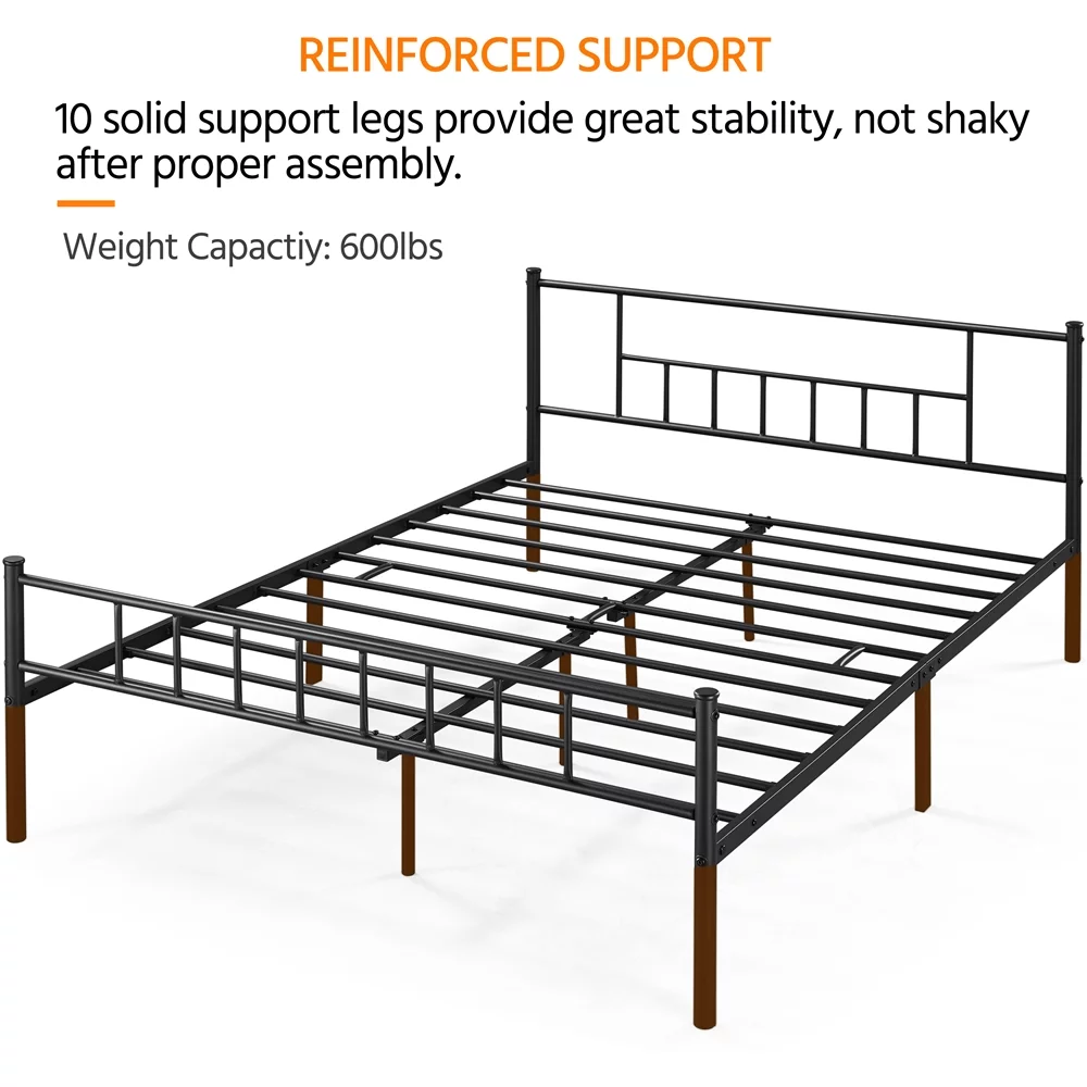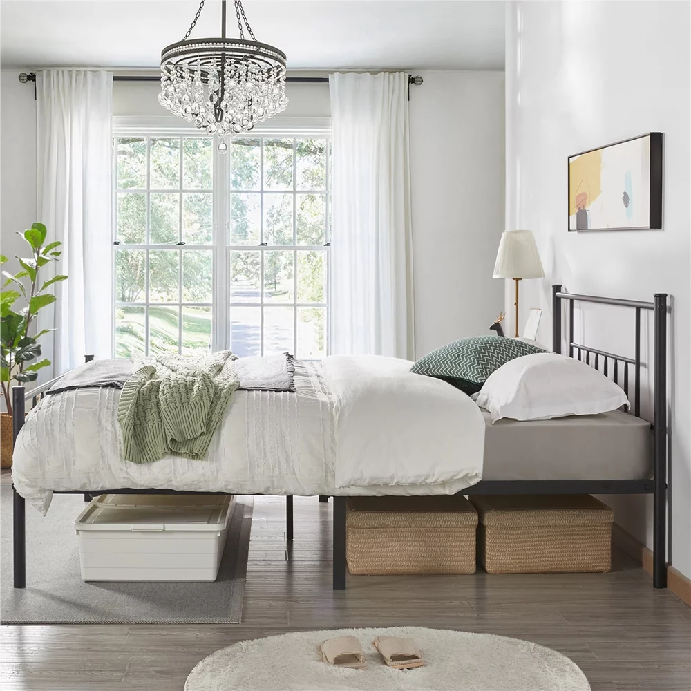 SMILE MART Modern Spindle Headboard & Footboard Metal Queen Bed, Black