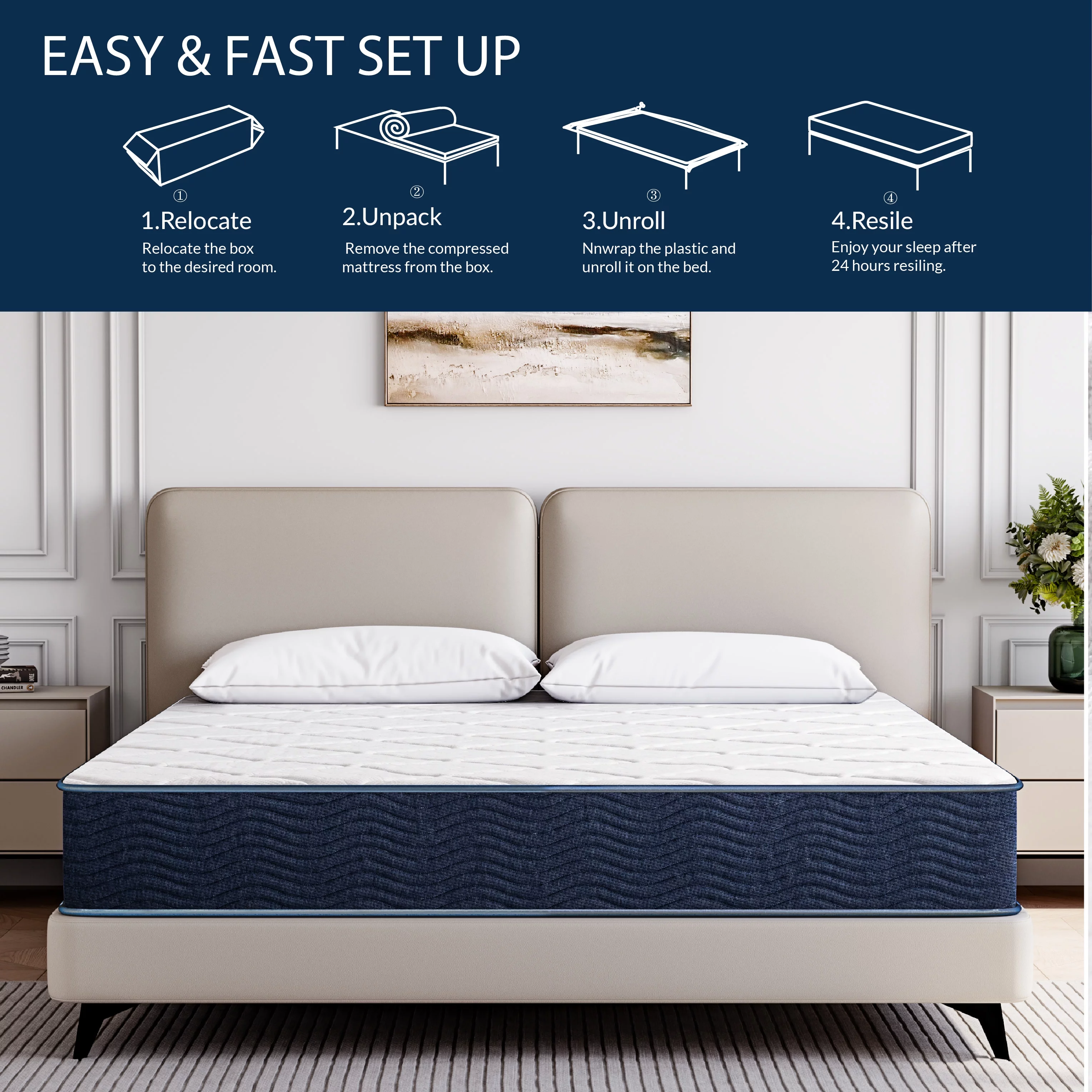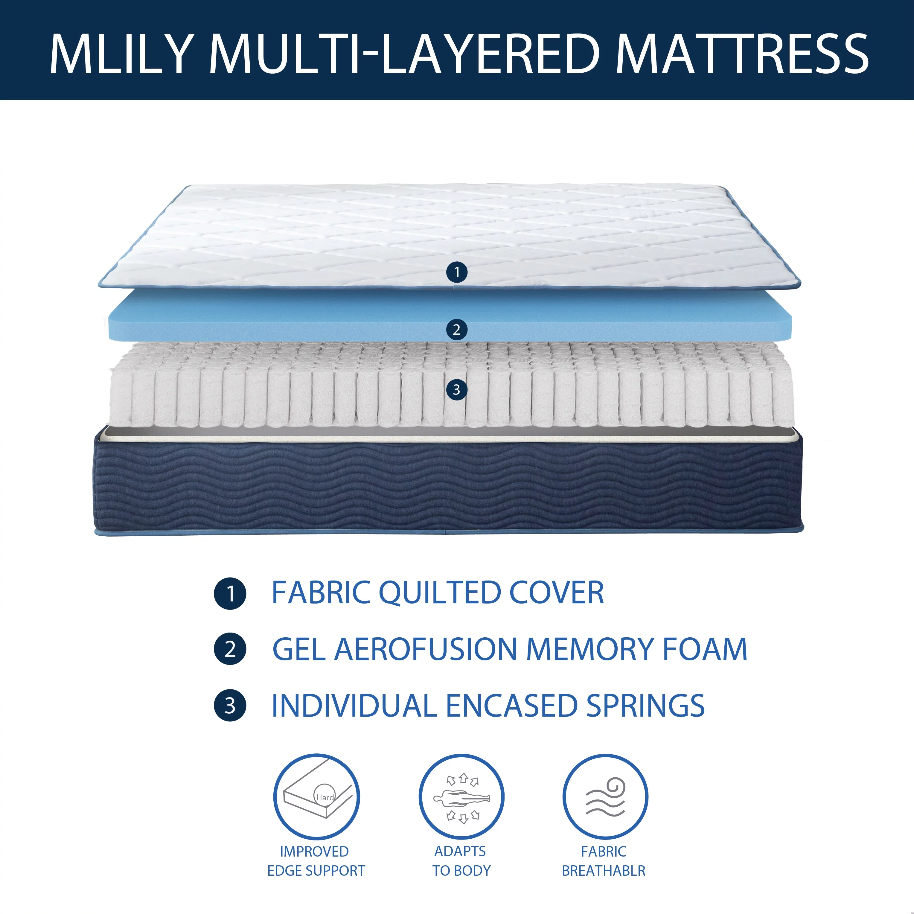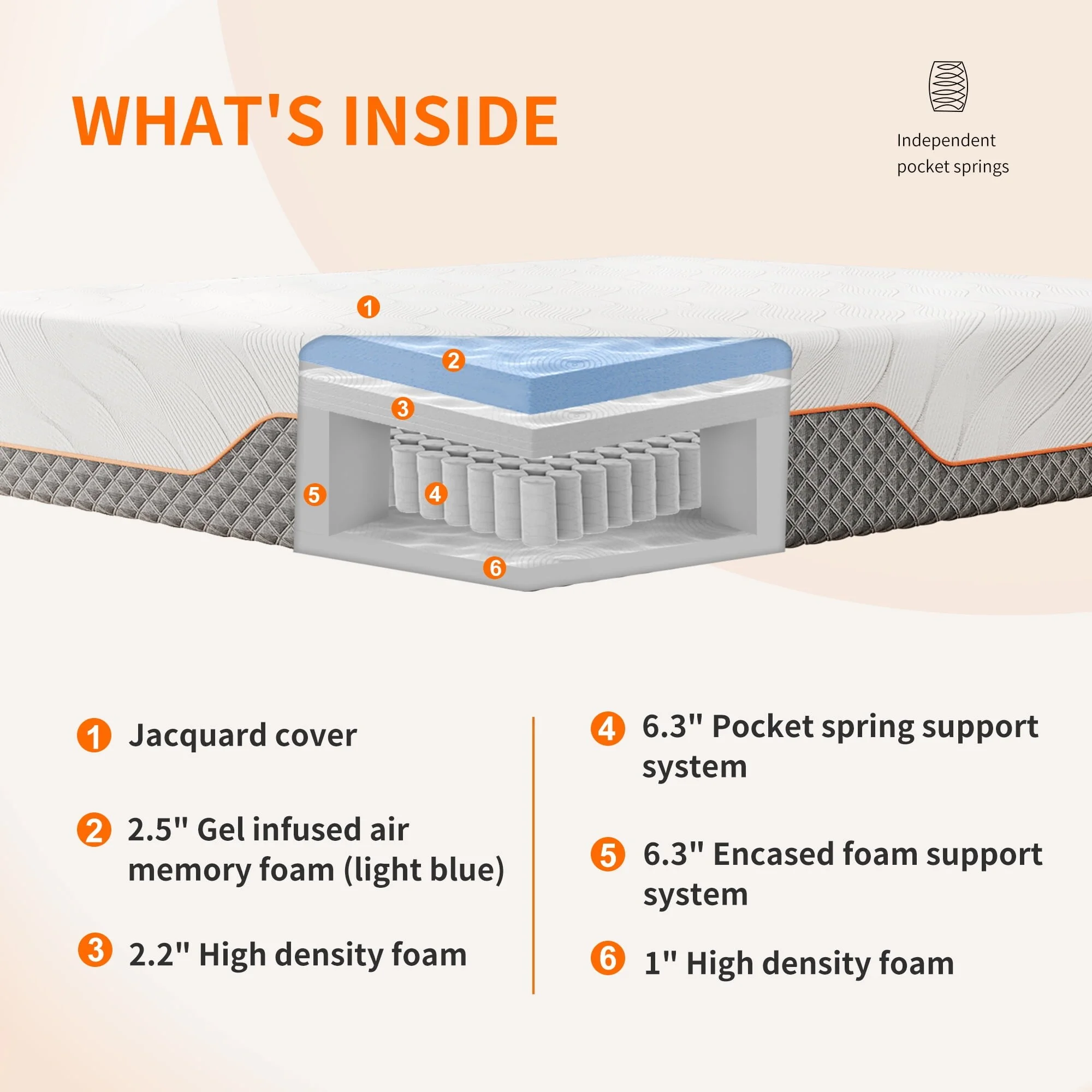 14 inch Queen Mattresses, Pocket Spring Hybrid Mattress with Gel Memory Foam for Cool Sleep,Medium Firm