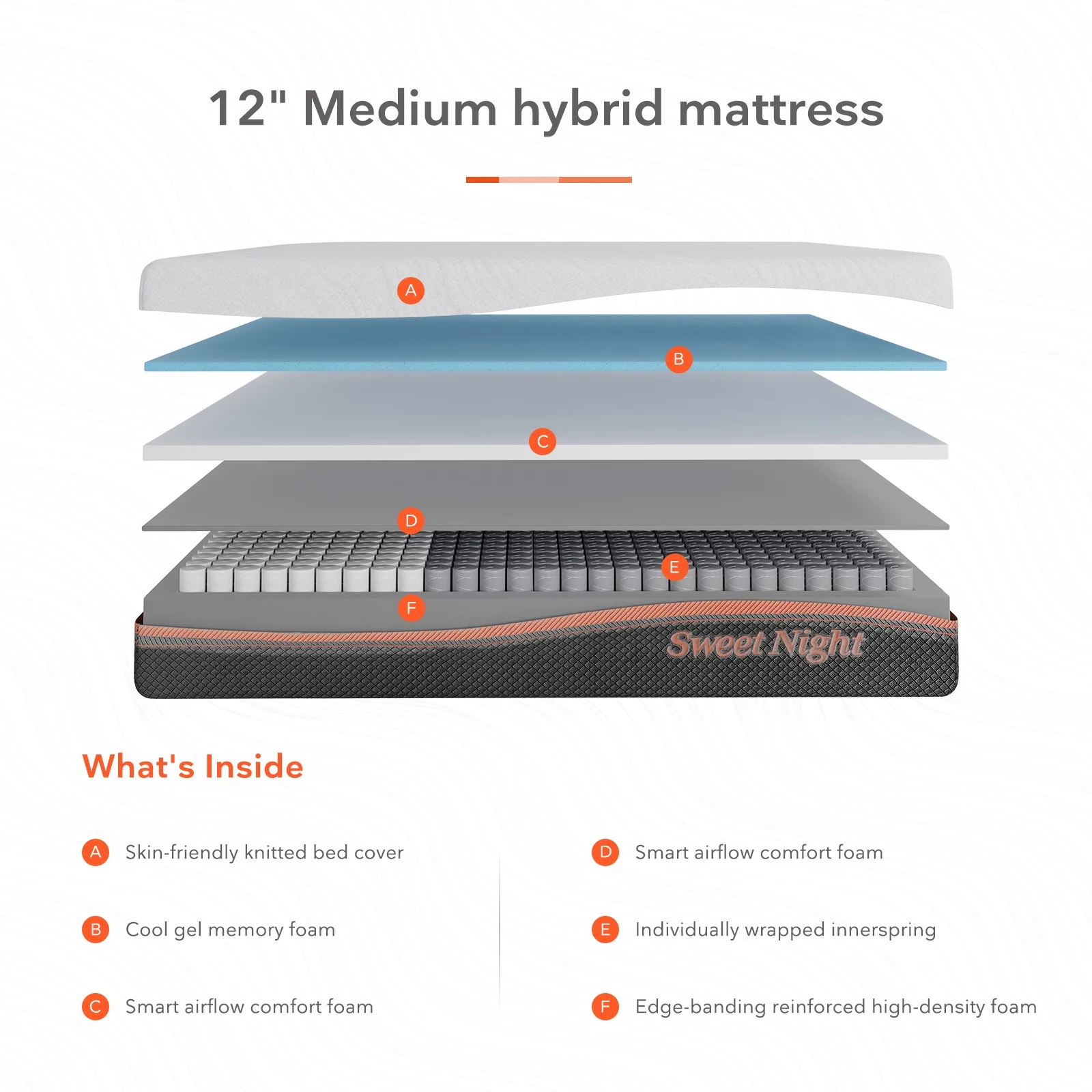 Queen Mattress, 12 inch Hybrid Mattress Gel Memory Foam Mattress in a Box, Medium Firm