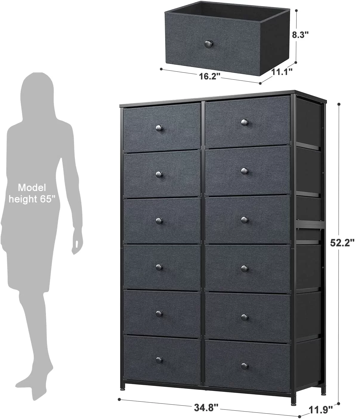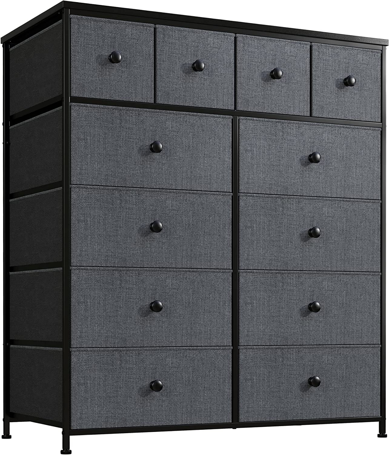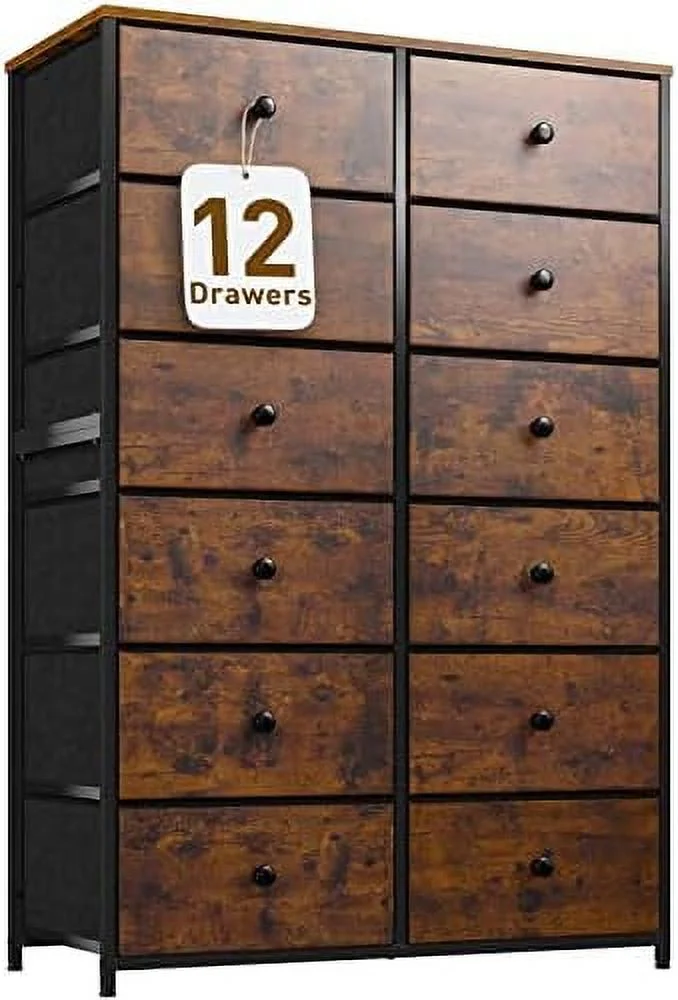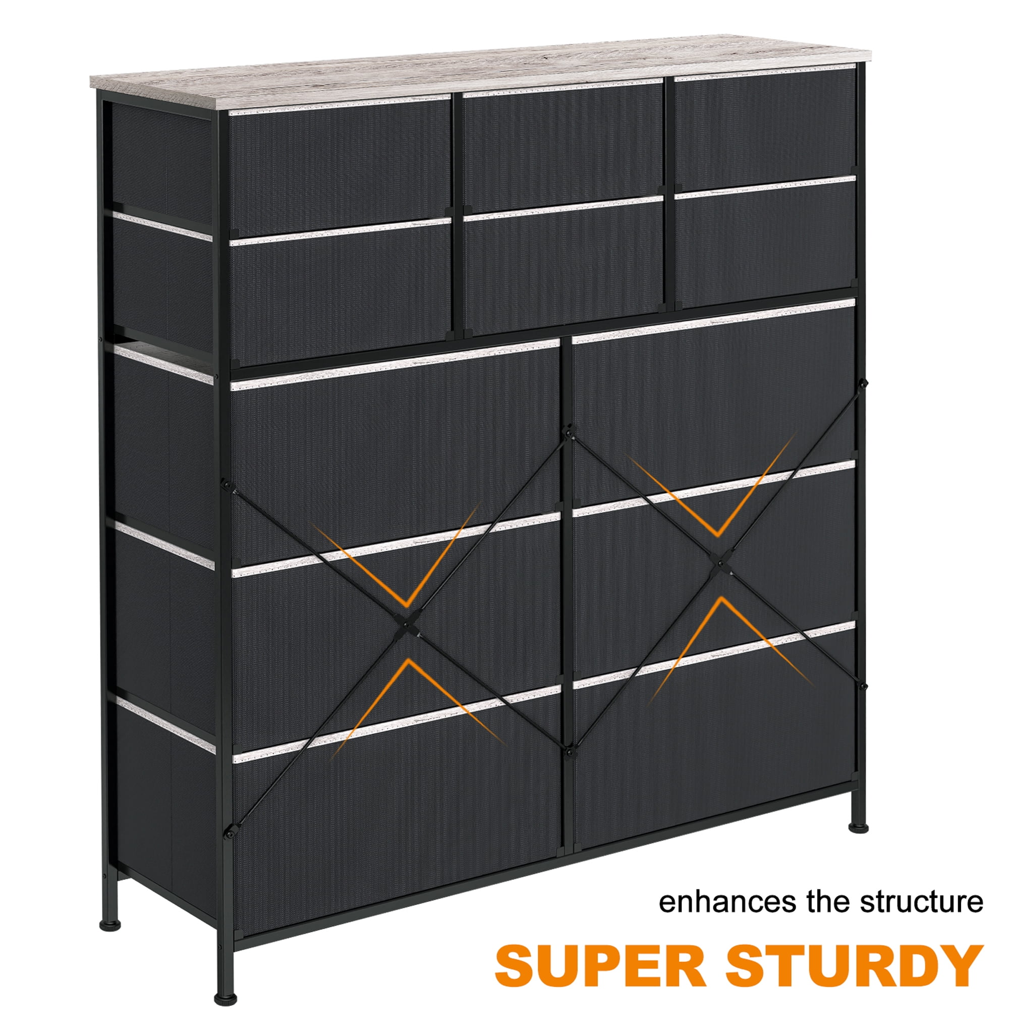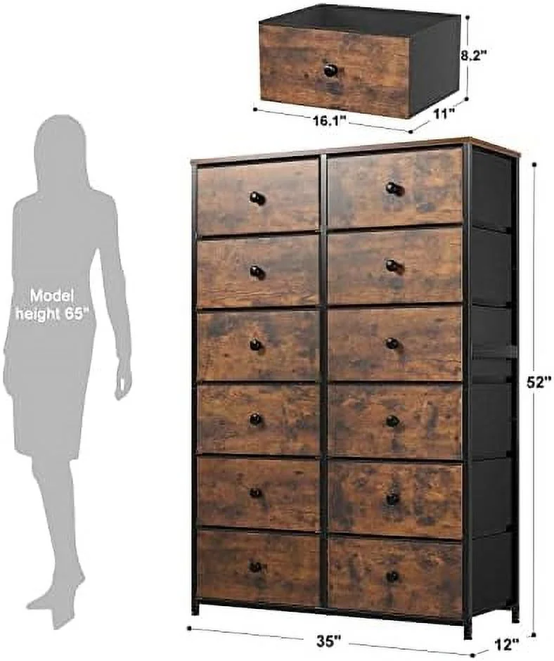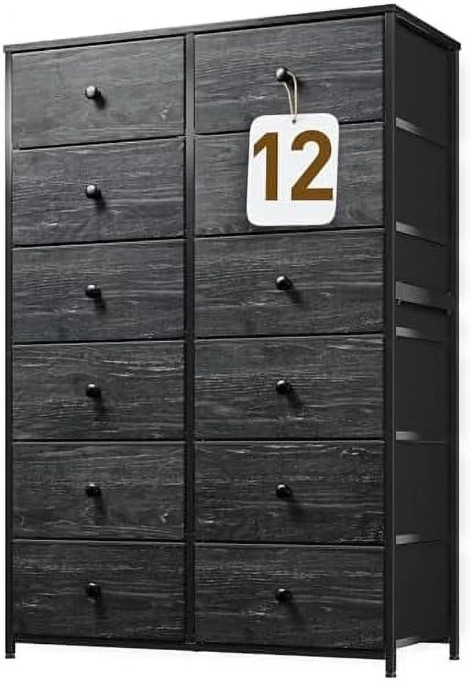 Towallmark 12 Drawers Fabric Dresser Storage Drawers, Tall Dresser with Sturdy Frame&Wooden Top, Organizer Unit, Black