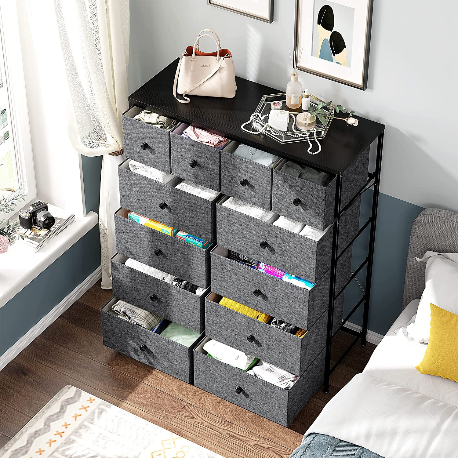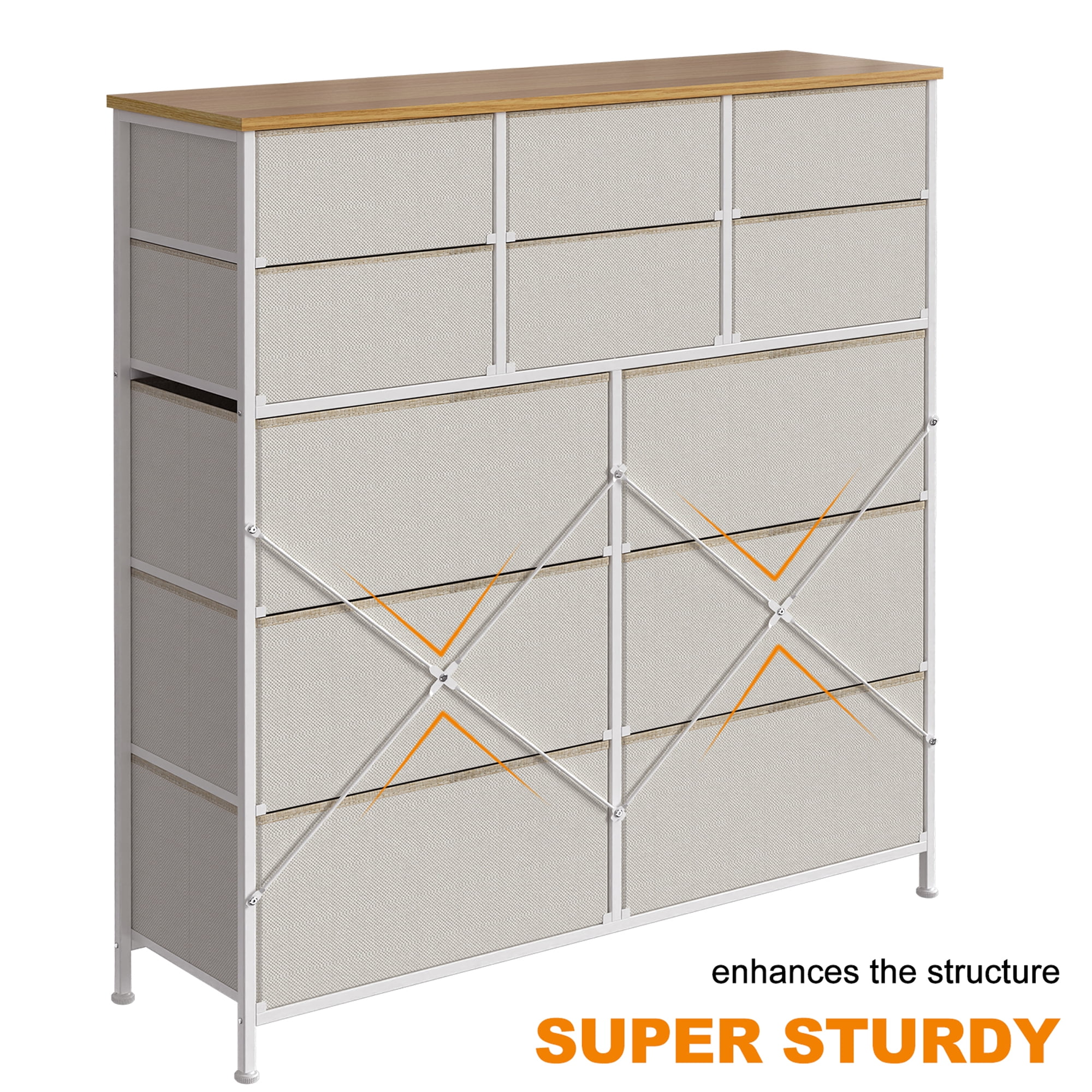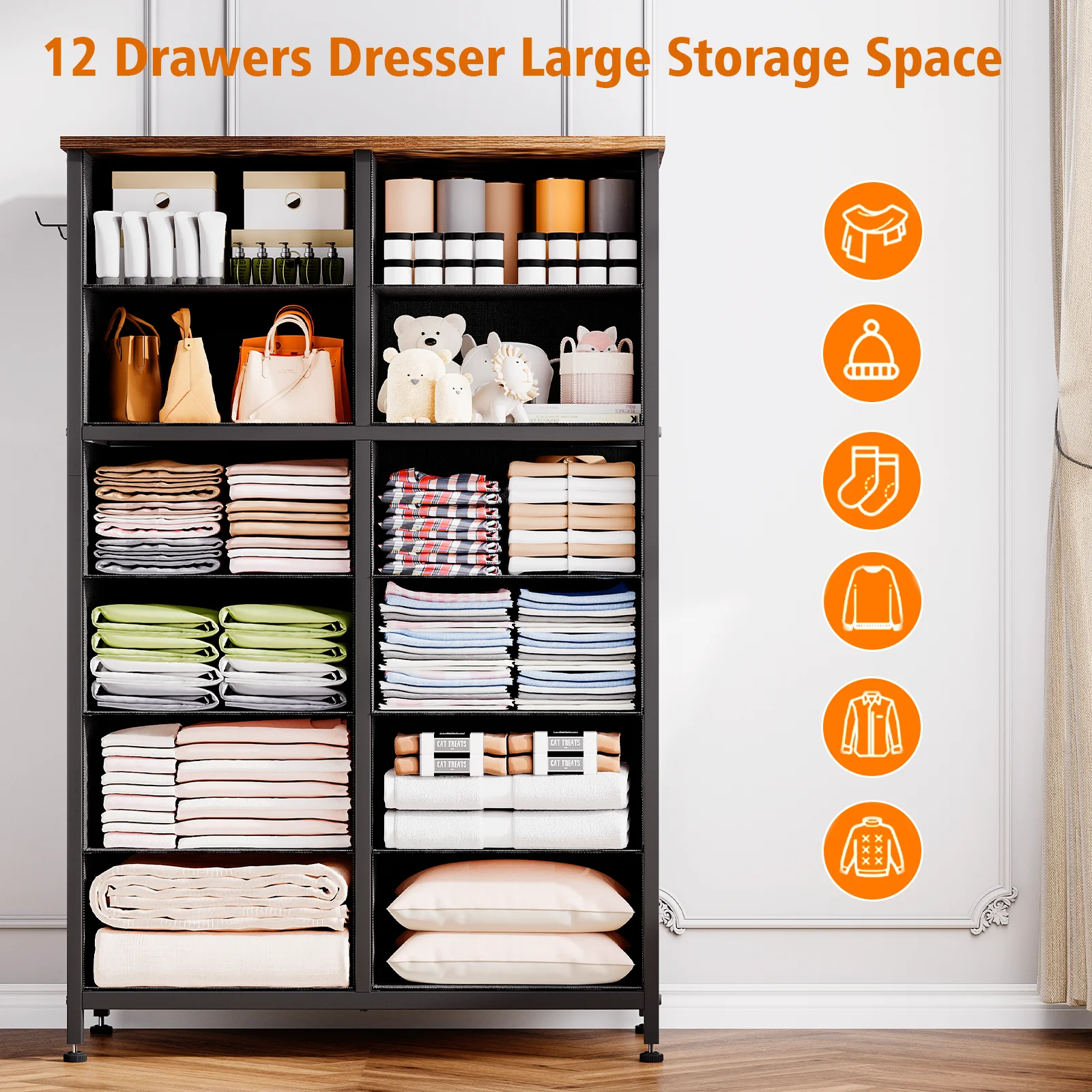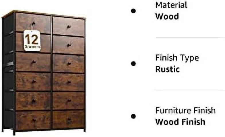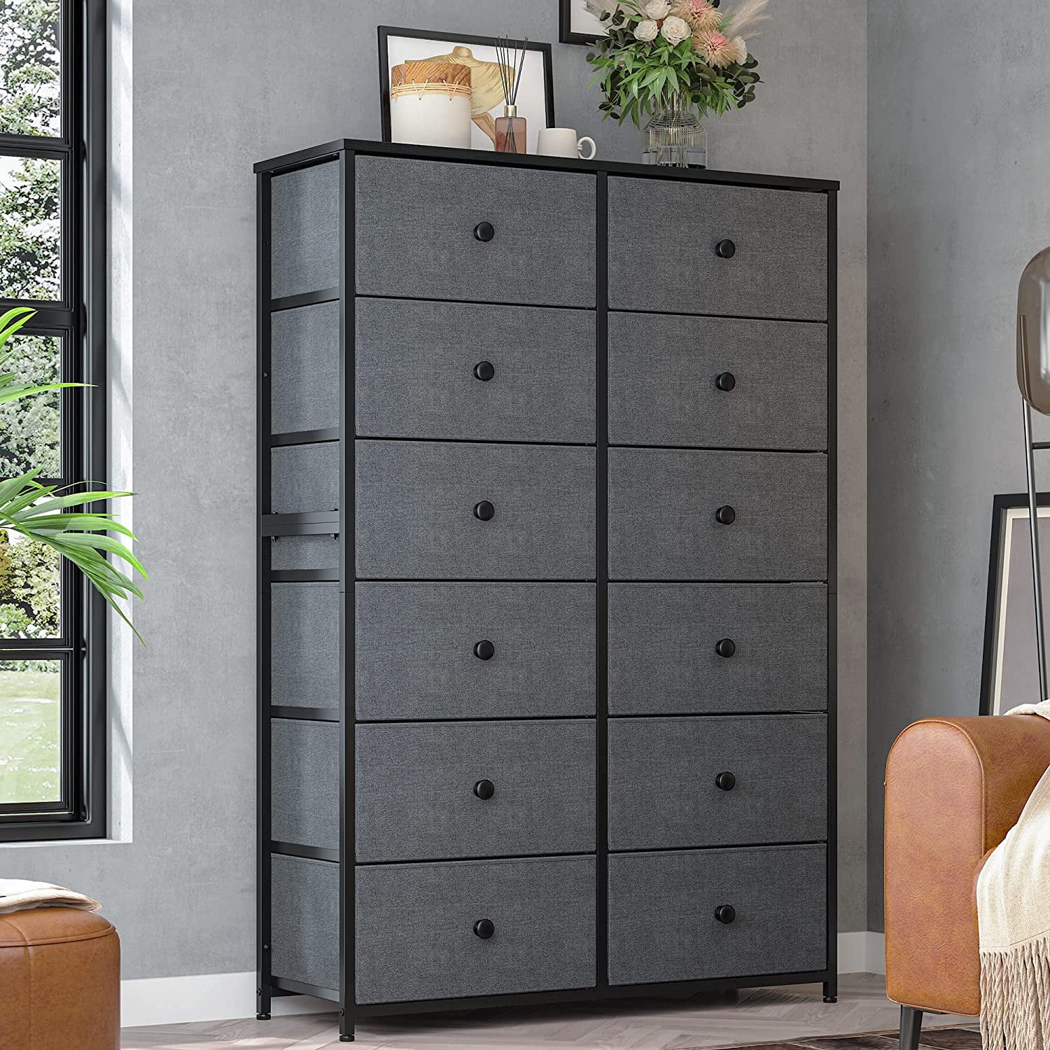 Towallmark 12 Drawers Fabric Dresser Storage Drawers, Tall Dresser with Sturdy Frame&Wooden Top, Organizer Unit, Black