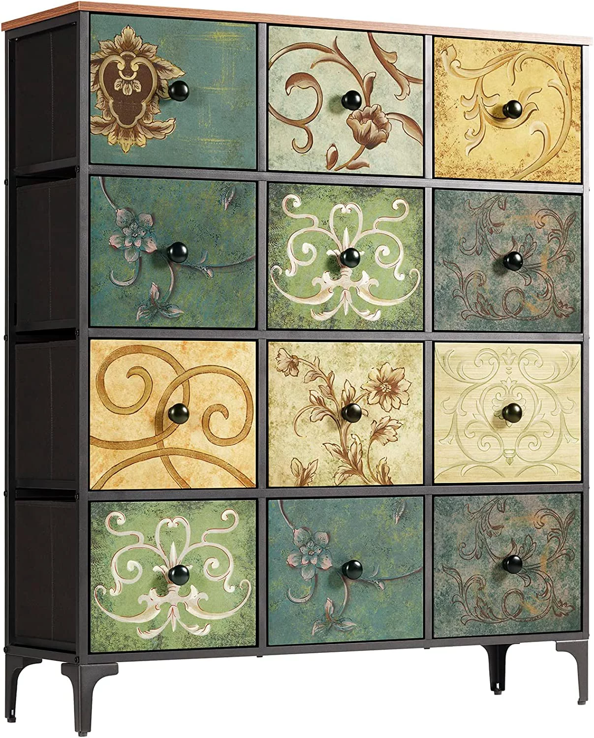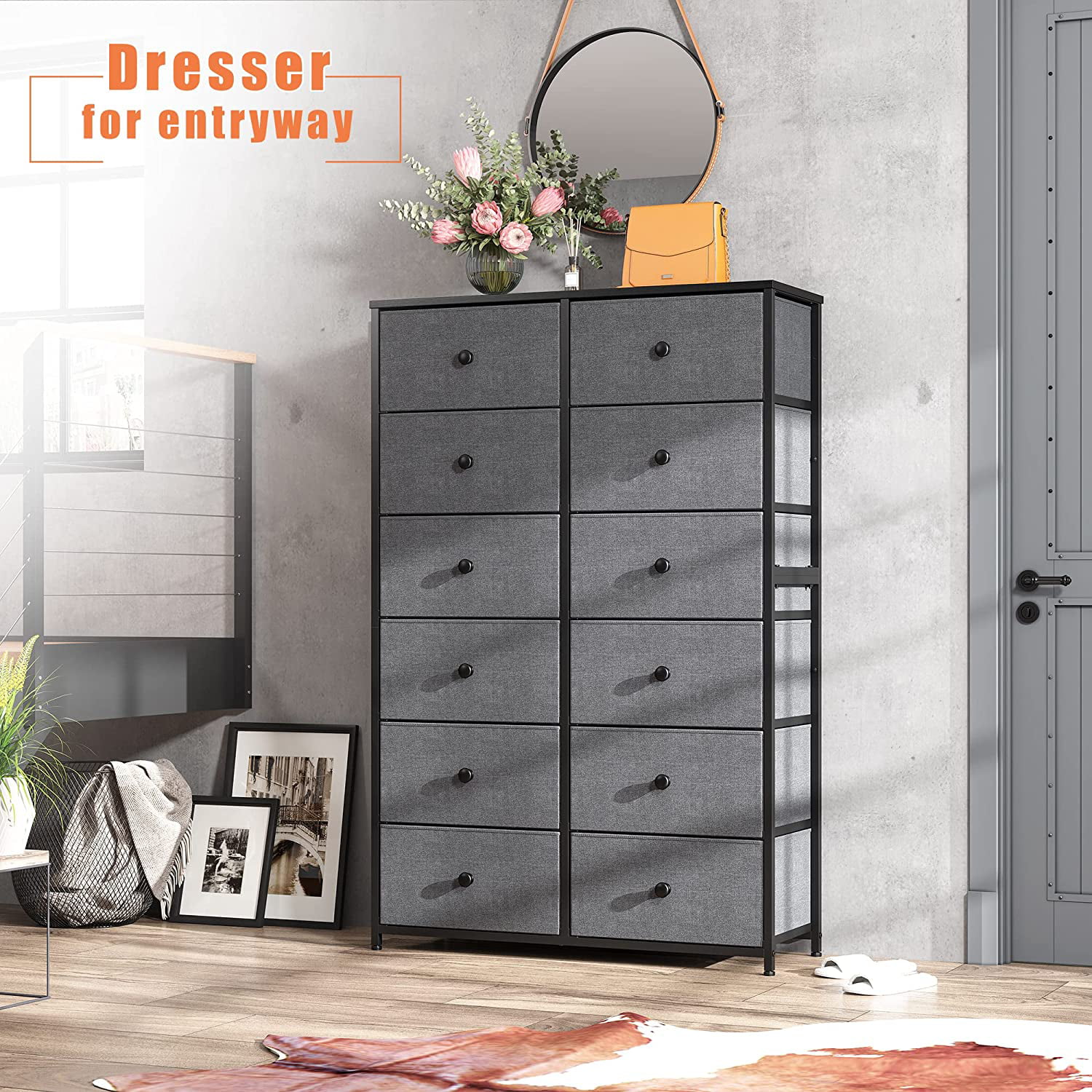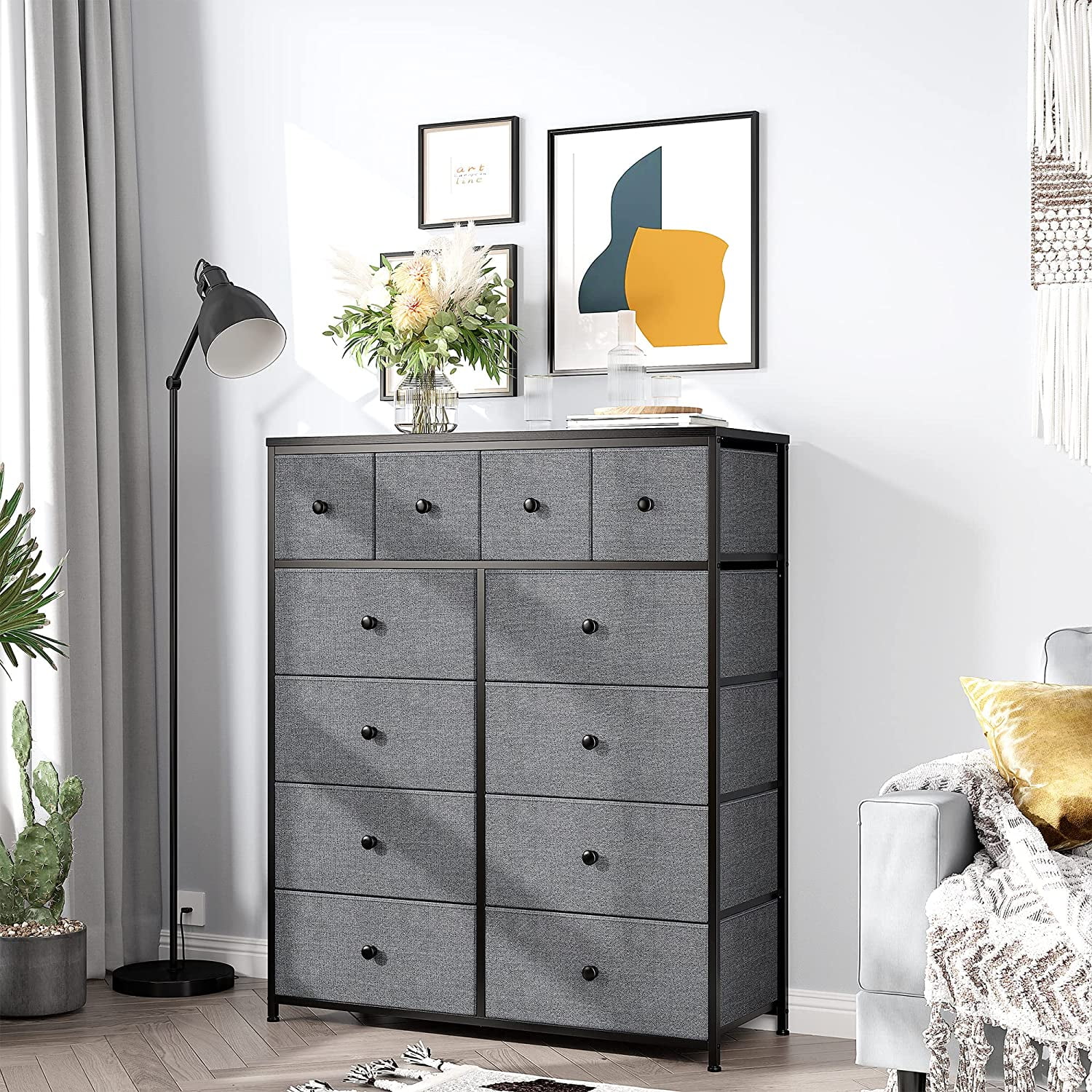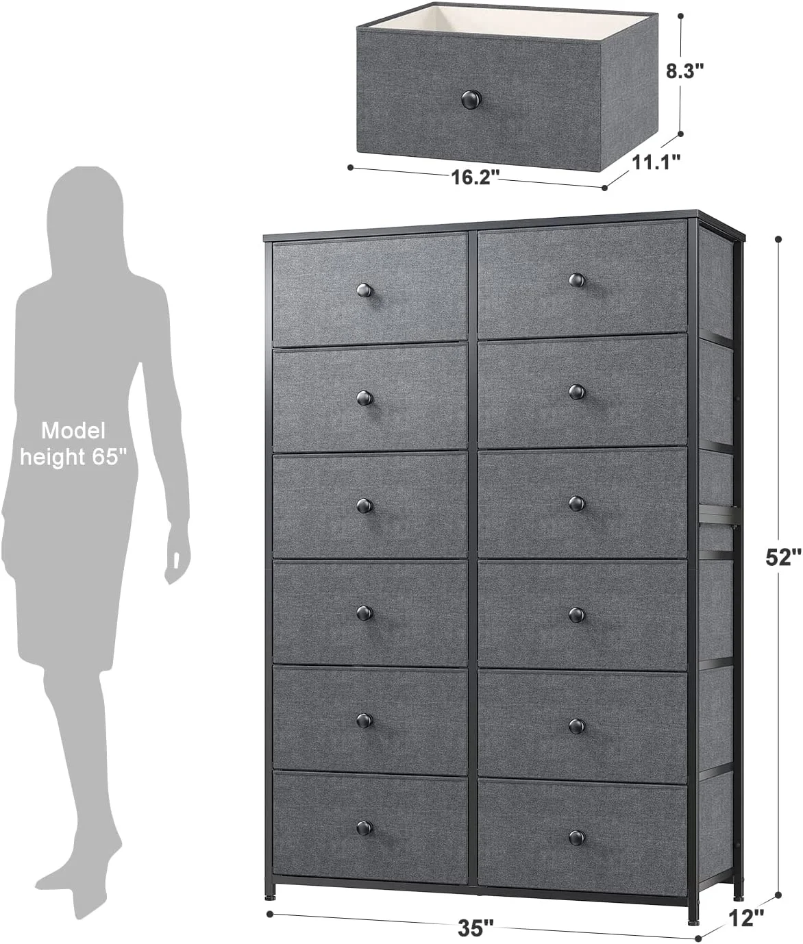 Towallmark 12 Drawers Fabric Dresser Storage Drawers, Tall Dresser with Sturdy Frame&Wooden Top, Organizer Unit, Black