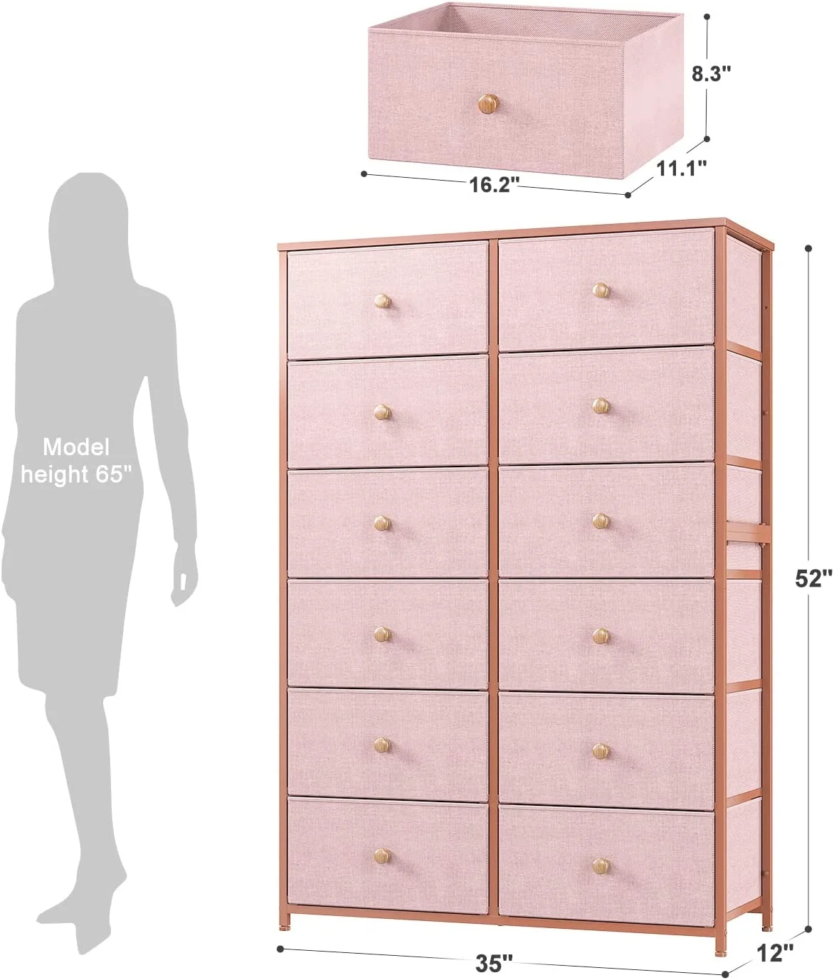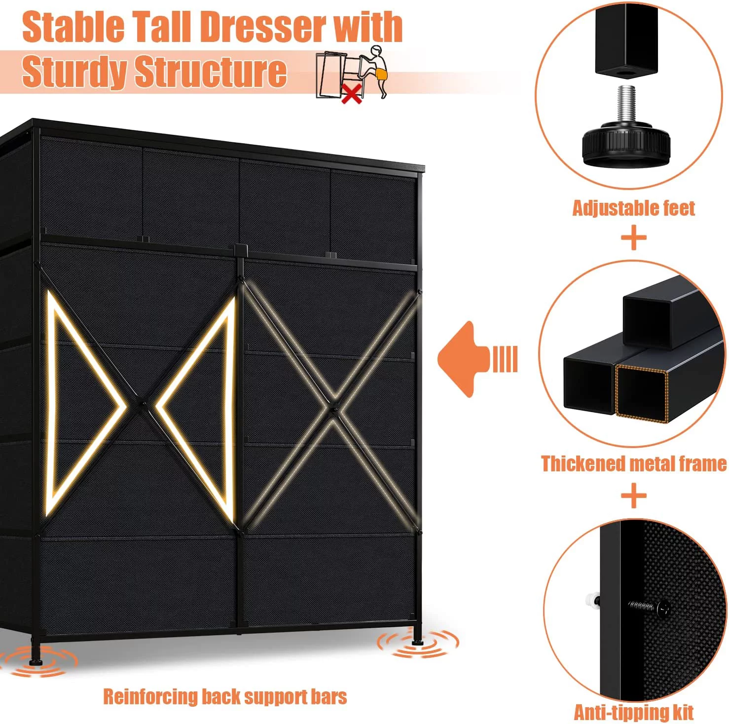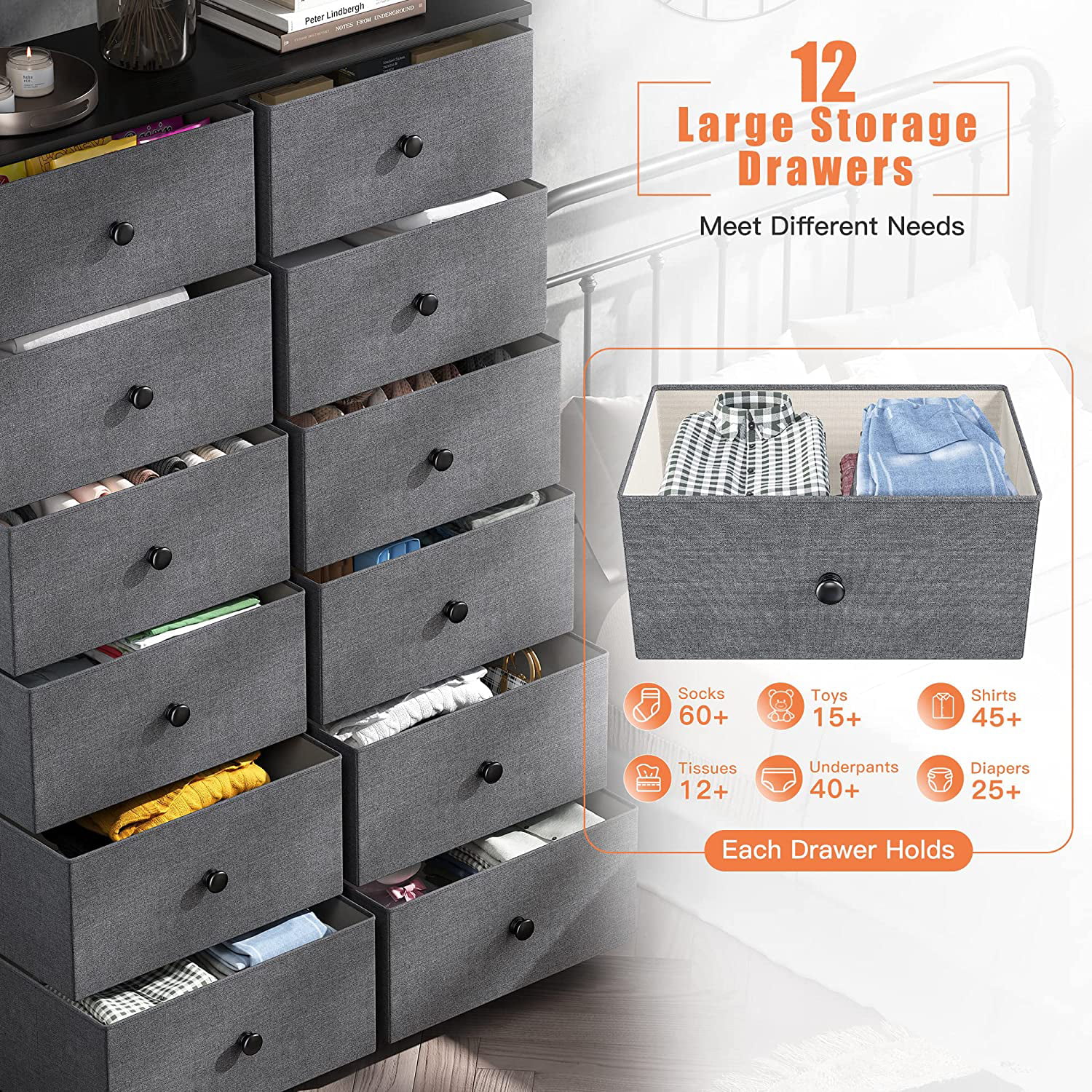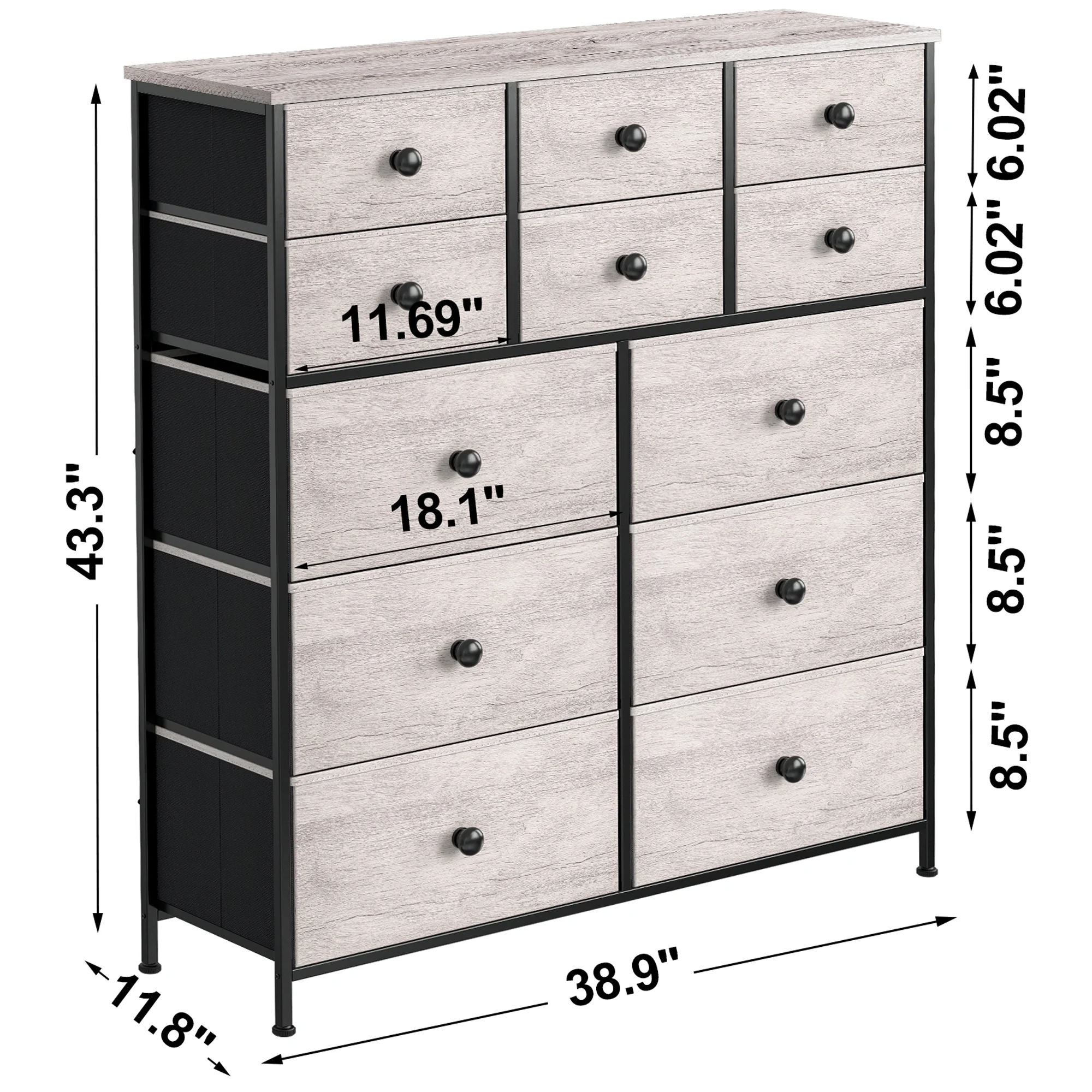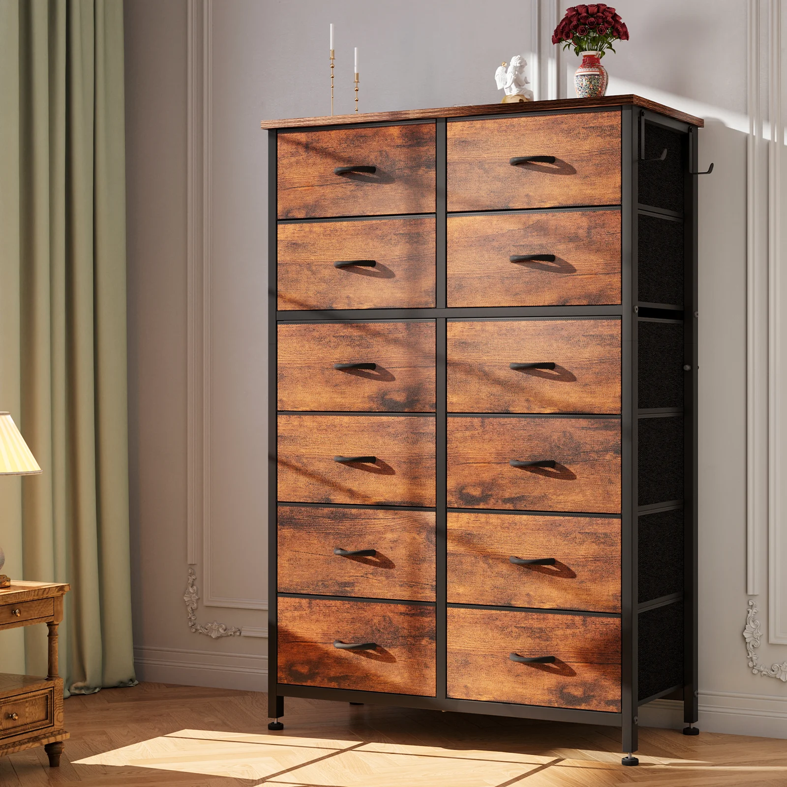 Towallmark 12 Drawers Fabric Dresser Storage Drawers, Tall Dresser with Sturdy Frame&Wooden Top, Organizer Unit, Black